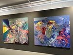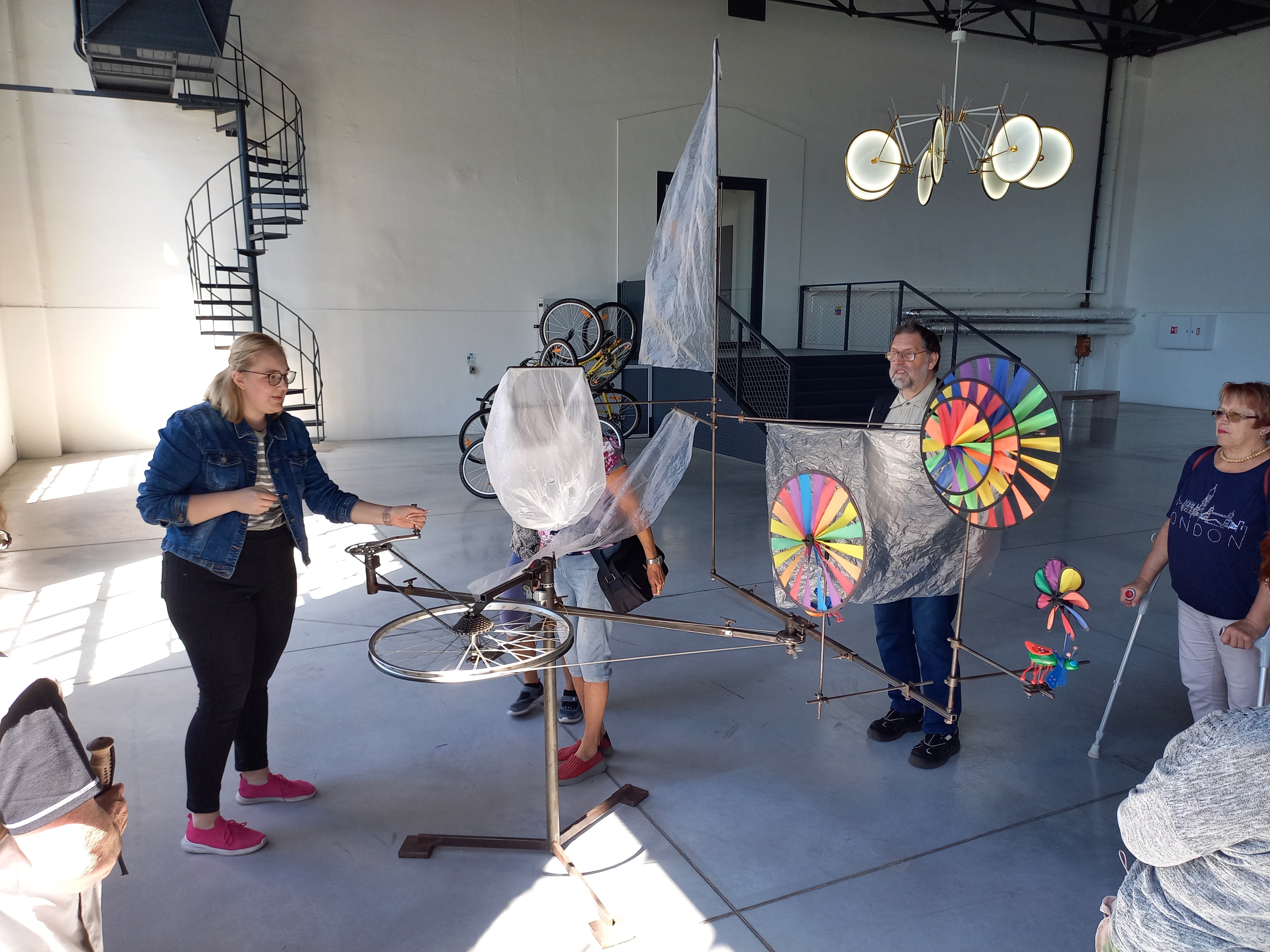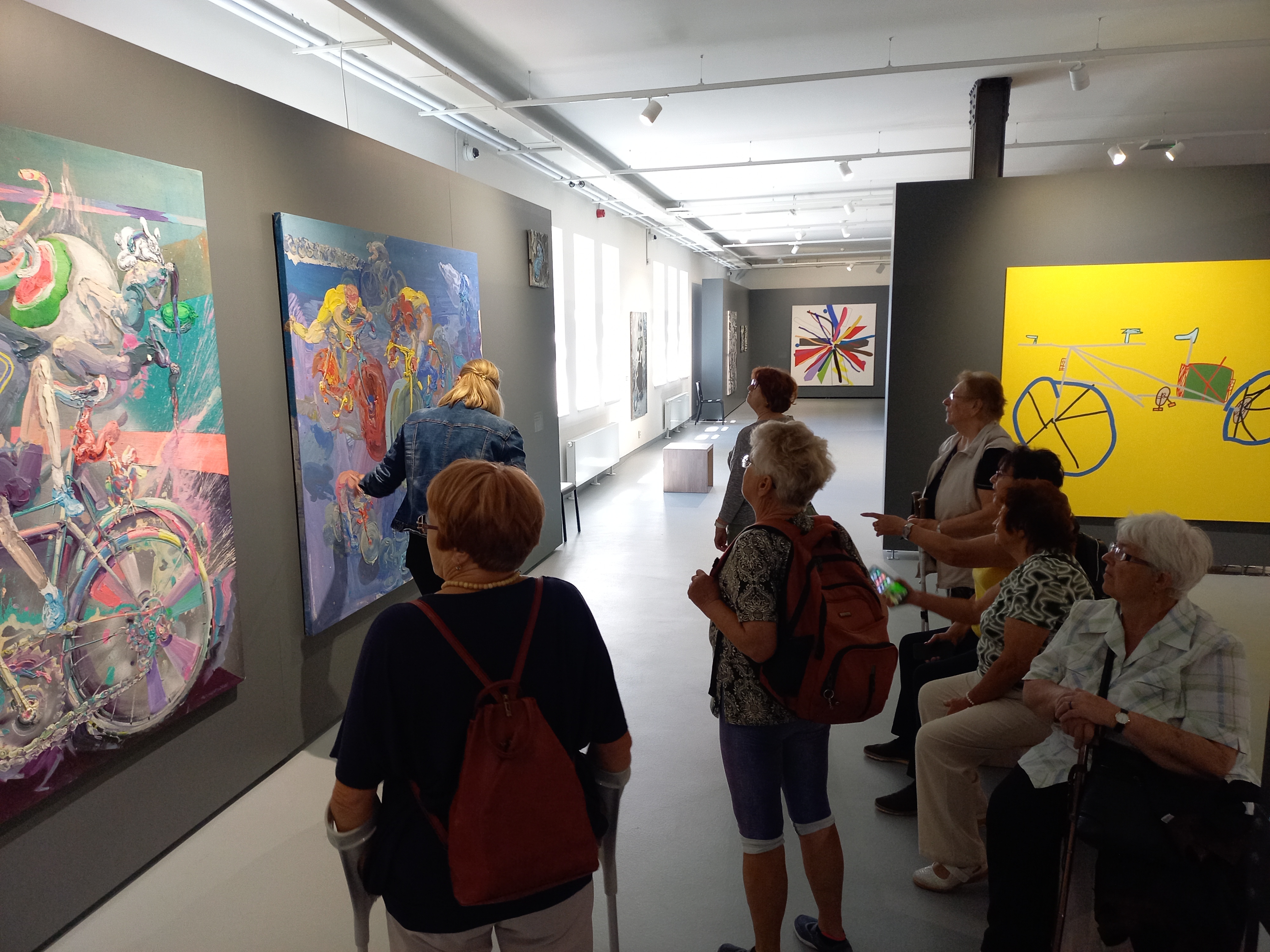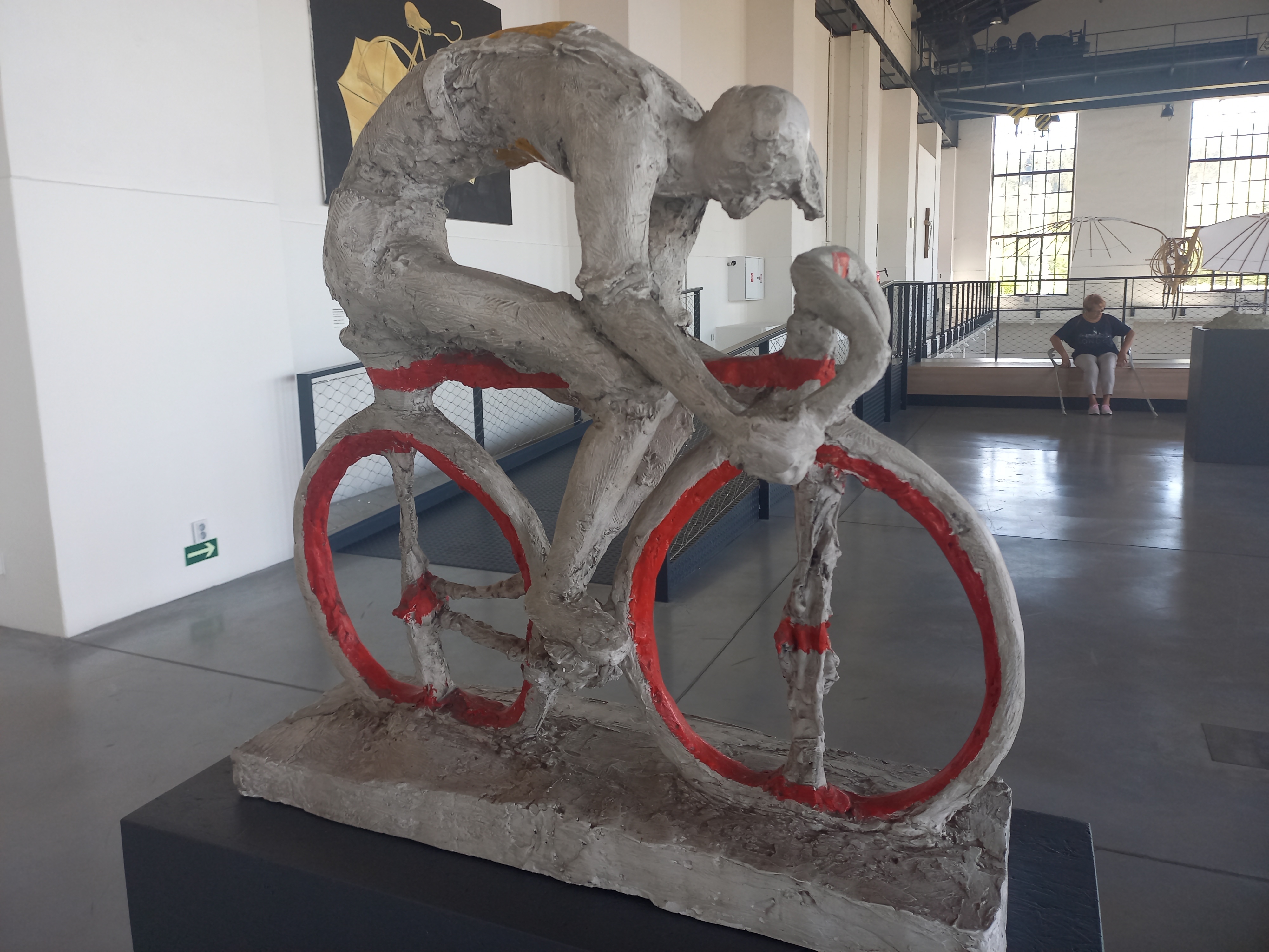 V turbínové hale jsou vystavena monumentální díla sochařů a sochařek. Další část výstavy jsou obrazy. Díky velikosti většiny z nich jsme si i my se zrakovým handicapem přišli na své. Nejvíce nás zde zaujal obraz Cyklista vezoucí meloun.