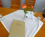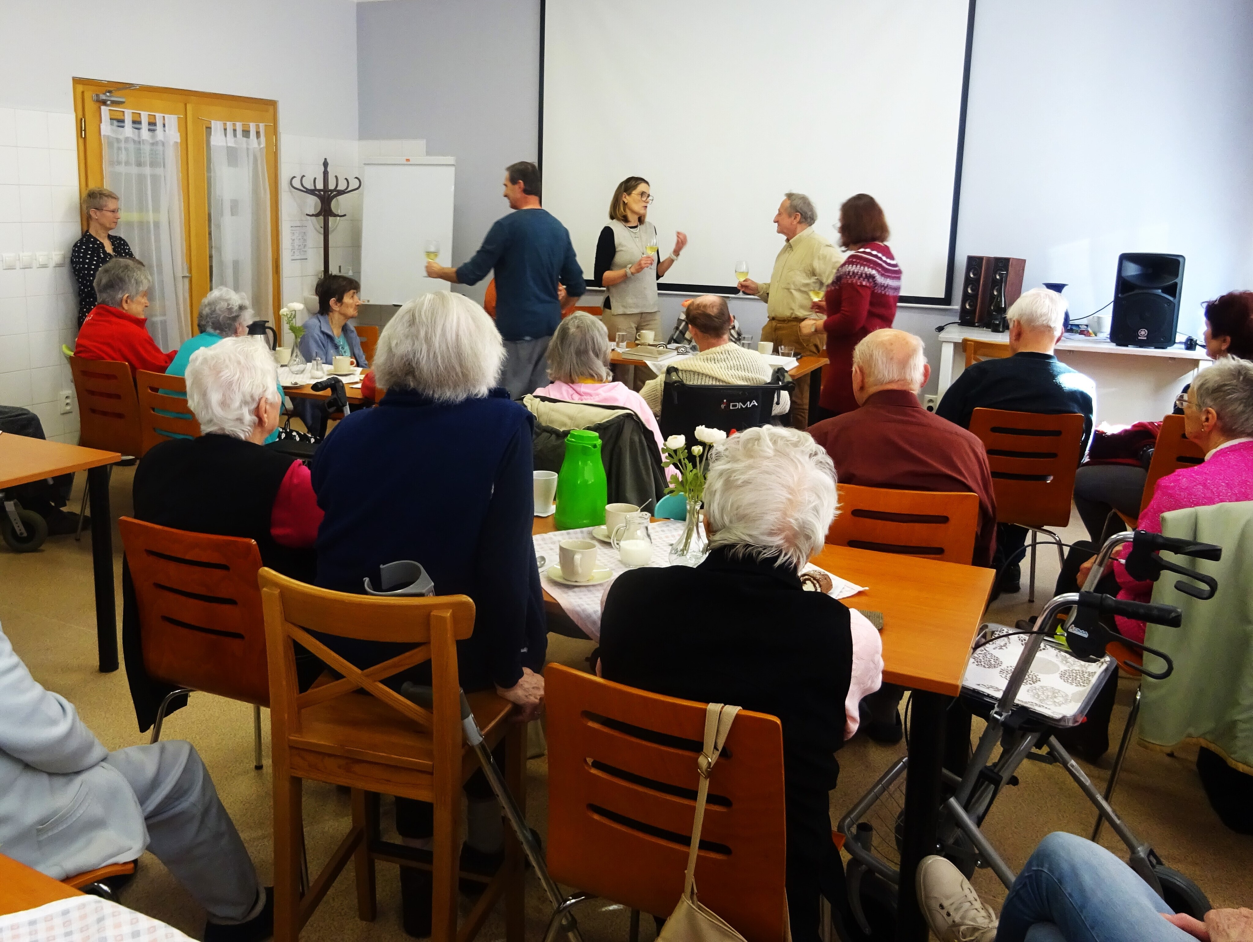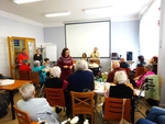 Druhá probíhala pro změnu v jídelně Centra sociálních služeb v Kyjově. Náš tým literárního setkání se účastnil slavnostním krtu učně vázané a ručně psané knihy s ilustracemi samotného autora, pana Vladimíra Bystřického. Obsahem jeho knihy jsou pohádky pro děti a dospělé a děj je zasezen do jeho rodných Bohuslavic a okolí. Byl to zároveň i druhý vystavovatel samorostů. Nám se naskytla příležitost jednak poznat autora osobně a také si detailně prohlédnout tuto zajímavou knihu.