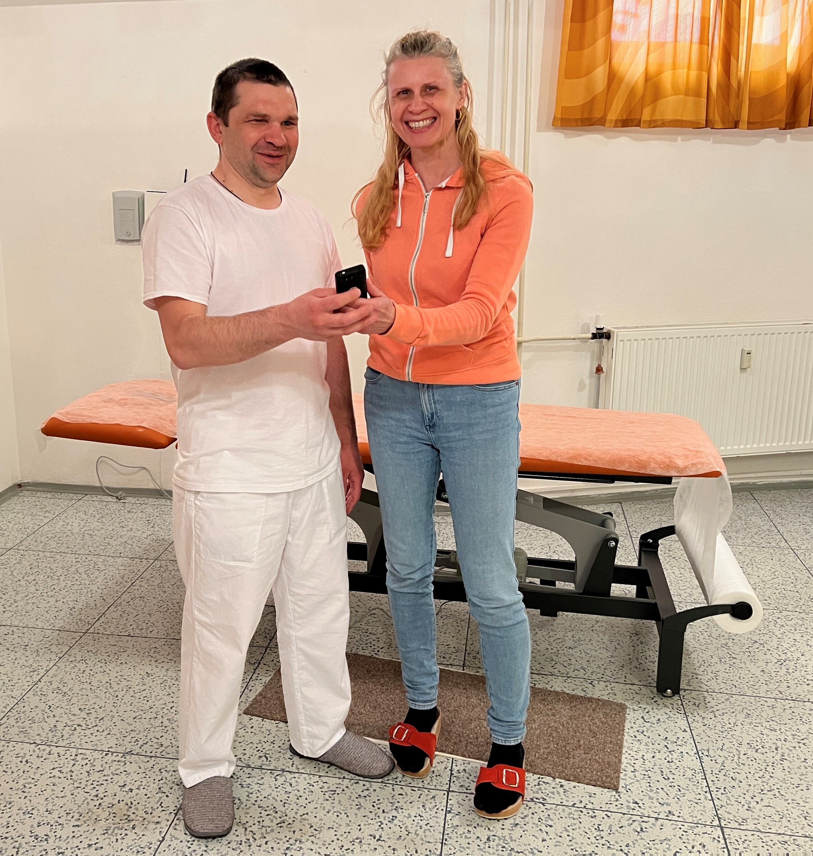 Mykola Henov je náš nevidomý masér z Ukrajiny, který v naší organizaci pracuje od poloviny září roku 2022. Pro to, aby u nás ve Zlíně mohl samostatně cestovat do zaměstnání městskou hromadnou dopravou a lehčeji zvládal jazykovou bariéru všude kolem sebe, potřeboval Mykola vybavit vyšší řadou mobilního telefonu, která mu v tom pomůže. Jelikož, nemá v současné době nárok na žádné sociální dávky, které se vážou k jeho těžkému zrakovému postižení, kromě finanční pomoci pro uprchlíky, obrátili jsme se přímo na výrobce telefonů BlindShell s prosbou o poskytnutí této skvělé pomůcky jako sponzorského daru. Slovo dalo slovo, a jsme moc rádi, že jsme nový telefon mohli našemu kolegovi u nás na odbočce předat.