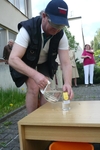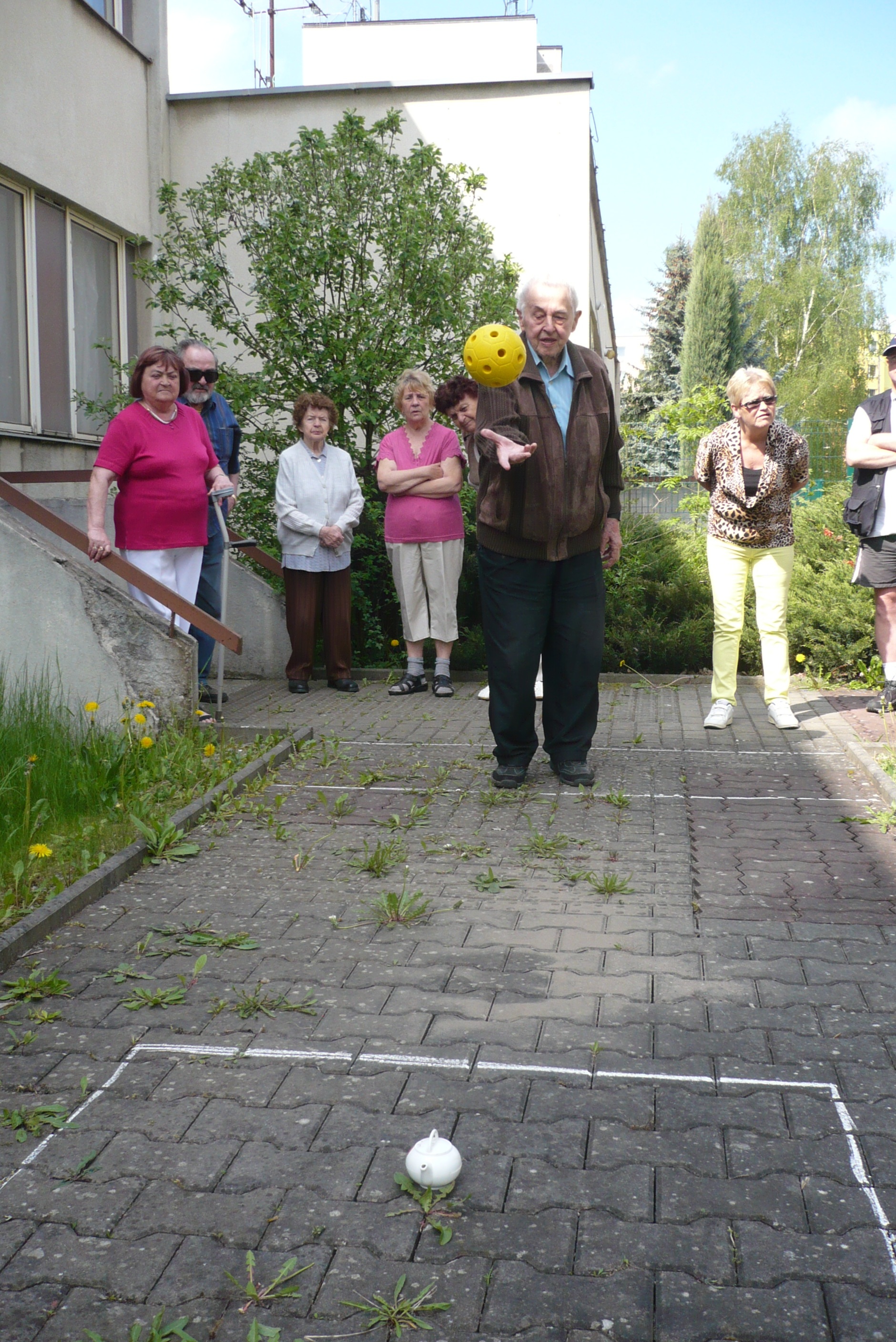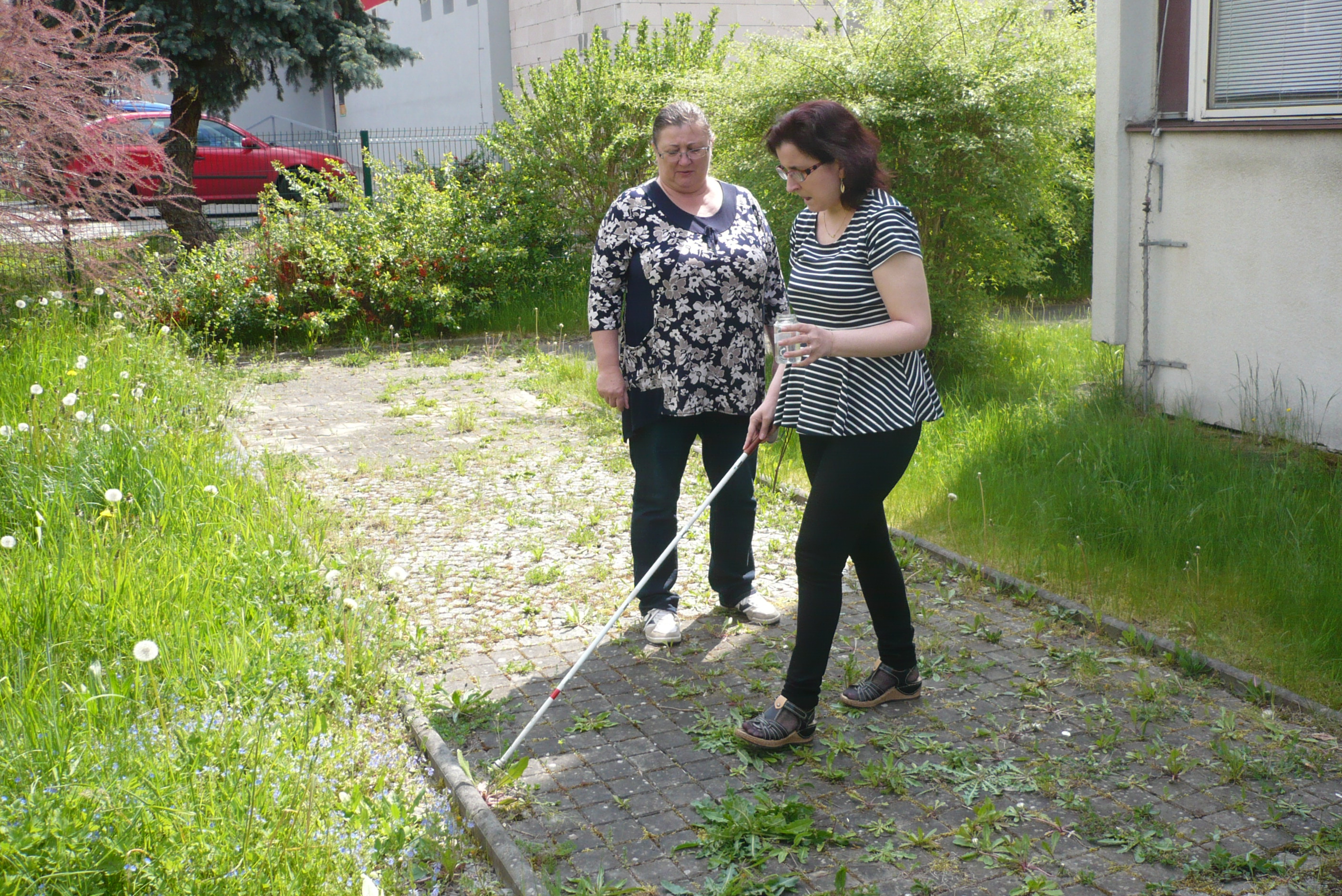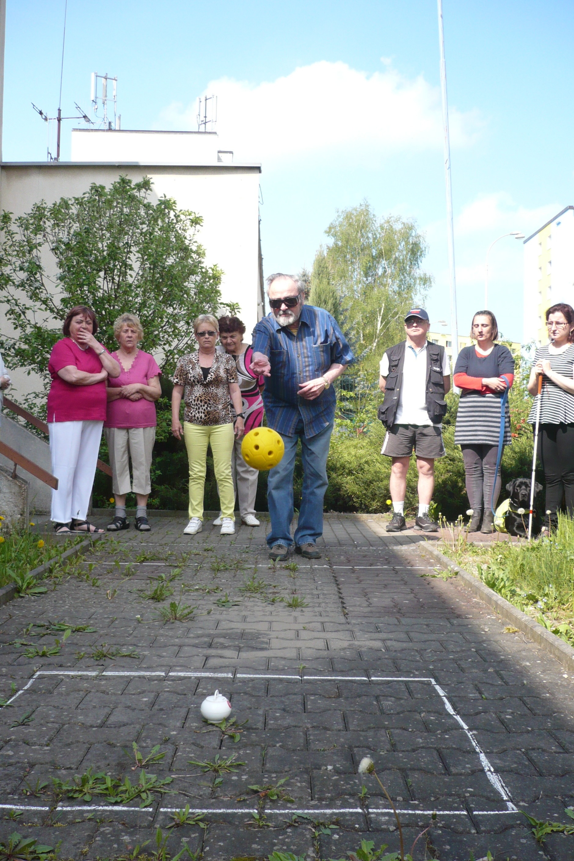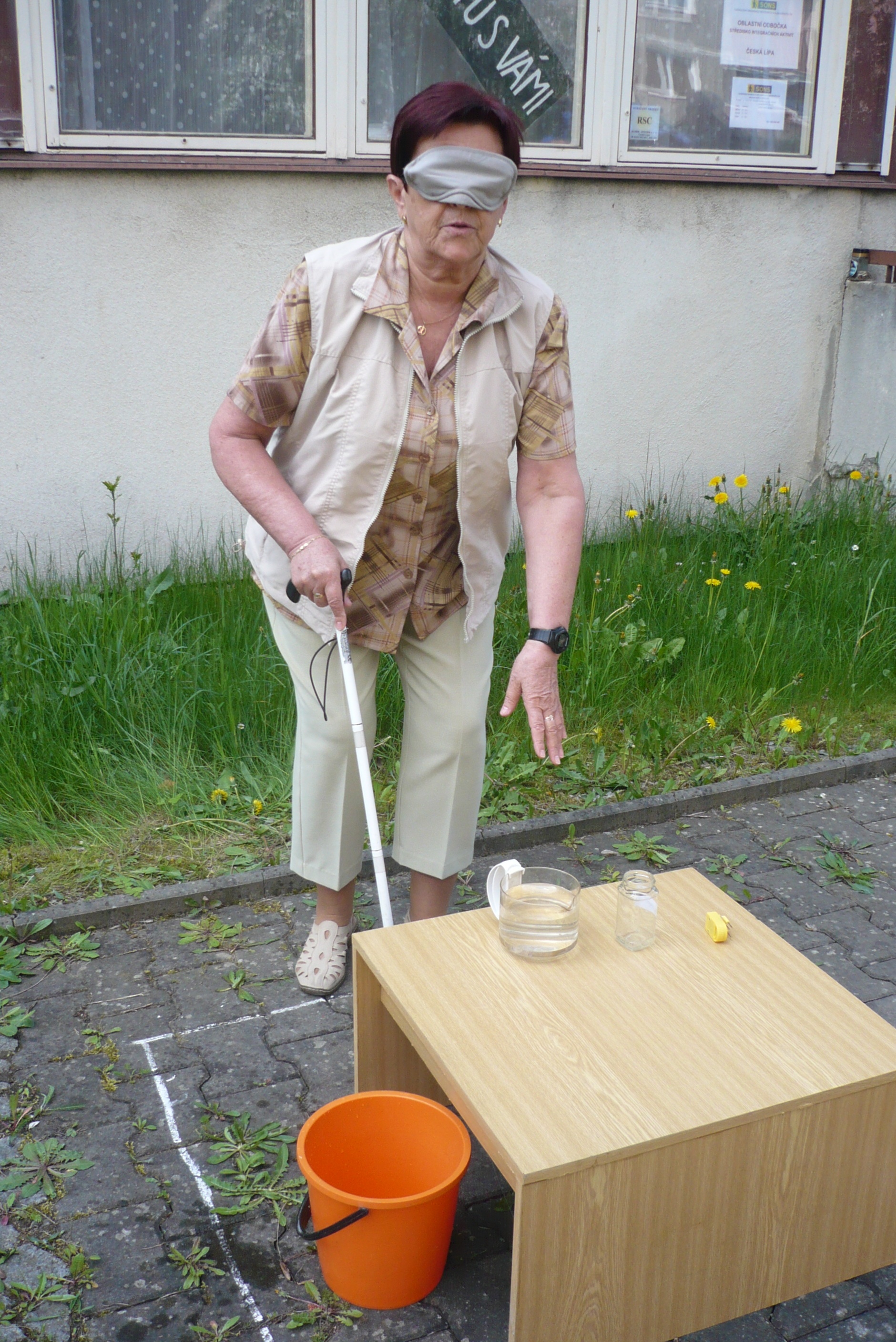 11. května jsme si připravili celodenní sportovní den. Ráno jsme si zacvičili na židli, poté následovaly aktivity: hod ozvučeným míčem na ozvučený cíl a aktivita s technickým názvem "Lída přijela na návštěvu". Měli jsme za úkol najít na nízkém stolečku konvici s vodou, atypickou skleničku a hladinku. Po nalezení jsme si do skleničky nalili vodu a vyrazili za "návštěvou". Chůze s bílou holí byla pro některé z nás velmi obtížná, ale "kafíčko" donesl každý do cíle. Cílem bylonaléztzpět cestu ke stolku podél vodící linie, najít kbelíček a kafíčko (zřejmě osolené) vylít. Činností bylo v plánu více, ale tyto nás zaměstnaly na delší dobu a vyčerpaly.