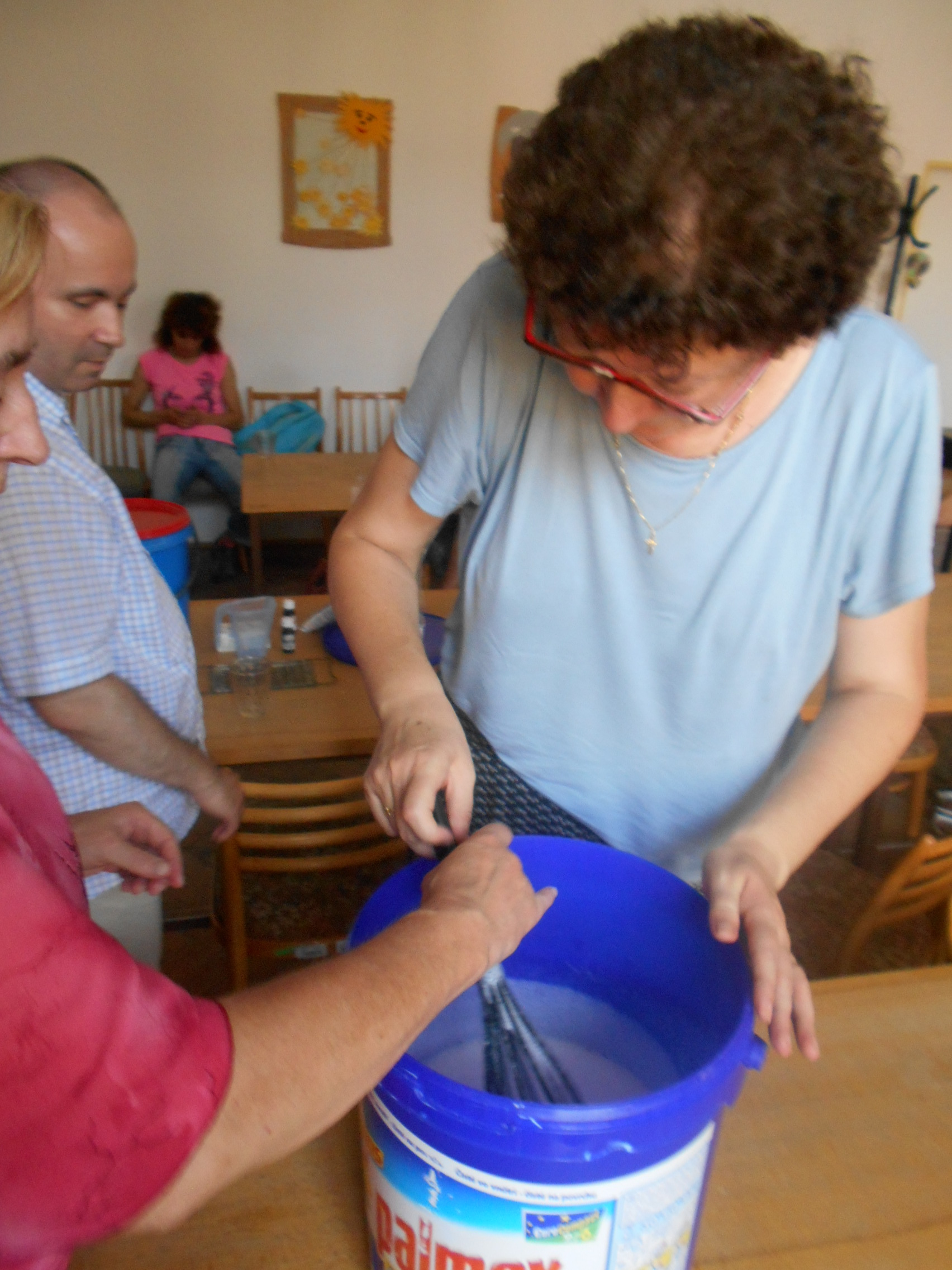 Ve druhé části klubového setkání jsme se věnovali praktické ukázce výroby levných a ekologických čistících prostředků pro domácnost. Naši členové, kteří se zúčastnili lednového rekondičního pobytu v Ekocentru Veronica v Hostětíně, nám předvedli výrobu základního pracího prostředku a následně i dalších čistících prostředků do kuchyně. Přítomní členové si pak mohli hotové prostředky odnést domů v přinesených nádobách i s recepty k jejich výrobě k vlastnímu vyzkoušení.