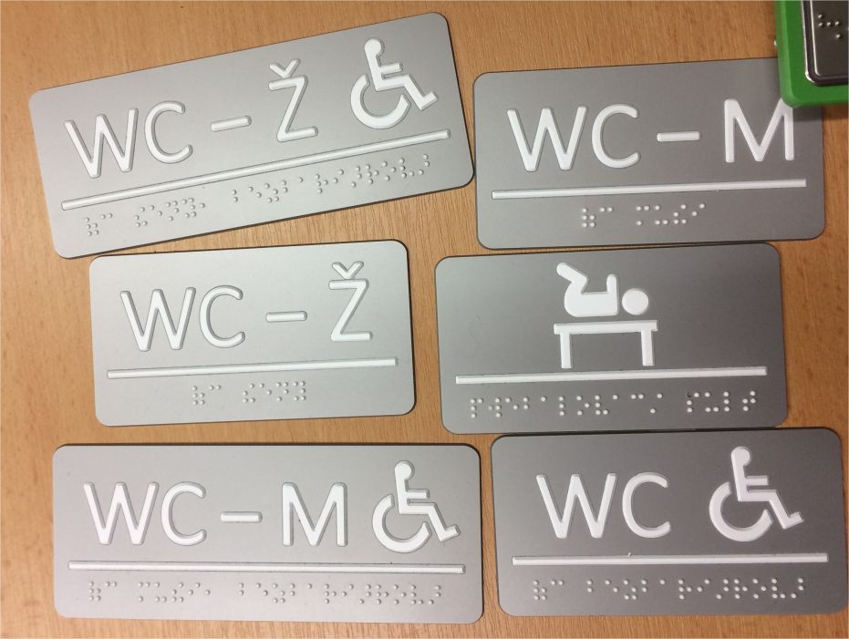 - písmo reliéfní i braillské, stejného profilu, technické parametry viz výše uvedený popis