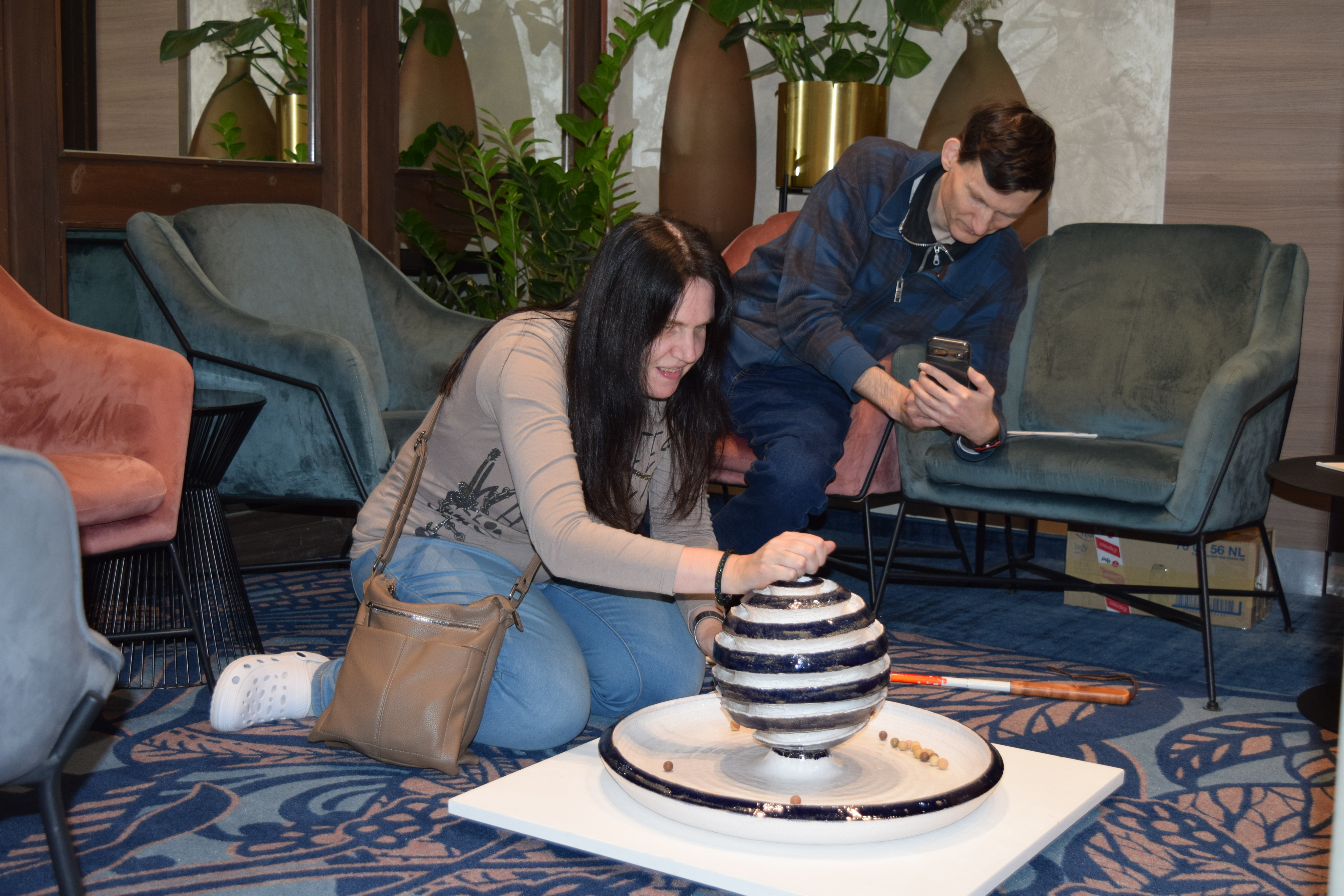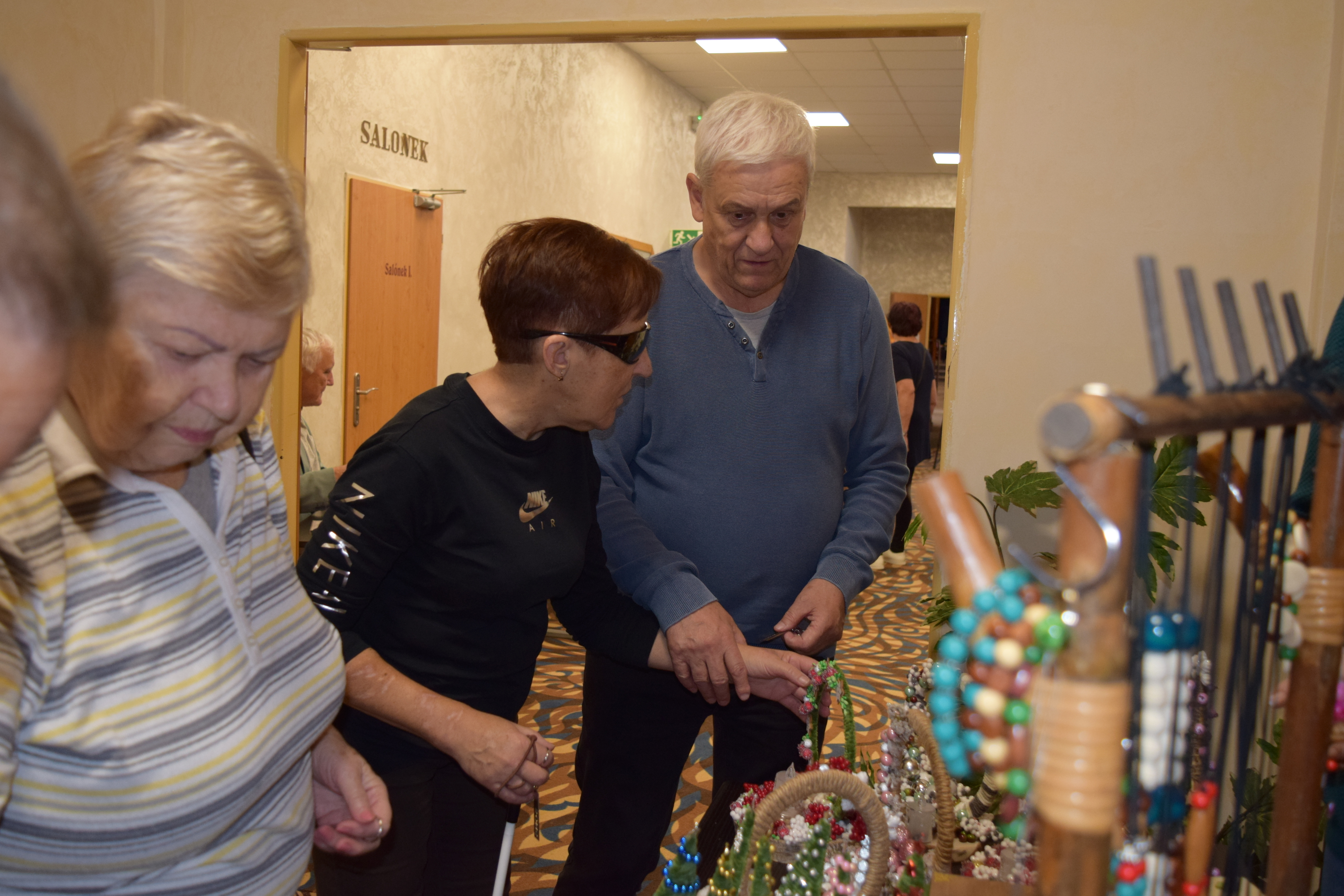 V osm hodin po večeři se všichni scházíme ve Společenském sále a před námi se objevuje moderátor Pavel Vít. Má v ruce klobouk a ten je plný jakýchsi čísílek. Asistenti vysvětlují nevidomým, asi už to za chviličku začne. Zde je nutné podotknout, že naše Emilka Kumherová popsala 400 lístků bodovým písmem, a proto i nevidomí účastníci si mohli sami ověřit, zda vyhráli či nikoliv. A kde se vlastně vzali ceny do tomboly? Tak za to musíme poděkovat našim členům odbočky, kteří pilně celý půl rok nosili a sháněli jednu cenu za druhou, aby účastníci TyfloArtu nepřišli zkrátka. A většina z nich opravdu zkrátka nepřišla. Hlavní cenu pak věnovala firma Golden Gate.