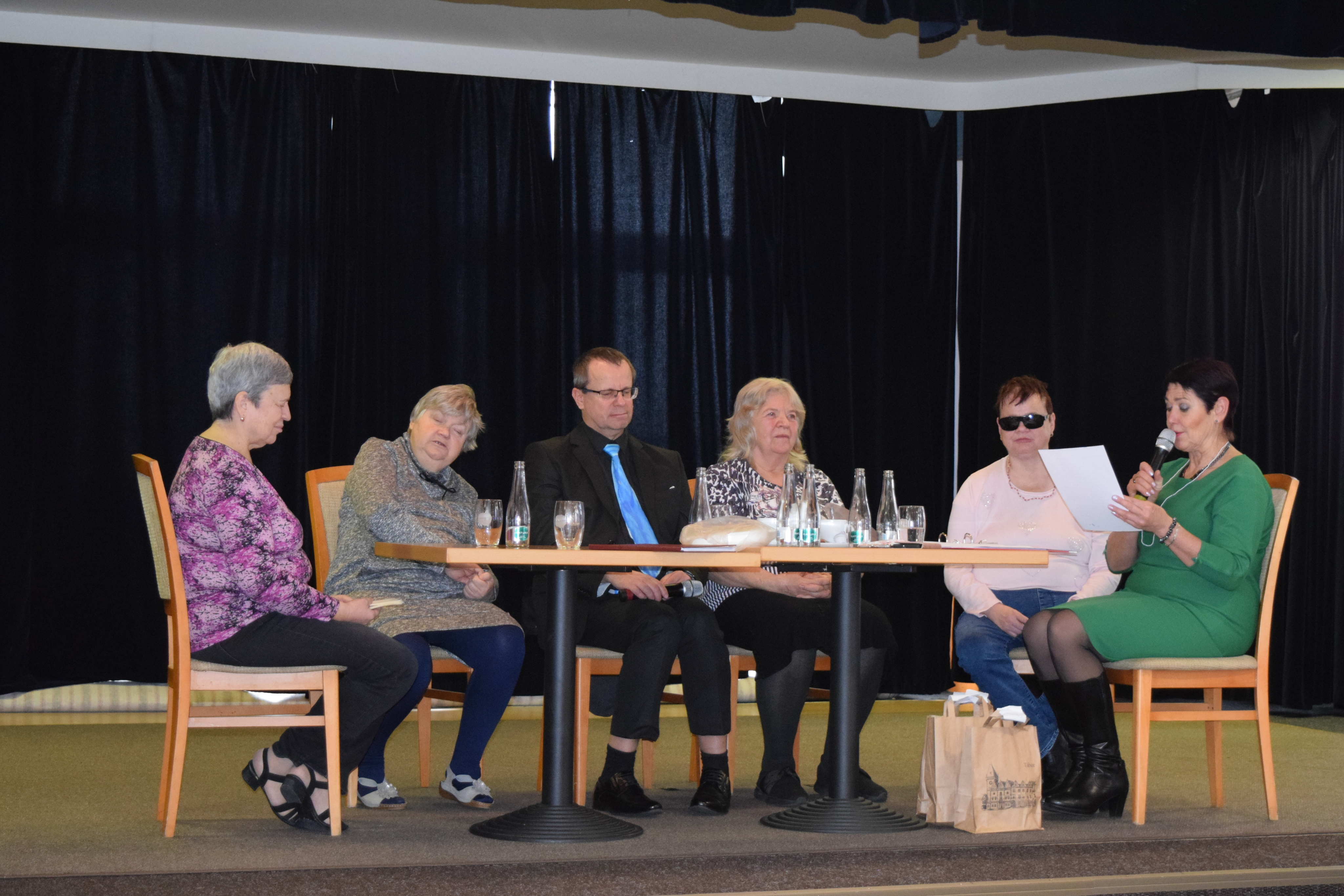 A s milovníky literatury všeho druhu se setkáváme ve společenském sále. Zde se kolem půl desáté spustí odpočítávání startu kosmické rakety, které je doplněno o zvuky z vesmíru – jedná se o audionahrávku od Jana Příborského. To už se na podiu podává čerstvá káva a k mikrofonům přistupují moderátoři Věrka Hanzalová a Jiří Sálus. Ti si pak postupně zvou vzácné hosty – naši Laďku Svobodovou, Evu Budzákovou a Delicii Nerkovou, aby představili jejich díla a trochu je vyzpovídali. Recitace básní se ujala Věrka. Avšak čtení fejetonů a povídky si připravila Iva Mojžíšková. Nešlo však o nějaké čtení černo tiskové předlohy, ale Iva zvládla plynně číst předložený materiál v bodovém písmu, což ocenili nejen autoři čtených děl.