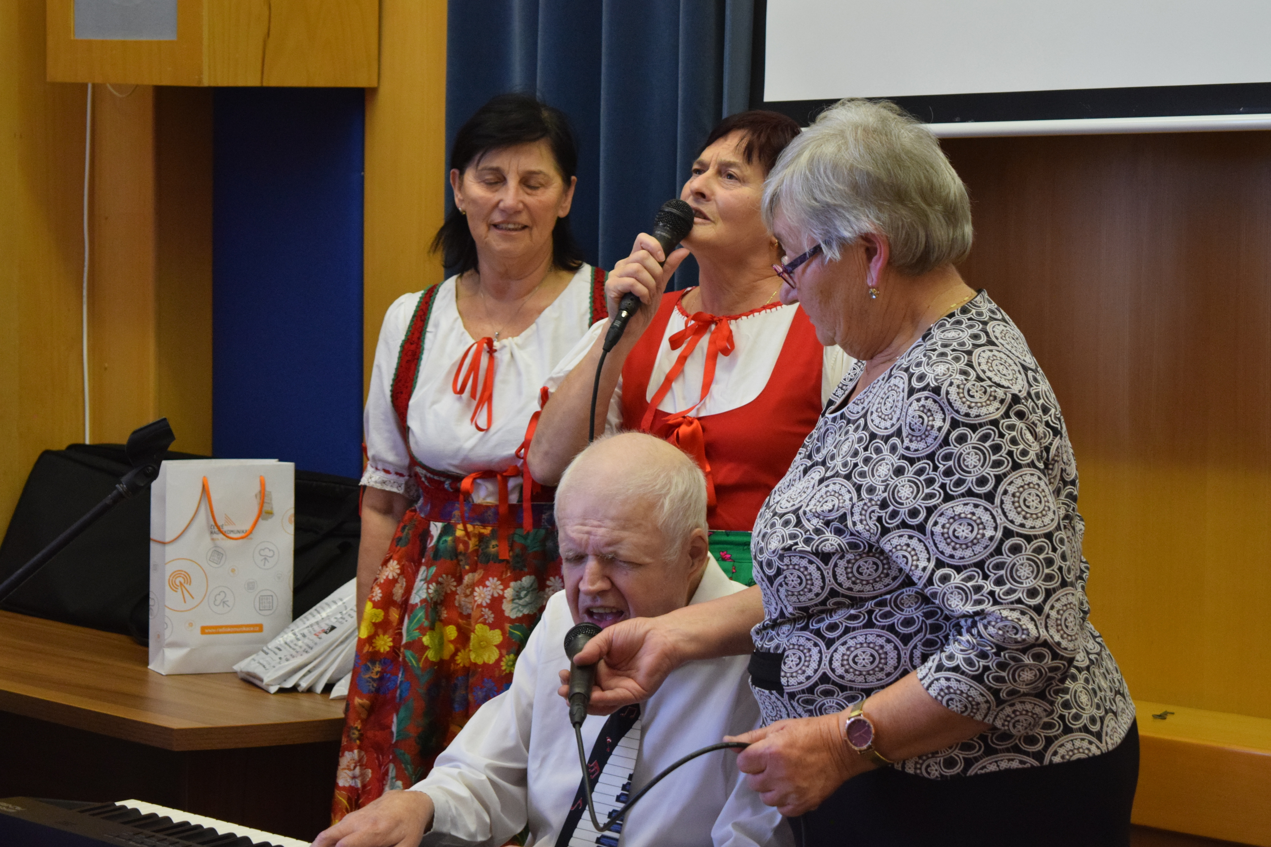 A zatímco na Divadelní scéně se na své předčítání humorných příběhů připravovala Zuzana Mrázová, ve Společenském sále se rozezněly první tóny interpretů ze střediska Dědina, kteří na festival přijeli s paní ředitelkou Naďou Modráčkovou. Svými písněmi „Kytky stále ještě voní“ nebo „Sbohem Angelino“, hezky navázali na Vokál klub.