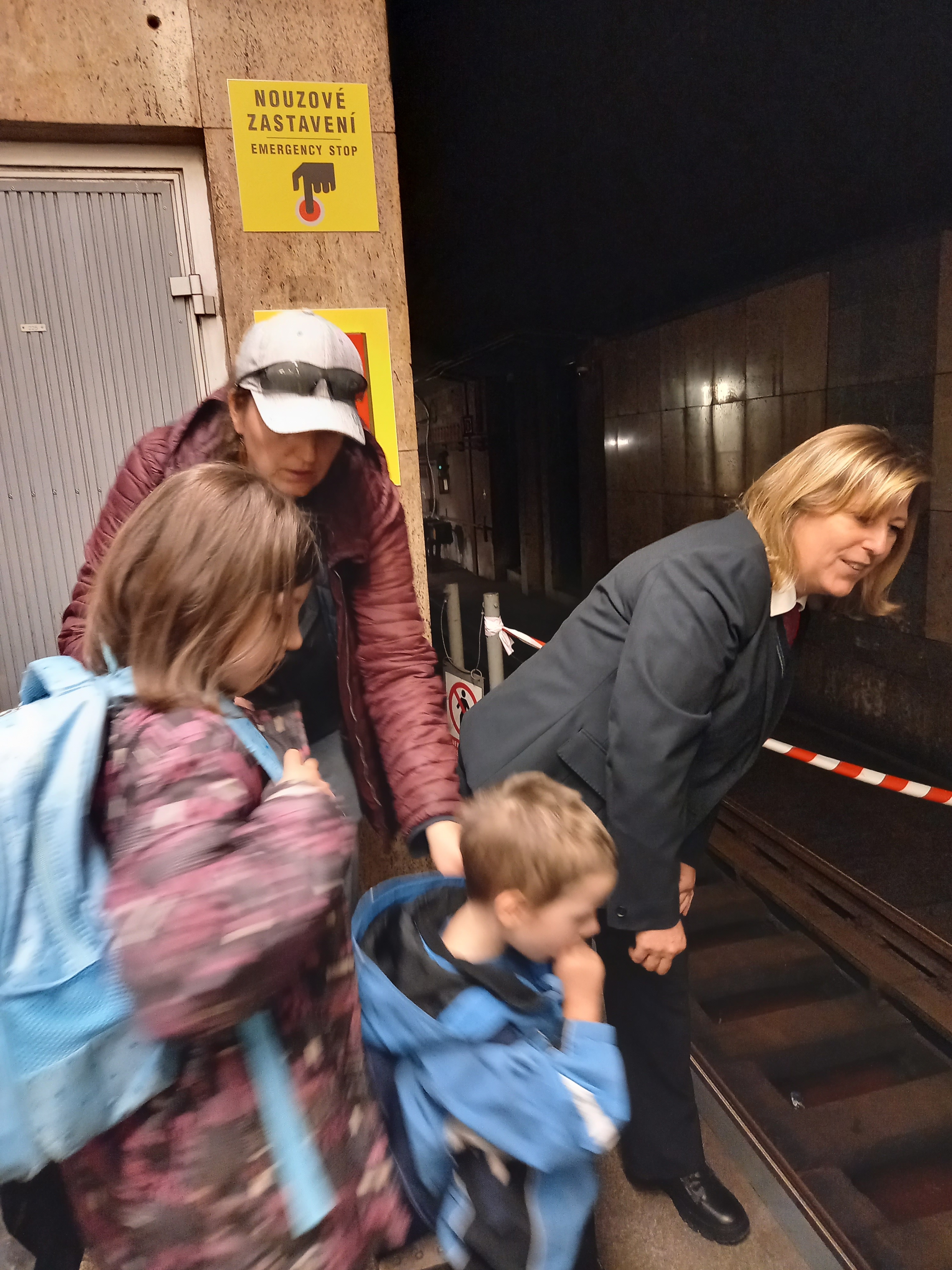 Na nástupišti stanice Budějovická nás přivítal pan Viktor Dudr, který nám uvedl základní informace, a poté jsme různě chodili po stanovištích. Jedna z nich byla návštěva vagonu, kde jsme například zjistili, že ve vagonech jsou různě k potřebě rozmístěny S.O.S. tlačítka pro pomoc. Ty slouží v případě, když se někomu udělá špatně nebo někdo spadne, či se bude něco zlého dít. Řidič hned uvidí na displeji velké písmeno D a může tak okamžitě zareagovat. Také jsme se dozvěděli, že doba na výstup či nástup, než začne hláška: „Ukončete nástup a výstup, dveře se zavírají“, je až 35 vteřin, podle vytíženosti stanic. Na dalším stanovišti jsme si mohli vstoupit do kabiny, kde nám řidič popsal řízení. Nebojte, vše bylo pro bezpečnost zablokováno. Vyzkoušeli jsme si i pouštění hlášení, jako je o tom nástupu a výstupu, ale pozor! Pan řidič to hned musel přerušit, protože by se všude dveře zavřely a při exkurzi se neví, jestli někdo právě nevstupoval či vystupoval, i když vozy stály. Také nás čekala ona základní informace, že když se stane jakýkoliv pád do kolejiště, je důležité, aby dotyčný/á sám nebo kdokoliv, ihned zmáčknul bezpečnostní tlačítko. To se nachází na každé stanici na stěně, vždy na koncích a v případě dlouhé stanice se sloupy i uprostřed nástupiště. Poté je potřeba stáhnout sklíčko dolů a ihned zmáčknout tlačítko. Pak se souprava jedoucího Metra zabrzdí. Vlastně tato akce byla i pro naši organizaci (nás členy) jako prevence. Byli jsme mile překvapeni, že jsme mohli vstoupit také do kolejiště, které je stejné, jako pro vlaky. V tunelu je tma, metro může jezdit maximálně 80km/h a výška z kolejiště k nástupišti je větší než u vlakového. Po skončení jsme se rozloučili a poděkovali za super akci. A co si odnášíme? Zapamatujme si, že bezpečnostní tlačítka ve stanicích jsou na nástupištích minimálně čtyři, na každé nástupní straně dvě pro danou kolej a tím zachráníte lidský život.