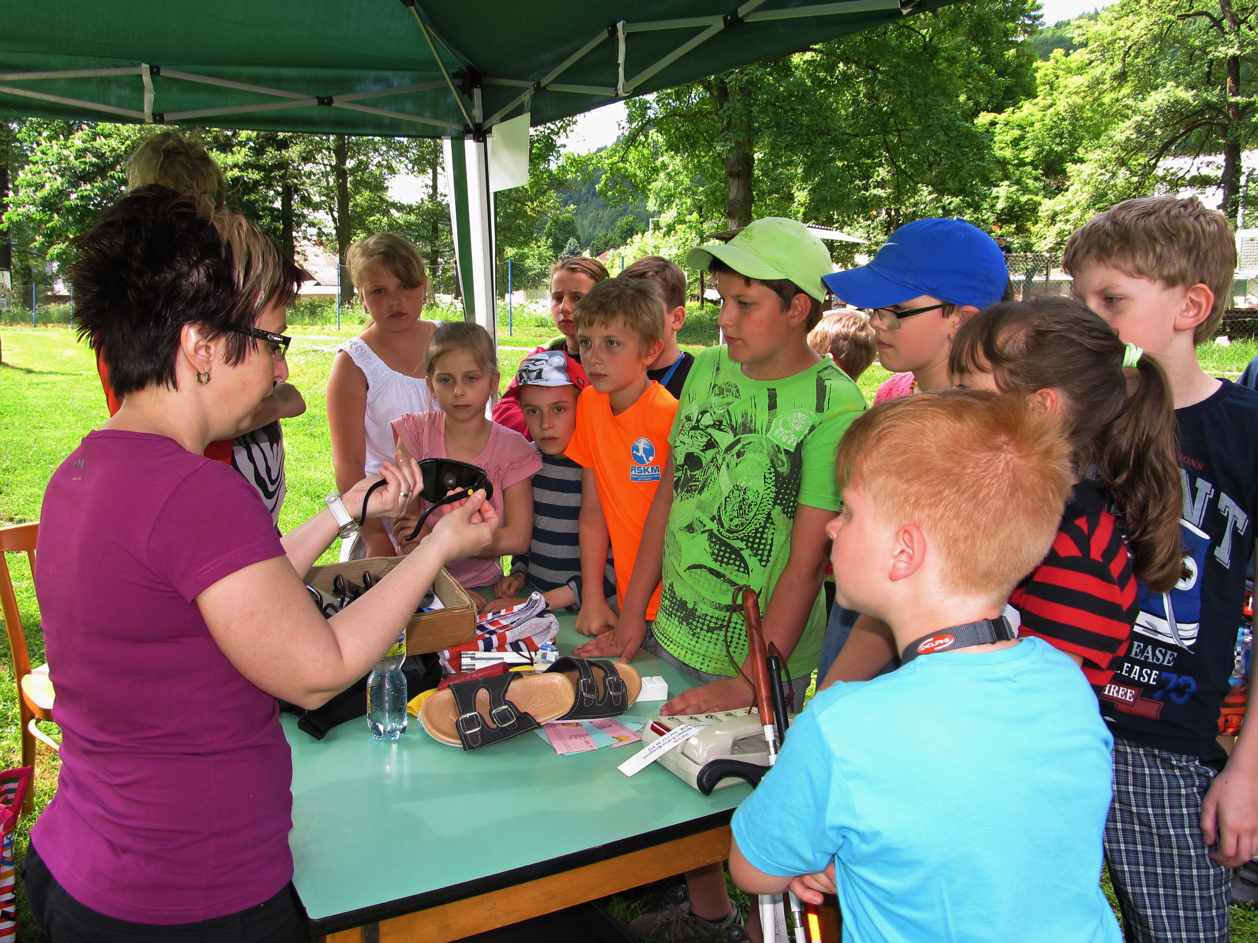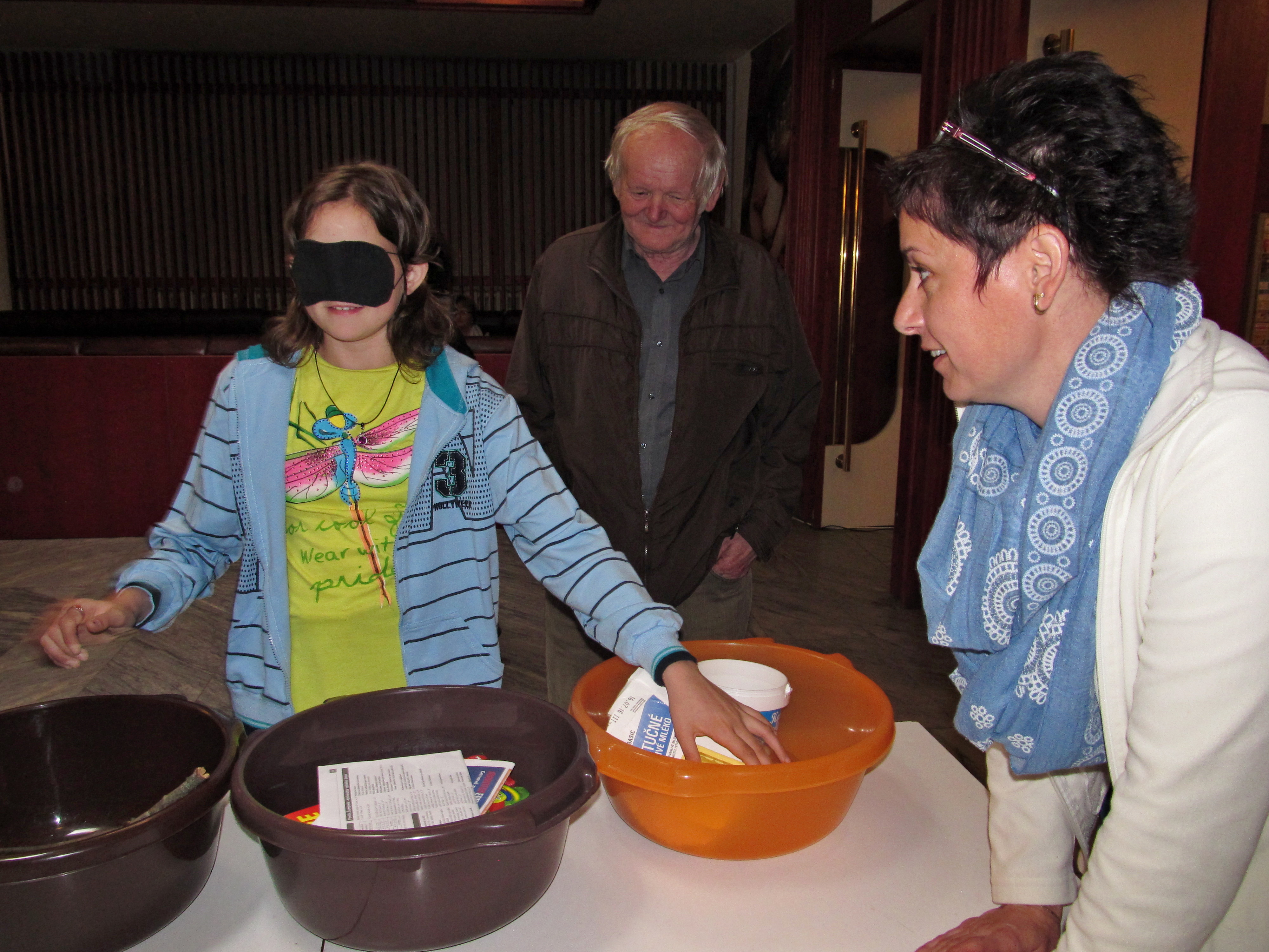 Další povedená květnová prezentace odbočky SONS se uskutečnila v Mohelnici a byla určena pro mateřské a základní školy i pro širokou veřejnost. Ti, co se rozhodli za námi dorazit do Kulturního domu, se seznámili téměř se všemi oblastmi života osob se zrakovým postižením. U činností z nácviku samoobsluhy jsme žáky i paní učitelky trošku potrápili, zato při podpisu pod stolní kamerovou lupou jen hrstka vydržela nepodvádět. Třídění odpadů pod vedením naší komunikativní dobrovolnice probíhalo bez sebemenších problémů, a jak tráví slabozrací a nevidomí volný čas předvedl jeden z našich dlouholetých členů. Děti i dospělí si zahráli showdown, hru Člověče, nezlob se nebo šachy, a to všechno bez kontroly zrakem. Dlouholeté a zkušené pracovnice mezitím zaměstnávaly přítomné u náročnějších kompenzačních pomůcek, simulačních brýlí nebo hmatových obrázků.
