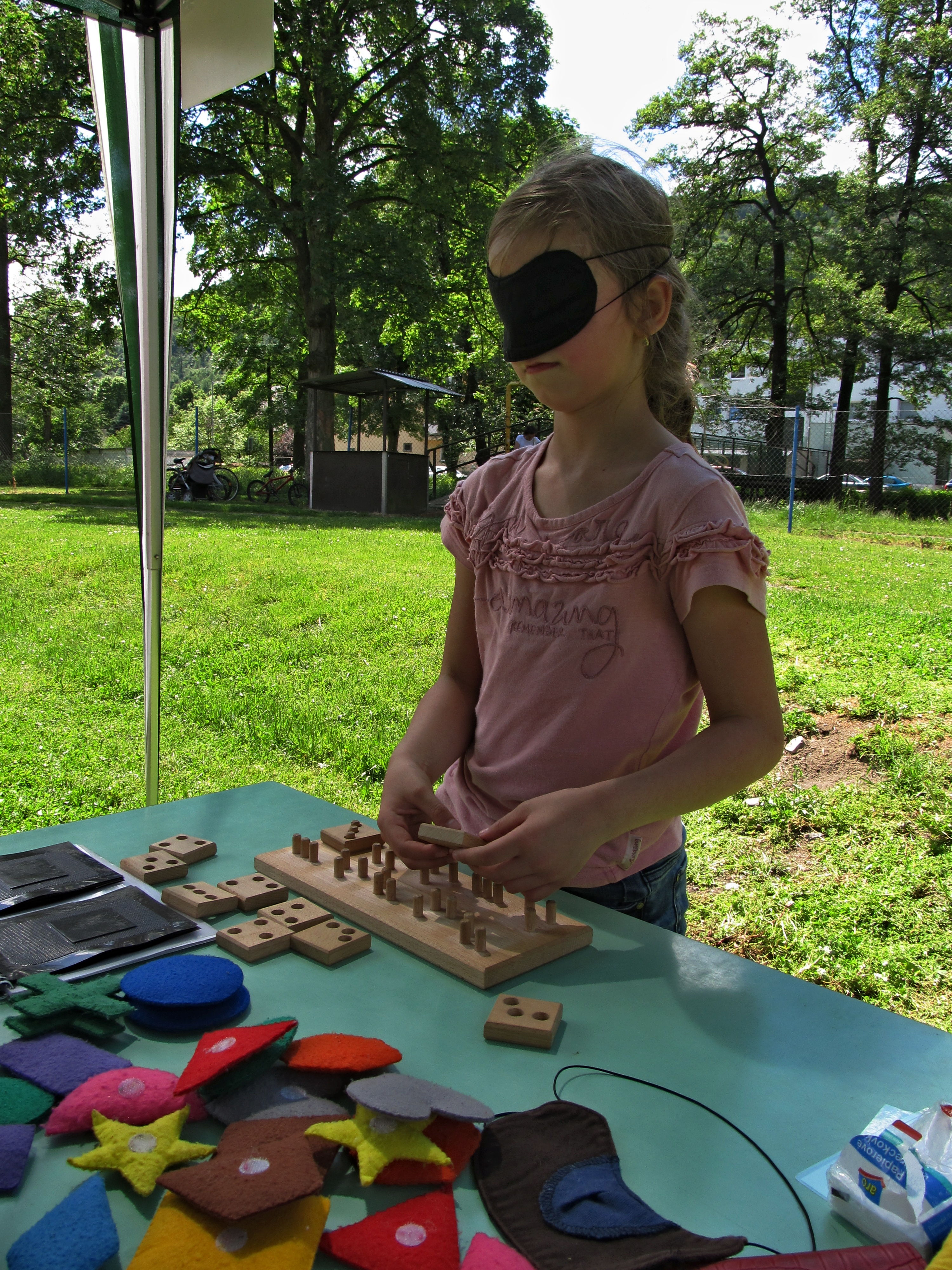 V neděli 8. května 2016 jsme se prezentovali v parku Sady 1. máje v Šumperku, kde probíhala akce Kloboukový den. Organizátorem bylo Středisko volnočasových aktivit Doris, jejiž akce jsou velmi žádané a stojí za to je navštívit. Kloboukový den byl určen pro rodiče s dětmi různého věku, a tak jsme naše „sonsácké“ stanoviště s úkoly přizpůsobili. Stezku s překážkami zdolávali pomocí bílé hole malí i velcí, nápis v Braillově písmu luštila s radostí celá rodina a třídění předmětů bez pomoci zraku zvládli i ti nejmenší. Pro zvídavé byly v záloze připraveny kompenzační pomůcky a hry pro nevidomé.
