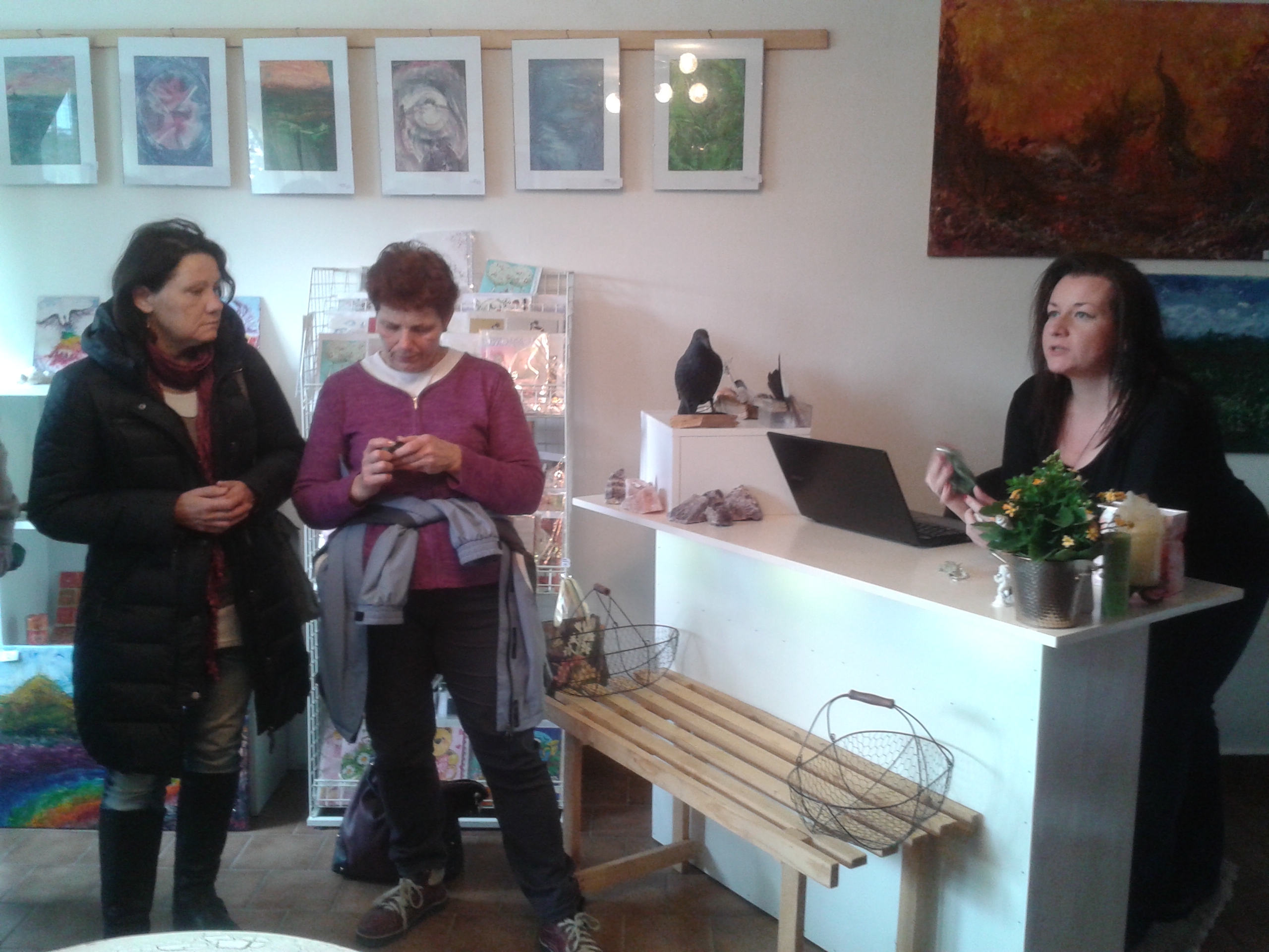 … a další a další názvy, návody, otázky a odpovědi, co a jak dělat, případně nedělat, co prospívá, co může uškodit. Prohlíželi jsme, osahávali, někteří vybírali a nakupovali. Kdo chtěl, mohl se domluvit na osobní konzultaci nebo objednat na některou z mnoha přednášek a kurzů, které Eliška ve svém Magickém krámku pořádá. Témat je mnoho- jak chápat esoteriku, o minerálech, o zlepšování sebevědomí, o komunikaci a mezilidských vztazích a další.