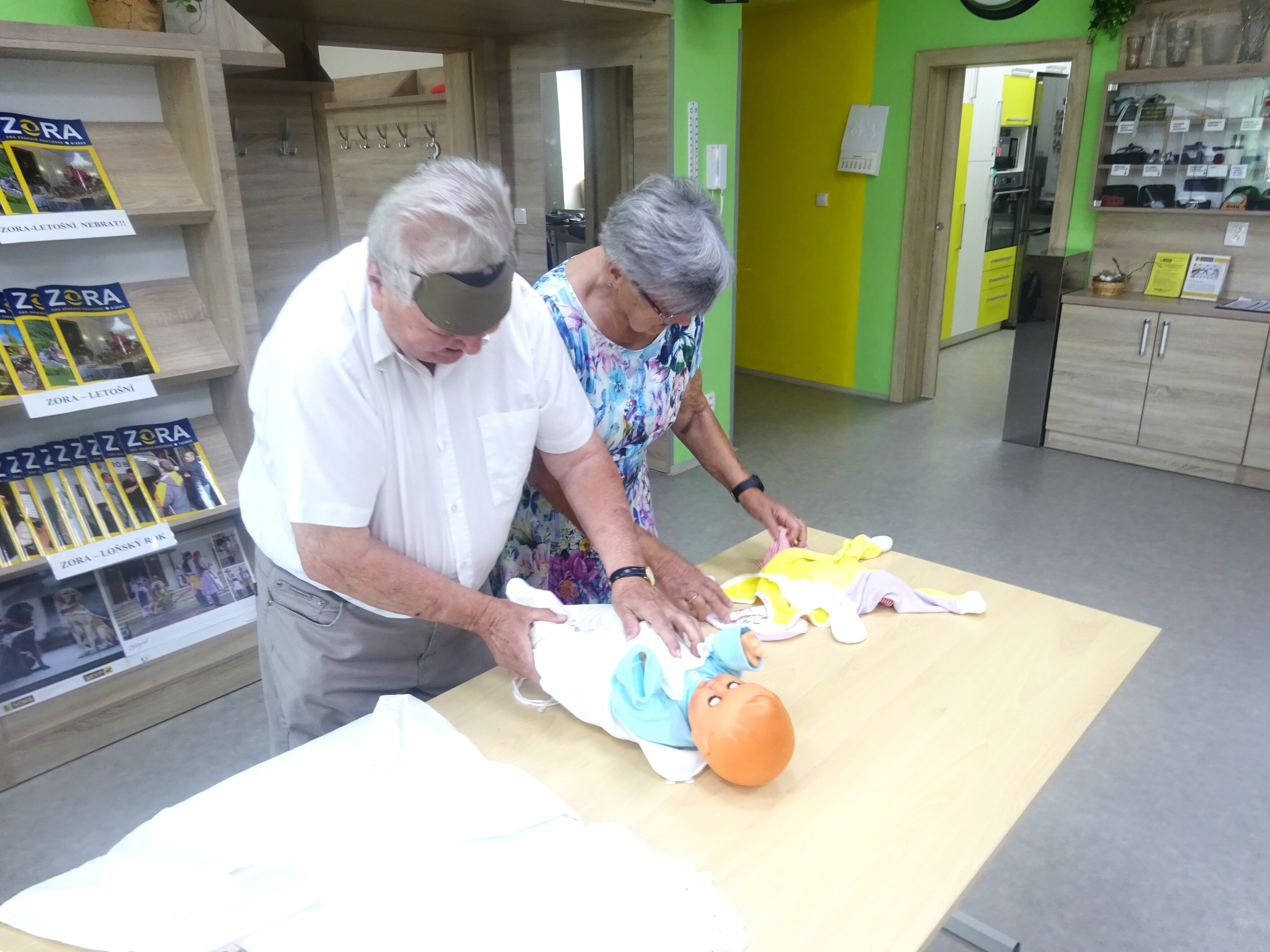 Na třetí neděli v červnu připadl Den otců. Hned následující pondělí jsme na klubovém setkání měli v plánu ty naše taťky přezkoušet z toho základu, a to je přebalení mimina látkovými plenami, obléci ho a zabalit do klasické zavinovačky. Jako by to tušili, raději zůstali doma 😊 Našel se jeden praděda, kterému pomáhala manželka se slovy, v životě to nedělal a pak bezdětní pánové mladšího věku, kteří překvapili, páč věděli a znali! Musíme je všechny pochválit, někteří i bez kontrolky zraku prokázali, že jemná motorika jim není cizí a je to jejich denní chléb 😊 Nechyběla ani zasloužilá odměna ve formě papírové kravaty.