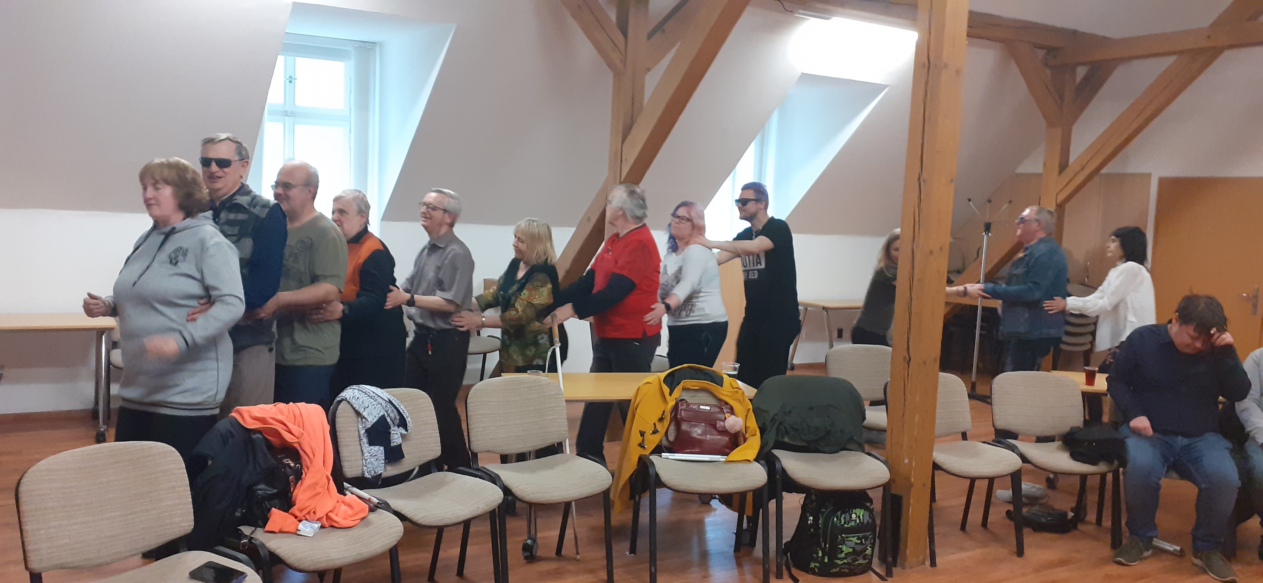 Dne 22.4. jsme vypomáhali TyfloCentru na akci „Tancovačka v knihovně“. Bylo to úžasně strávené odpoledne, skvělá atmosféra, všichni jsme si to moc užili. Popili jsme pivko, vínko či nealko a k zakousnutí jsme k tomu měli mix sýrů a salámů s pečivem.