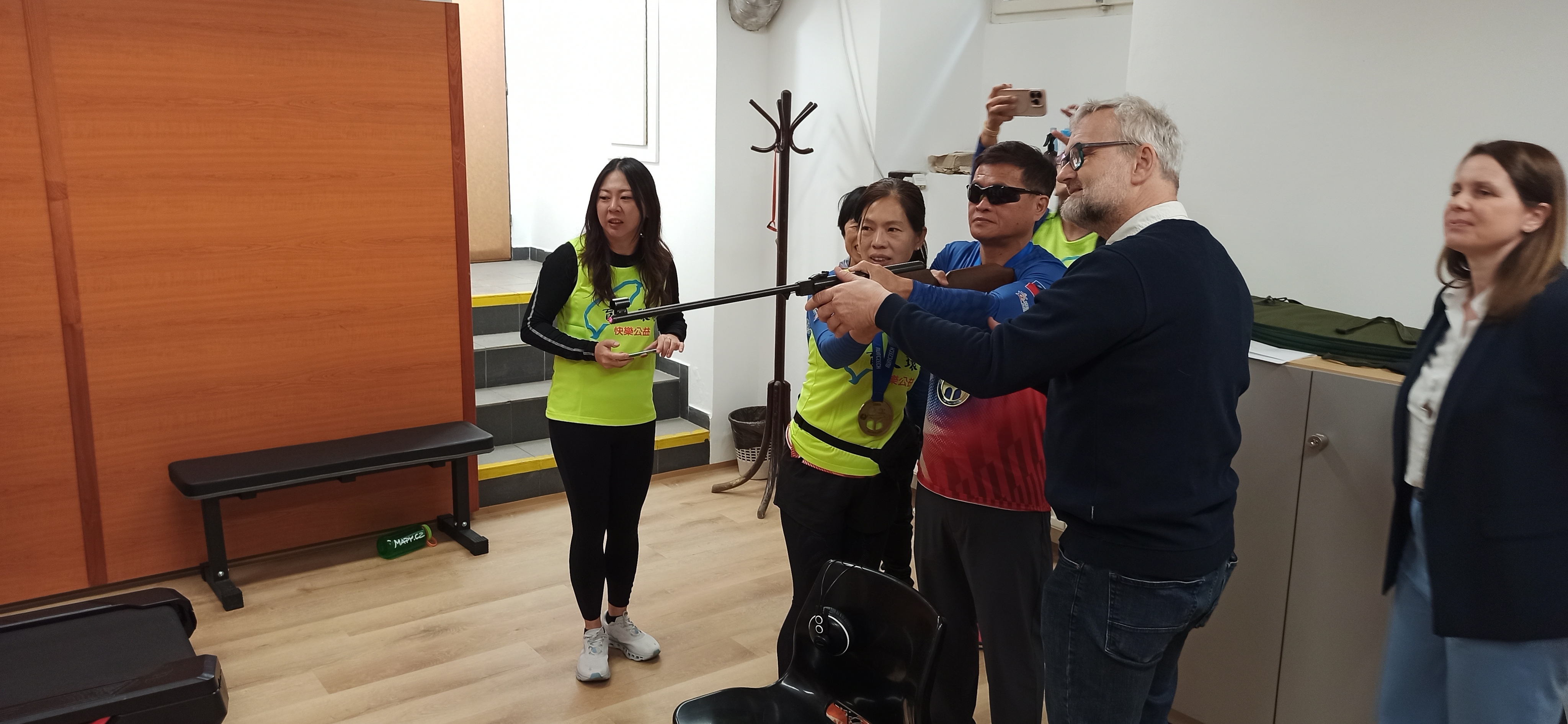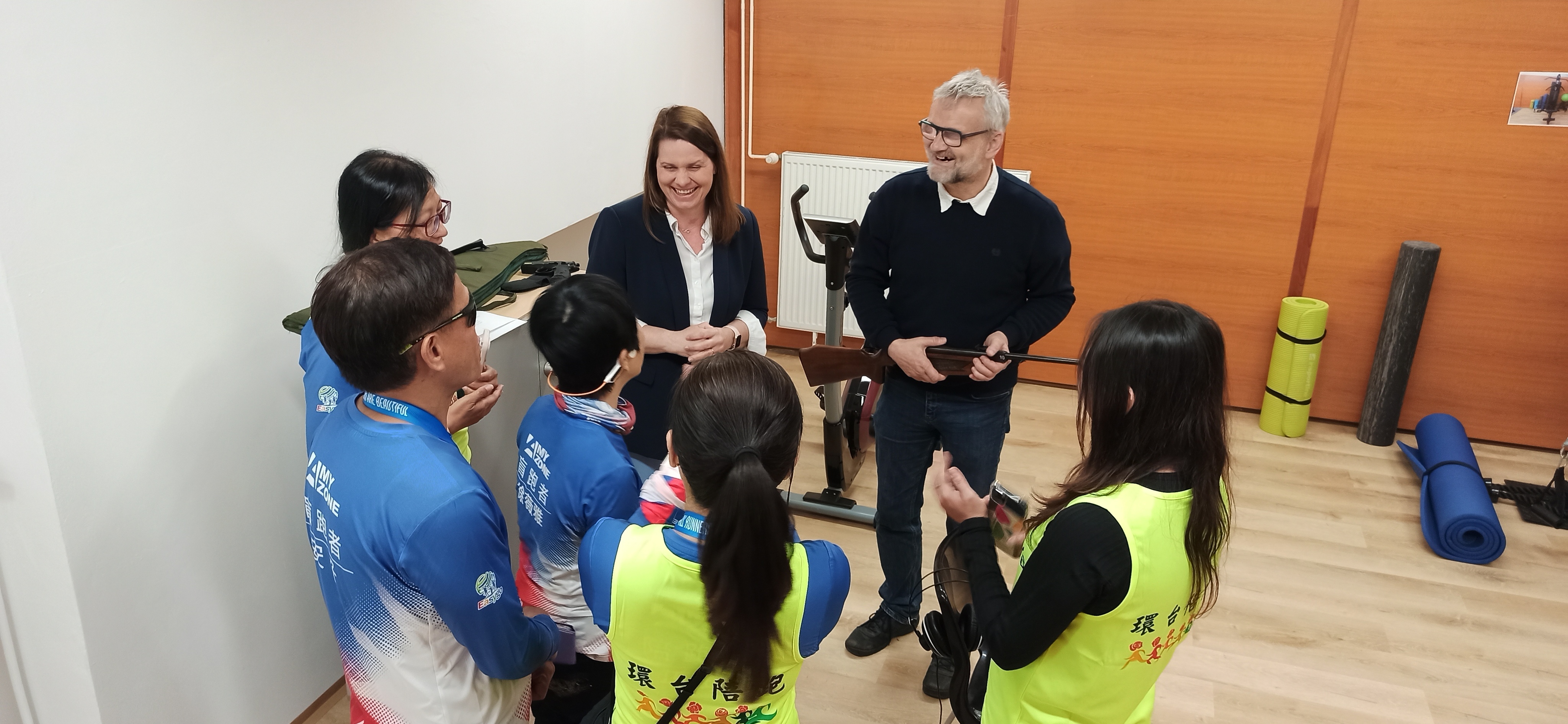 Minulý týden navštívili Tchajwanští sportovci Prahu. Navštívili i dům služeb pro nevidomé, kde se seznámili se životem zrakově postižených v ČR. Kromě jiného si vyzkoušeli i zvukovou střelbu, která se jim moc líbila.