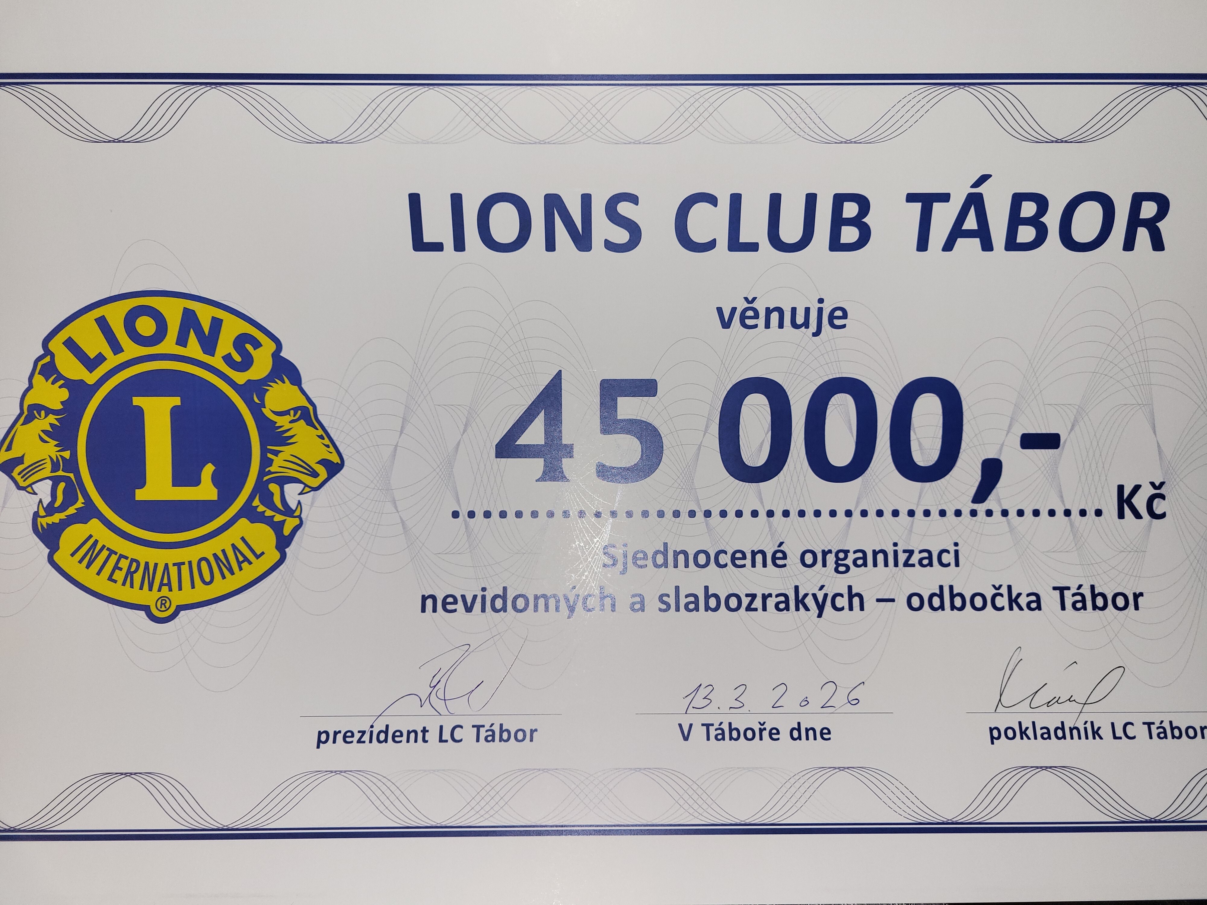 V pátek 13. března jsme se vydali do táborského divadla Oskara Nedbala na koncert nevšední kapely studentů a absolventů školy Jedličkova ústavu The Tap Tap, který pořádal Lions Club Tábor. Na tomto charitativním koncertě byly předány finanční dary organizacím, které pomáhají lidem s různými handicapy. Mezi obdarovanými byla i naše organizace, která získala šek v hodnotě 45 tisíc korun. Lions Club Tábor naší organizaci podporuje již desítky let a jsme jejím členům neskutečně vděční a děkujeme za přízeň a spolupráci.