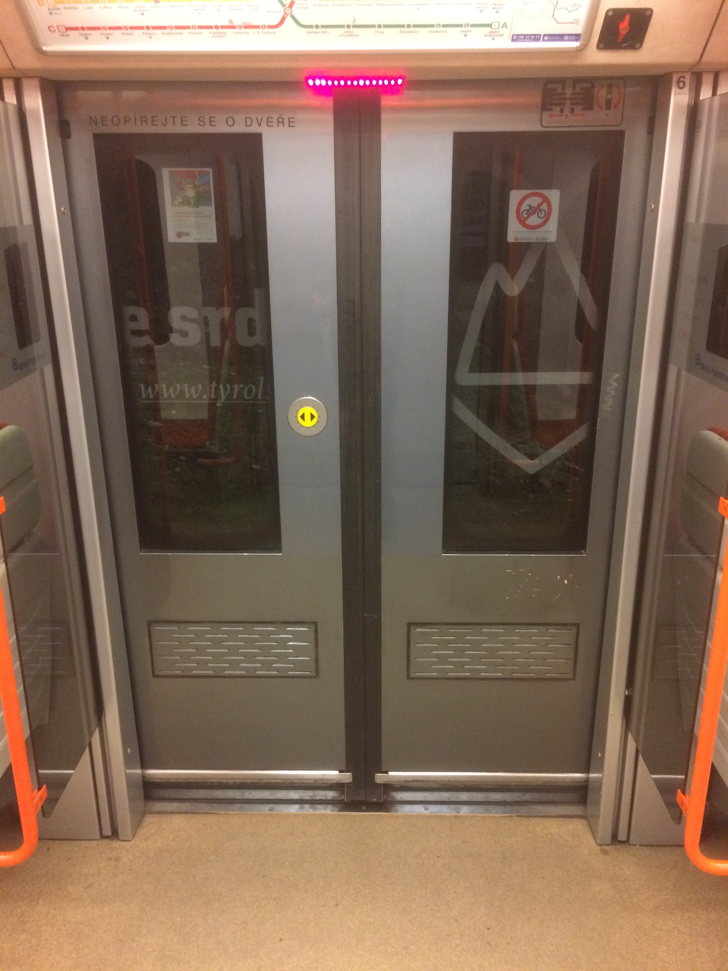 Nejjednodušeji se dá cestujícím poradit v případě metra. Dveře se tu totiž ve vagonech otevřou vždy, pokud tlačítko nesvítí. Když naopak kulatý knoflík s šipkami svítí, je nutné ho pro otevření zmáčknout. Po stlačení se rozbliká a dveře se ve stanici otevřou. Zajímavostí také je, že u prvních a posledních dveří vlakové podzemní soupravy jsou tlačítka na dveřích zbytečná. Dveře se totiž otevírají automaticky mimo jiné kvůli dobíhajícím cestujícím, a také maminkám s kočárky nebo invalidům.