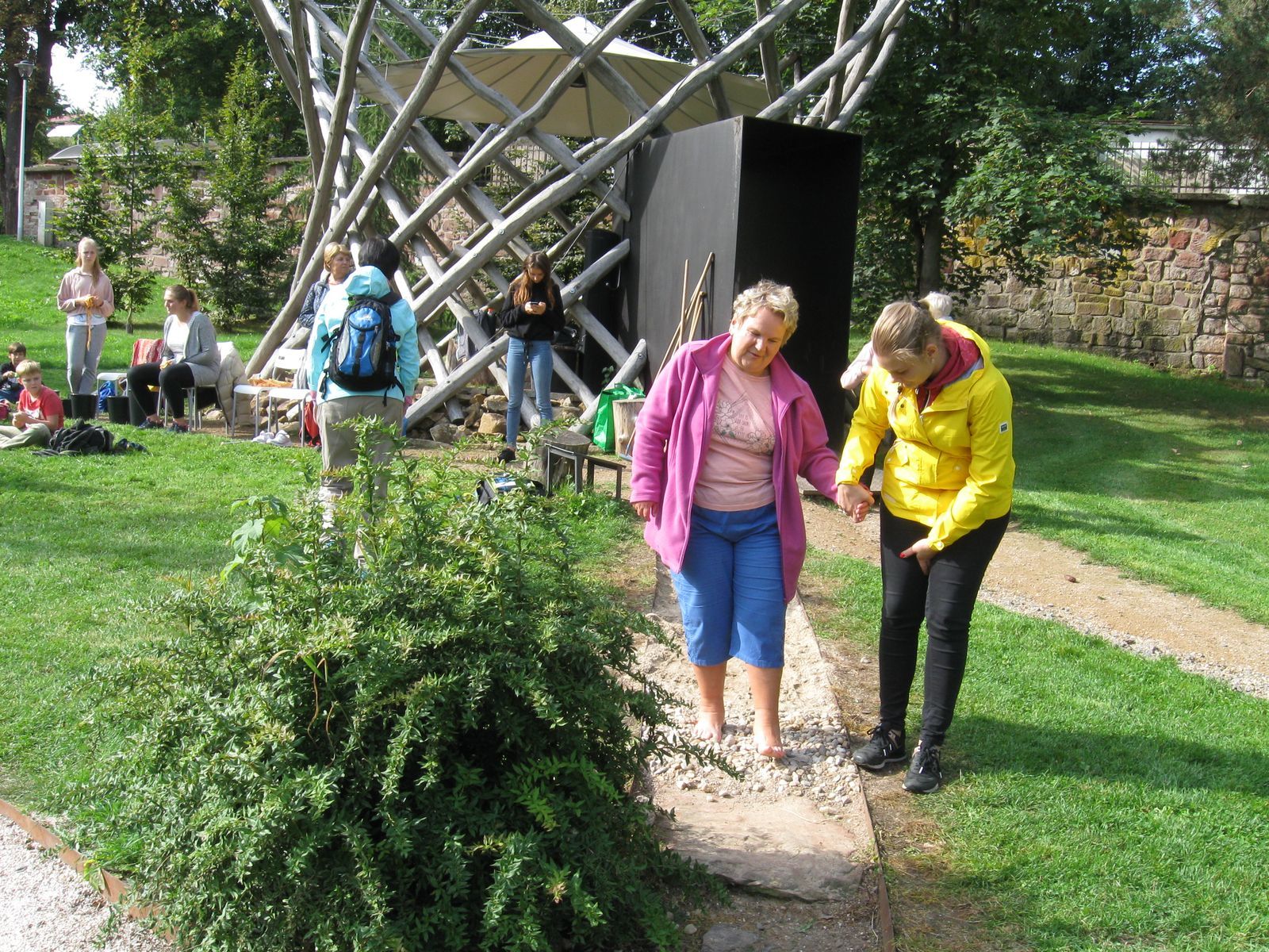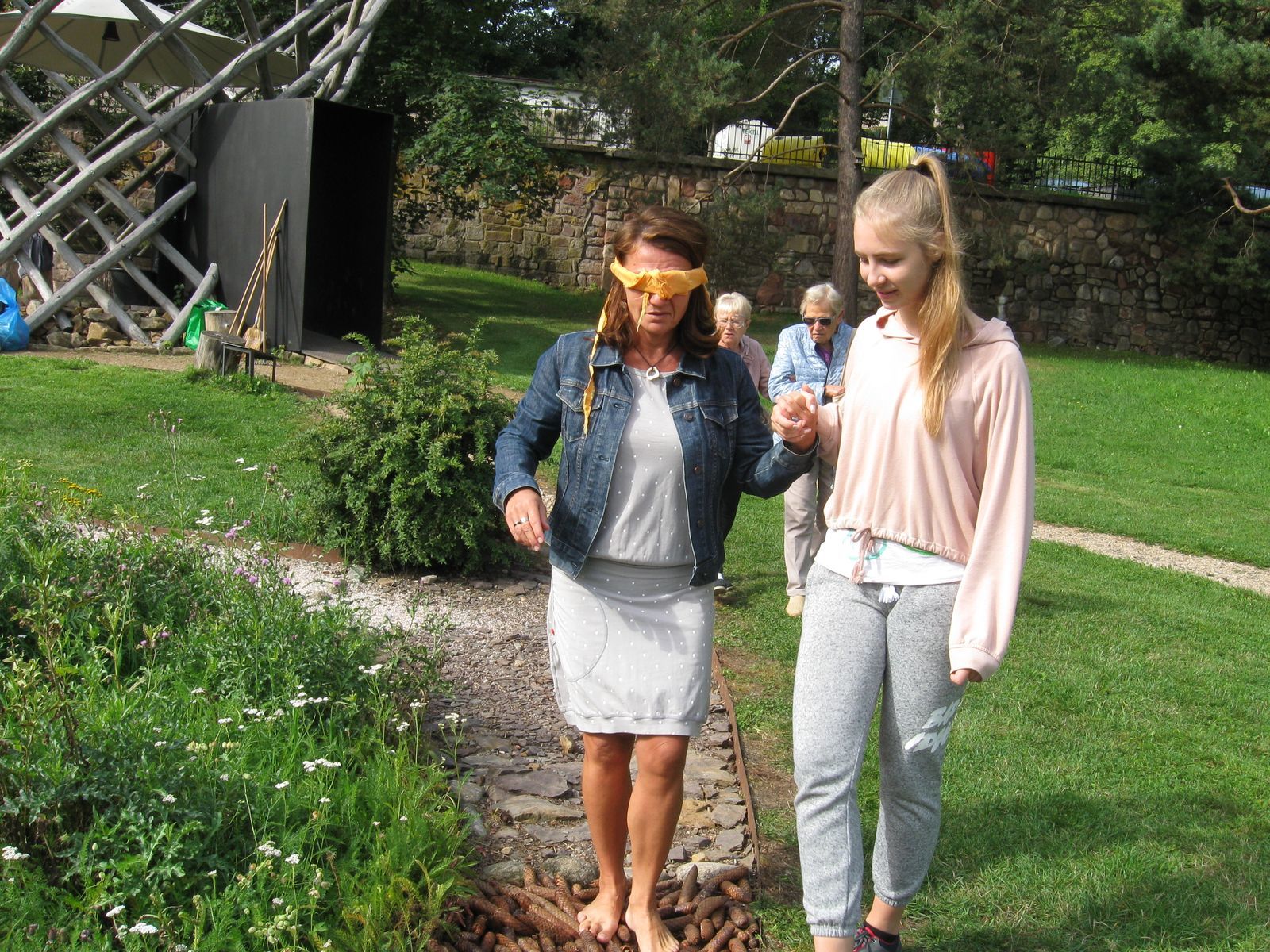 Jako každé září - naše oblíbená akce KRNAPU - Tma přede mnou, aneb dotkněte se Krkonoš. A tak jsem se vydali busem do nedalekého Vrchlabí, kde už na nás čekal pan Bílek z Krnapu se svými kolegyněmi a společně jsme absolvovali několik stanovišť, kde jsme hmatem, sluchem či čichem poznávali naše Krkonoše. Prošli jsme si na boso hmatový chodníček, počítali po hmatu šišky z různých jehličnanů, řadili kamínky podle tvaru a hmotnosti, ale nejvíce se nám asi líbilo poznávání bylinek podle vůně, kde jsme dostali nejen odborný výklad ke každé bylince, ale byla i ochutnávka pamazánek z bylin... Takže u nás opět " za jedna"! Děkujeme a těšíme se za rok zase!