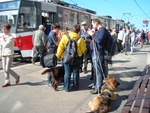 nás již před budovou uvítalo několik vodicích psů s jejich cvičiteli.