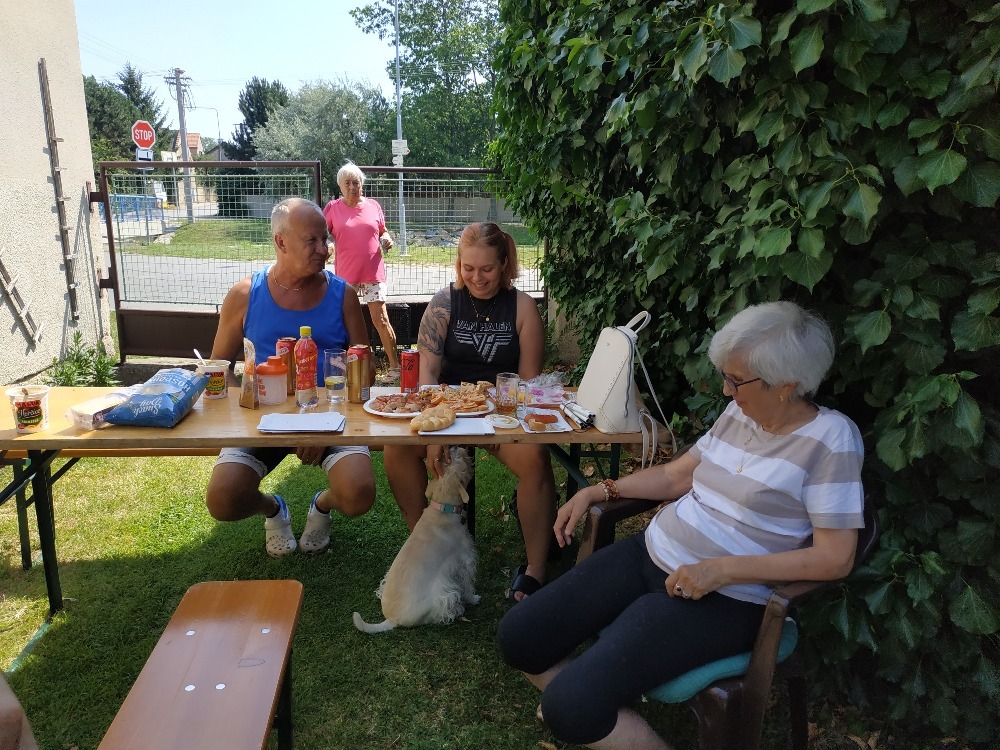 Ve středu 10. července jsme na pozvání Alenky vyrazili do Sobětuch, abychom si pochutnali na opečených buřtech a také na dalších dobrotách, kterými některé naše členky obohatily náš hodovní stůl. Nakonec se nás sešlo celkem 17 osob a tři pejsci. Užili jsme si krásný a pohodový den.