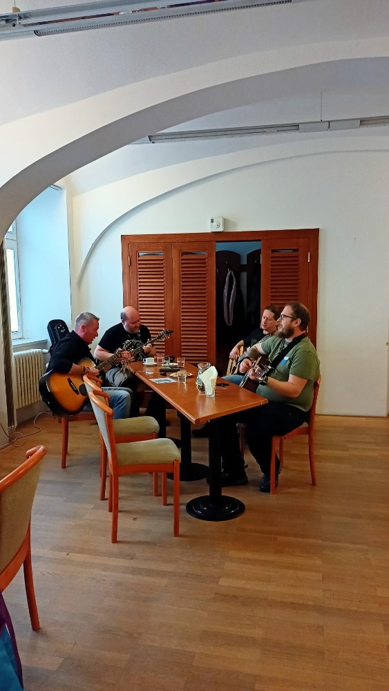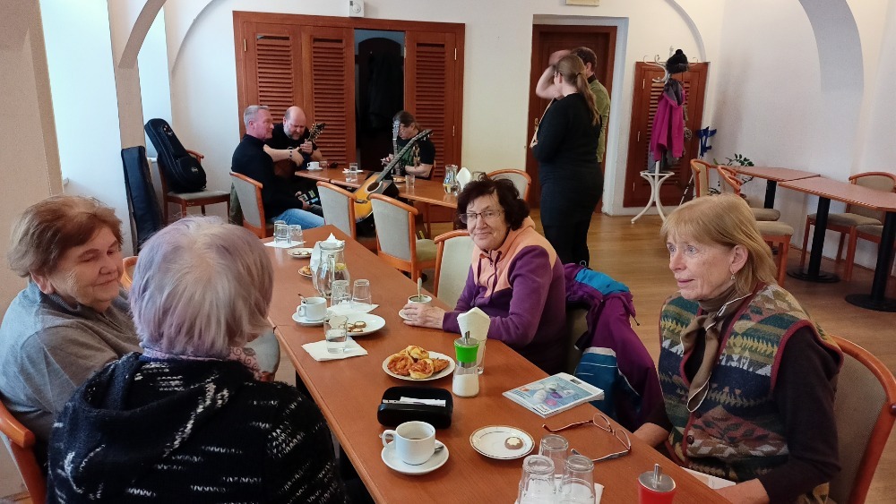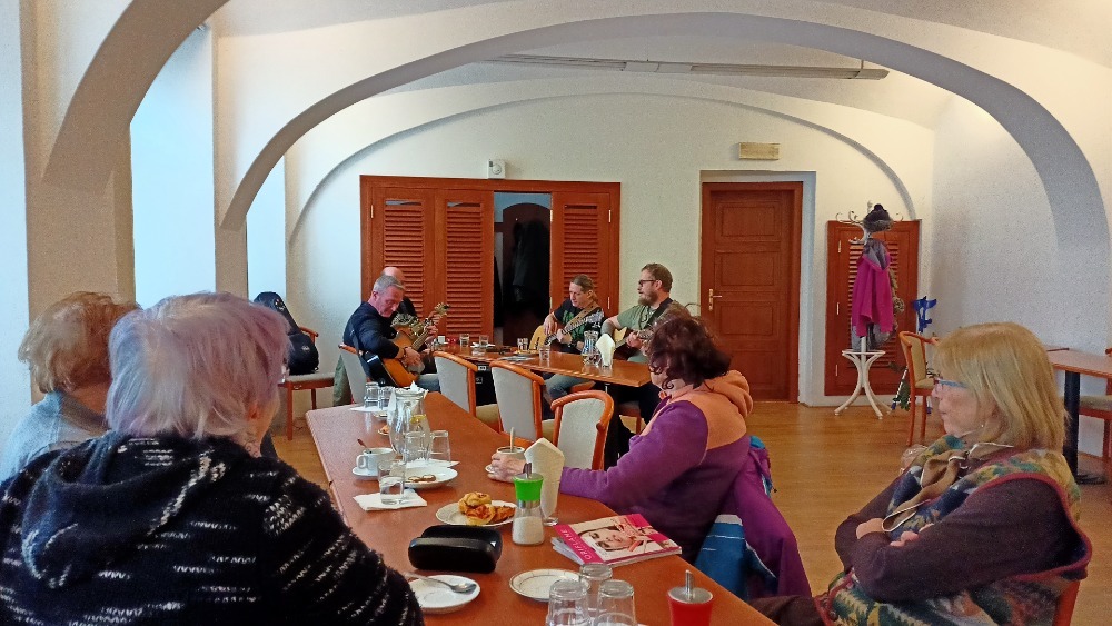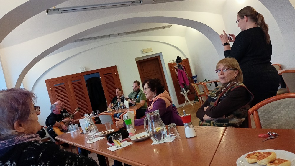 I přes nižší účast našich členů jsme si akci užili, společně jsme si zazpívali, zahřáli jsme se teplou kávou či čajem a zakousli jsme si domácí pečivo. Všichni jsme byli spokojení a určitě kapelu zase někdy pozveme.