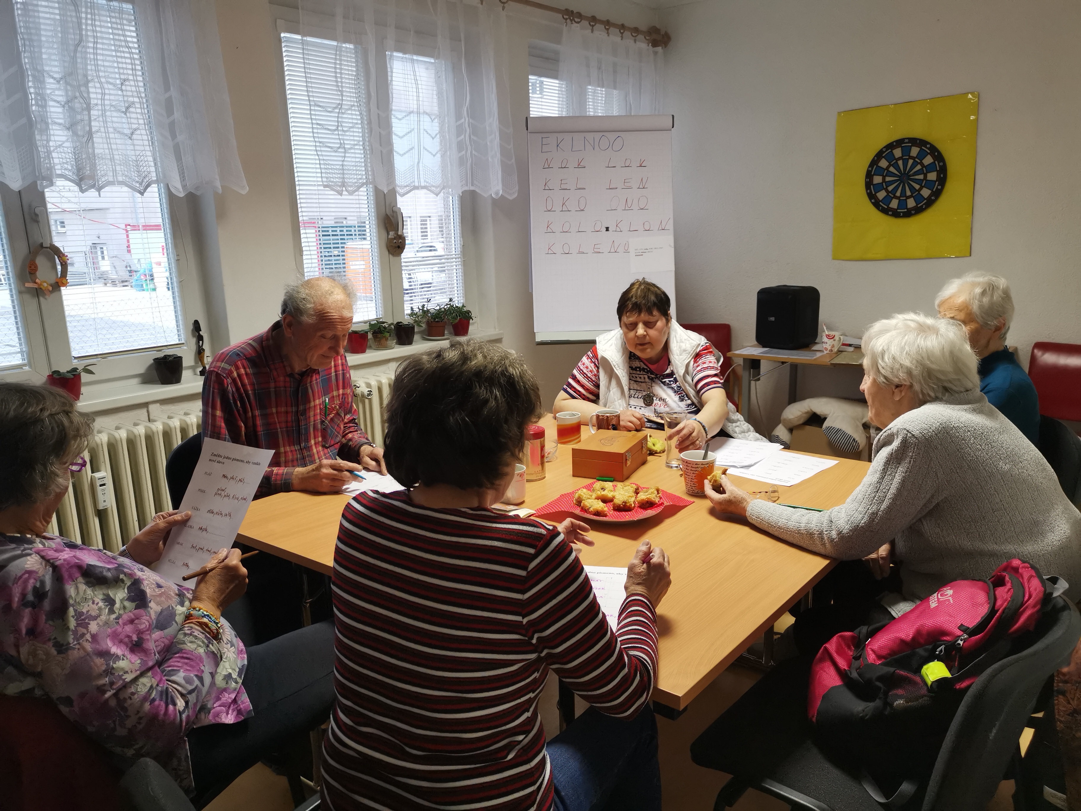 Odpoledne začalo Lovem slov - na rozehřátí. Pak přišla na řadu spousta rébusů, přesmyček, hádanek a kvízů. Vše speciálně upraveno pro nás, písmenka velká a ještě větší jsou samozřejmostí. A když bylo i to málo, nahlas jsme zadání předčítali. Na řešení měl každý tolik času, kolik potřeboval. Takže dnes zvítězili všichni!