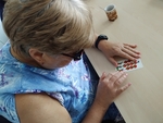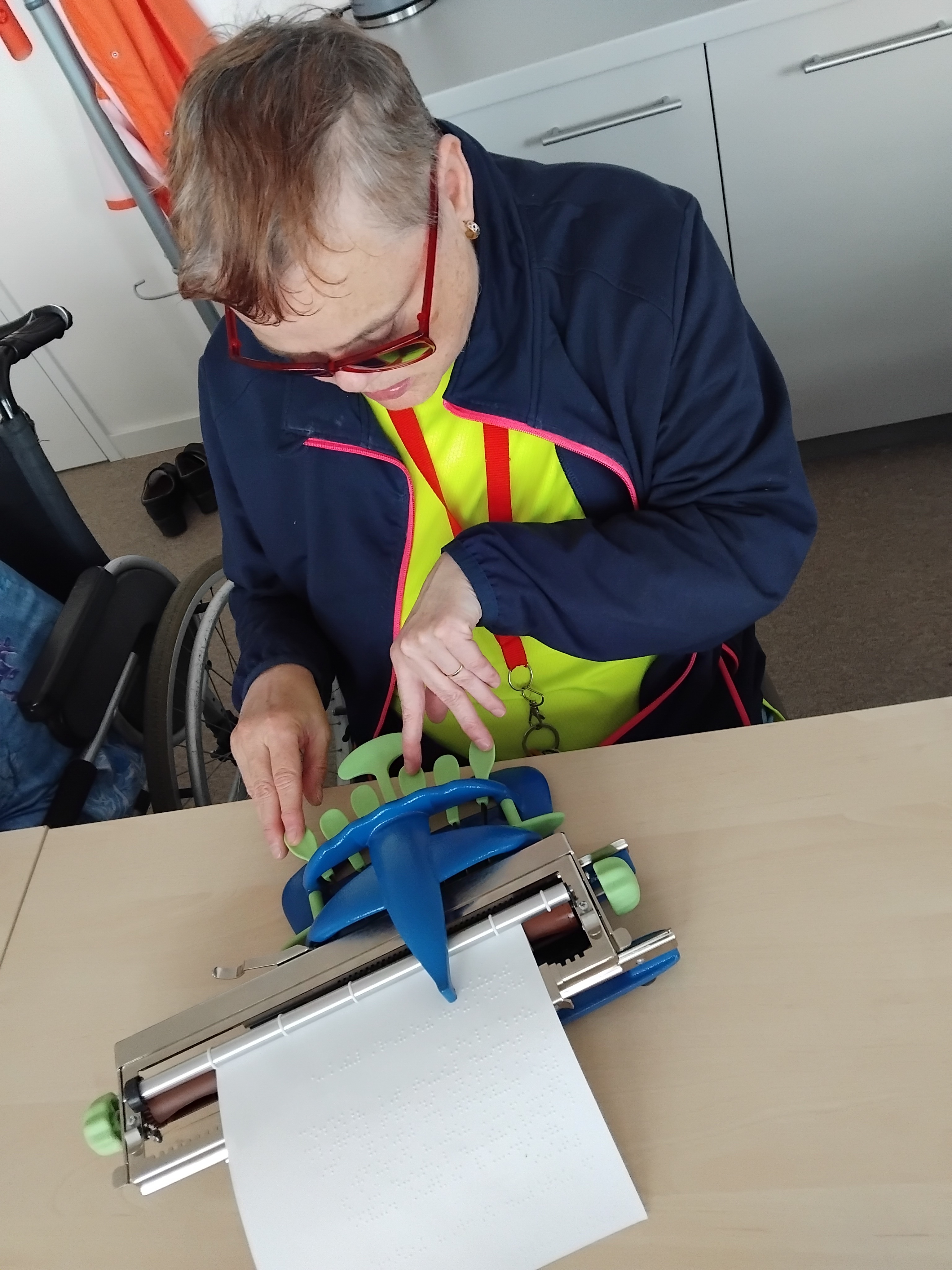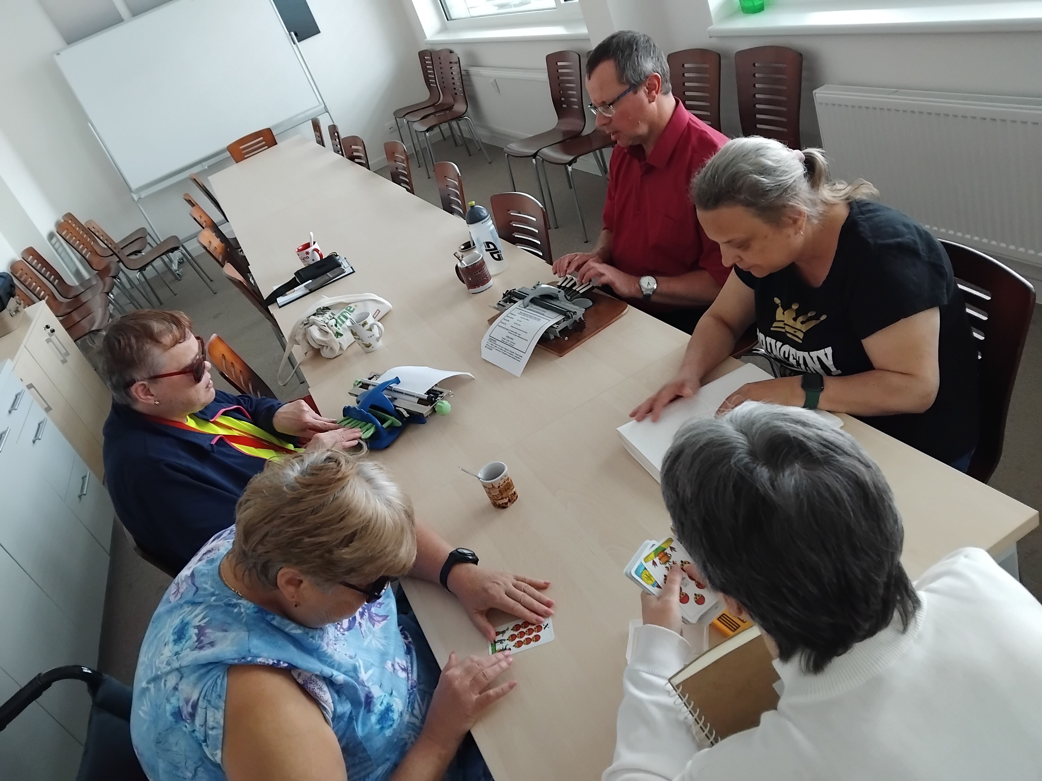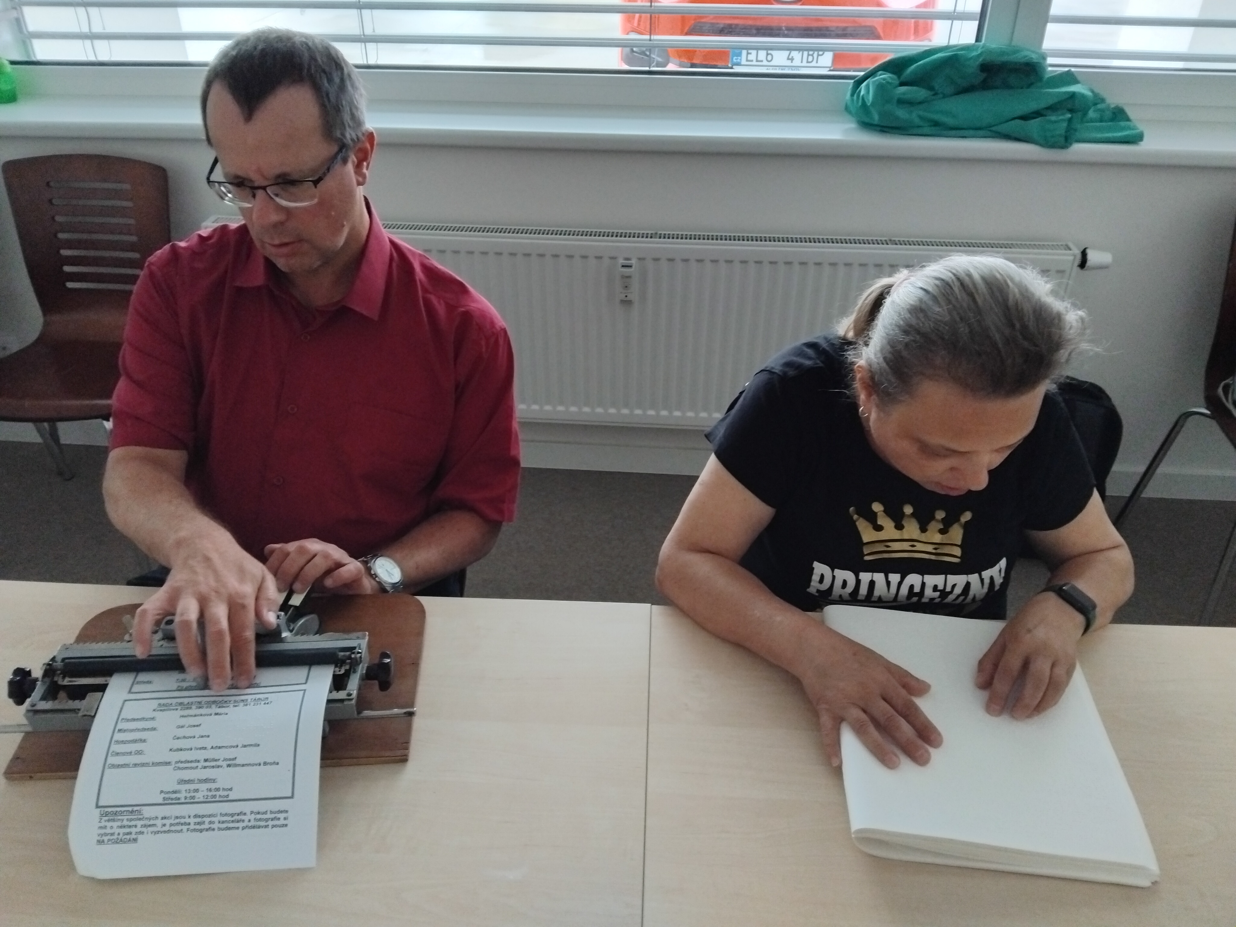 Pravidelnou aktivitou v táborské odbočce je trénování dosavadních dovedností ve čtení a psaní bodového písma. Tentokrát jsme trénovali na Pichtově psacím stroji a také jsme ve skupině spolupracovali, když jeden četl daný text v Braillově písmu a druhý ho přepisoval. Legrace občas nastala při kontrole přepisovaného textu. Na závěr nechyběly ani hry, díky kterým jsme zlepšovali svůj hmat při řešení rébusů. U všech je vidět zlepšení a chuť stále procvičovat a velké poděkování patří naší lektorce Emilce, která povzbuzuje ostatní.