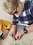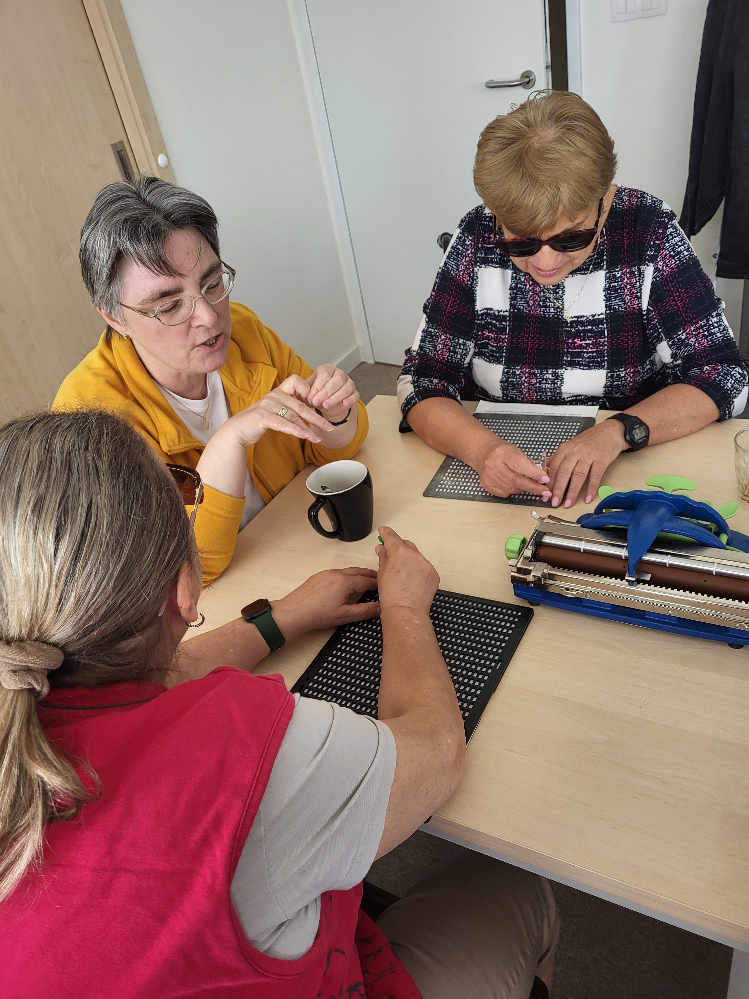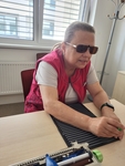 Na závěr jsme si zahráli jednoduchou verzi scrabblu a hlavolam „Lišák“ – oblíbenou hru pro nevidomé, která rozvíjí jemnou motoriku i slovní zásobu. V budoucnu plánujeme pokračovat s dalšími pomůckami včetně braillského řádku a dalších her, které zábavně podporují práci s bodovým písmem.