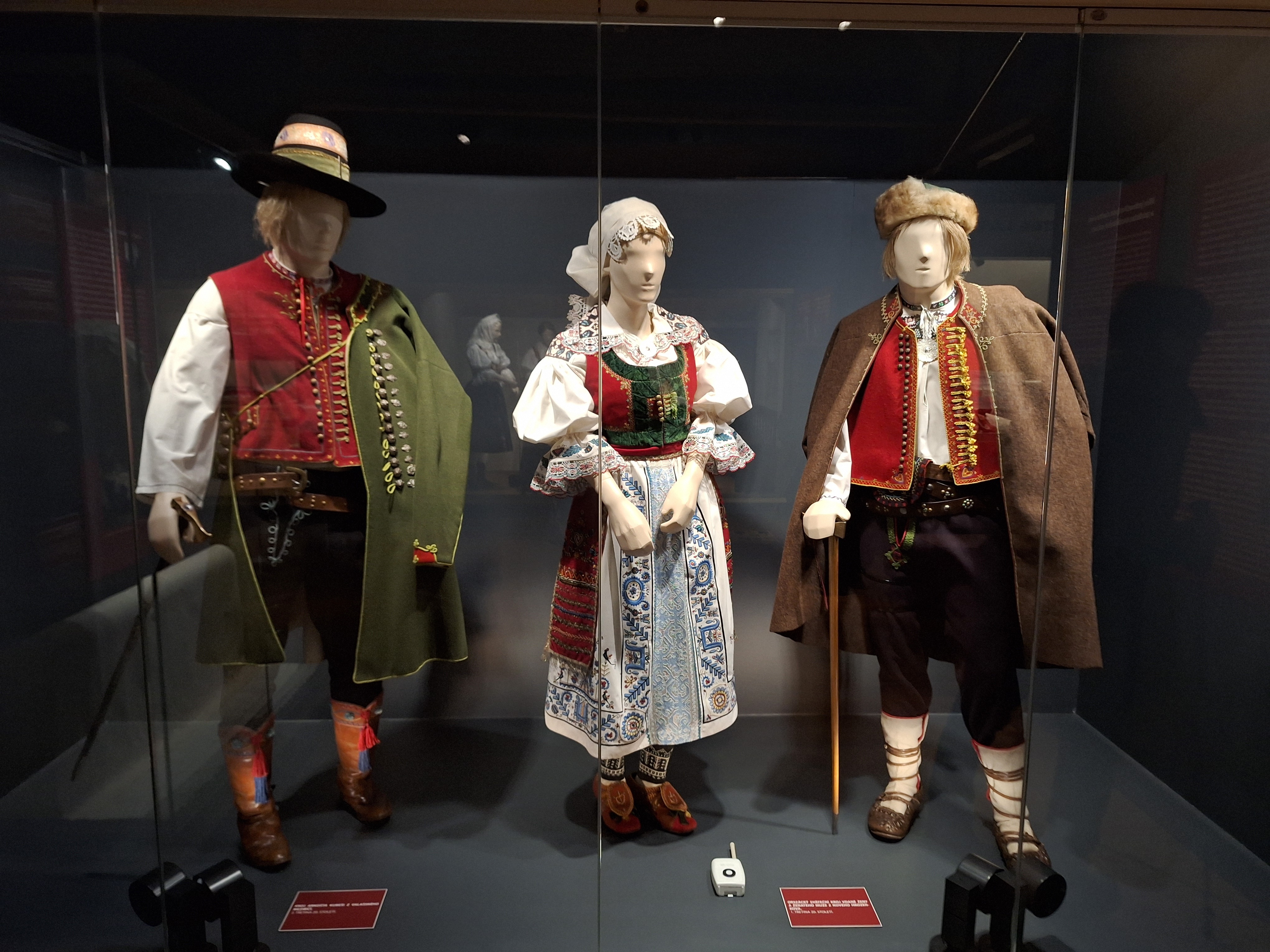 Po prohlídce Dřevěného městečka jsme se ještě zastavili v hlavní budově, kde jsme si prohlédli další exponáty. Velkou pozornost vzbudily především pestré valašské kroje. Ty byly sice umístěny za sklem, ale průvodci nám poskytli podrobné a poutavé popisy, takže jsme si dokázali jejich krásu i význam dobře představit.