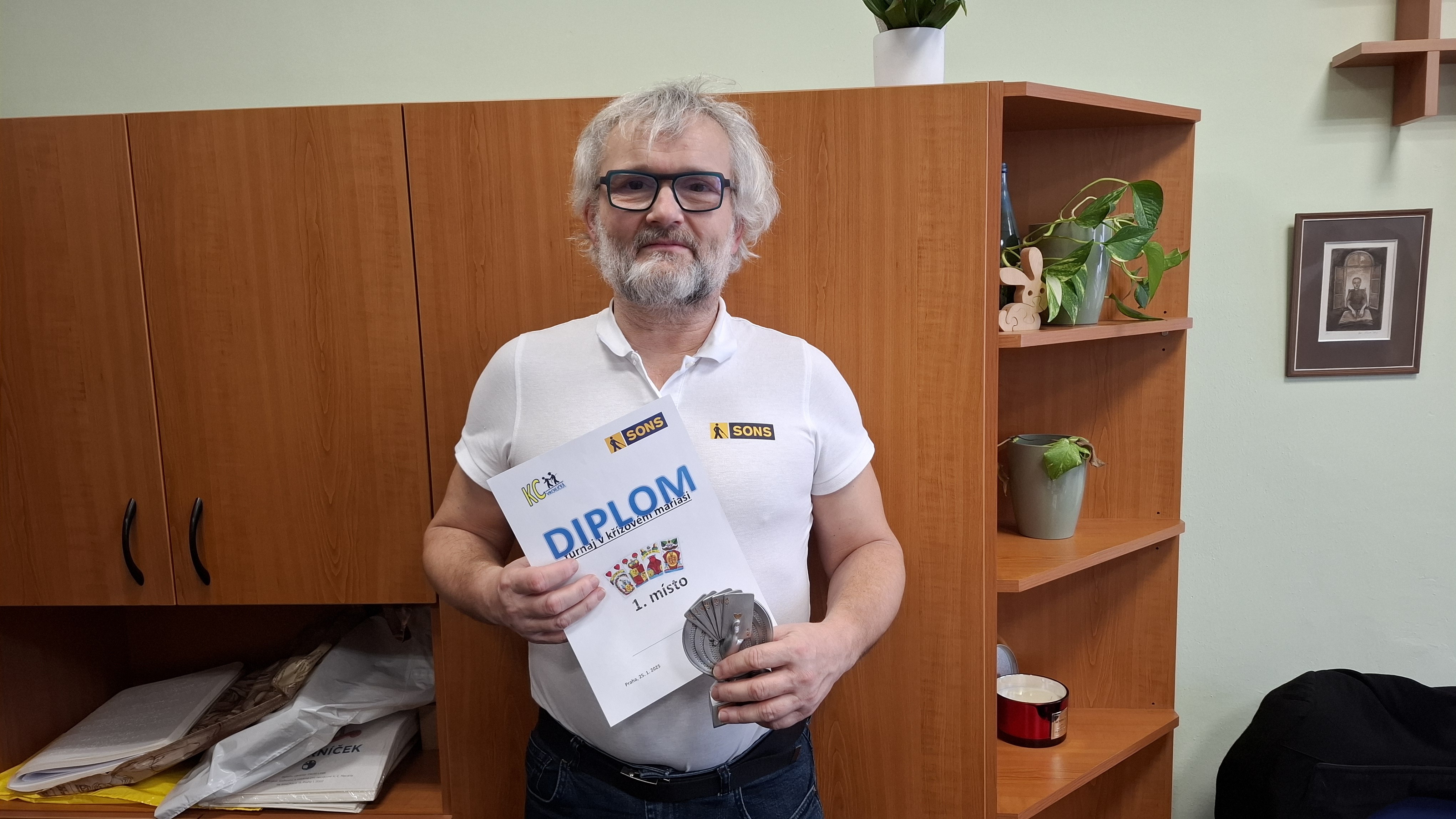 V sobotu 25. ledna 2025 se v Praze uskutečnil turnaj v křížovém mariáši určený především nevidomým a zrakově postiženým hráčům. Celkem osm mariášníků si to rozdalo ve třech více než hodinových kolech. Turnaj skvěle připravila Petra Schejbalová, která se na mariáš těšila snad ze všech nejvíc. Bohužel Petra odnesla to, že část třetího kola musela hrát namísto čtyřkového, trojkový mariáš a s nepřízní „kartiboha“ nakonec skončila poslední. Třetí kolo vskutku zamíchalo pořadím. Doposud vedoucí Petra Poláková nakonec skončila třetí, Karel Novotný po dvou kolech předposlední, díky třetímu kolu, celkově vyhrál.