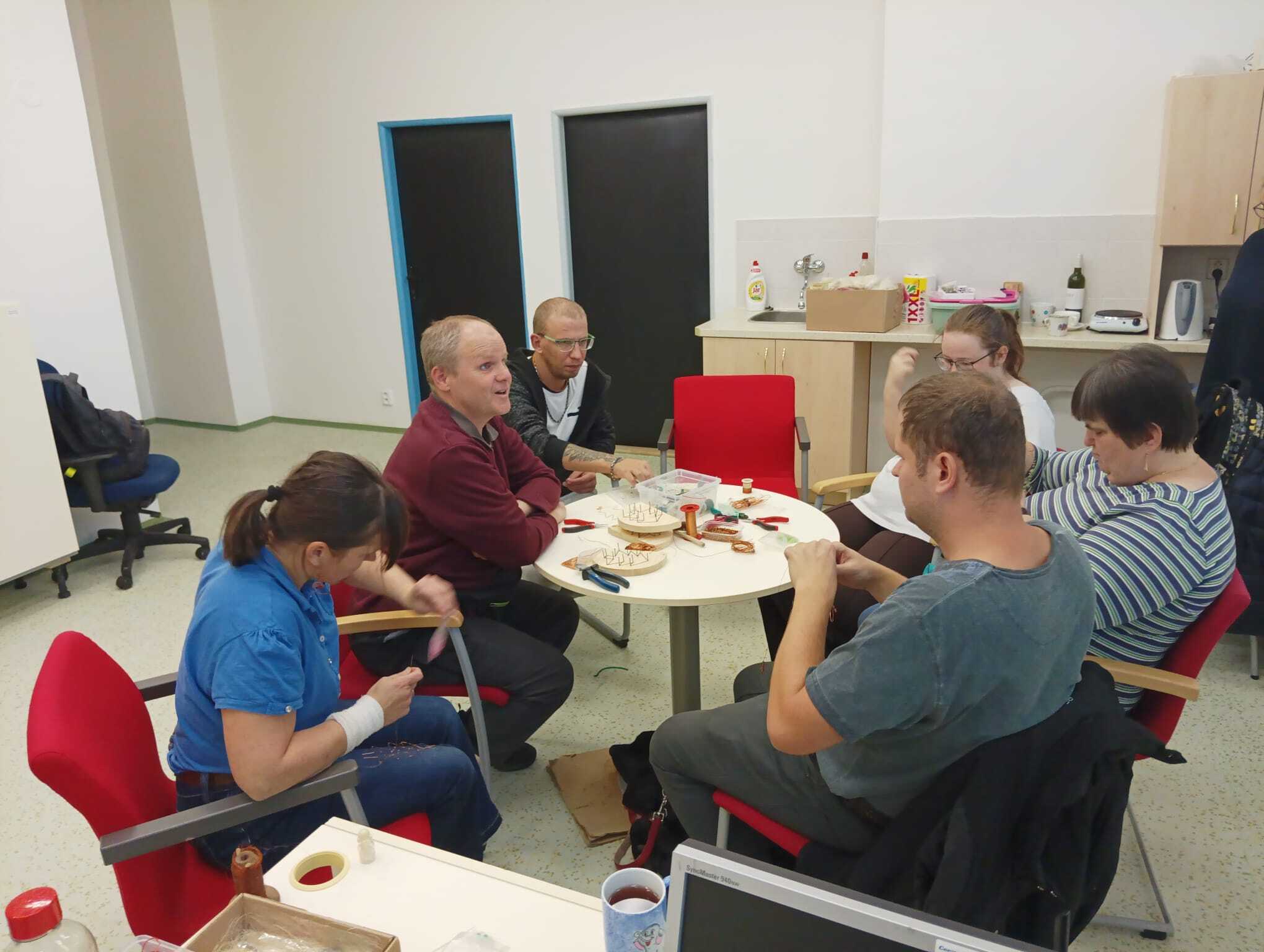 A začínáme tvořit! Velký stůl sice ještě nemáme, ale my si poradíme. 6. 11. se drátkování povedlo.