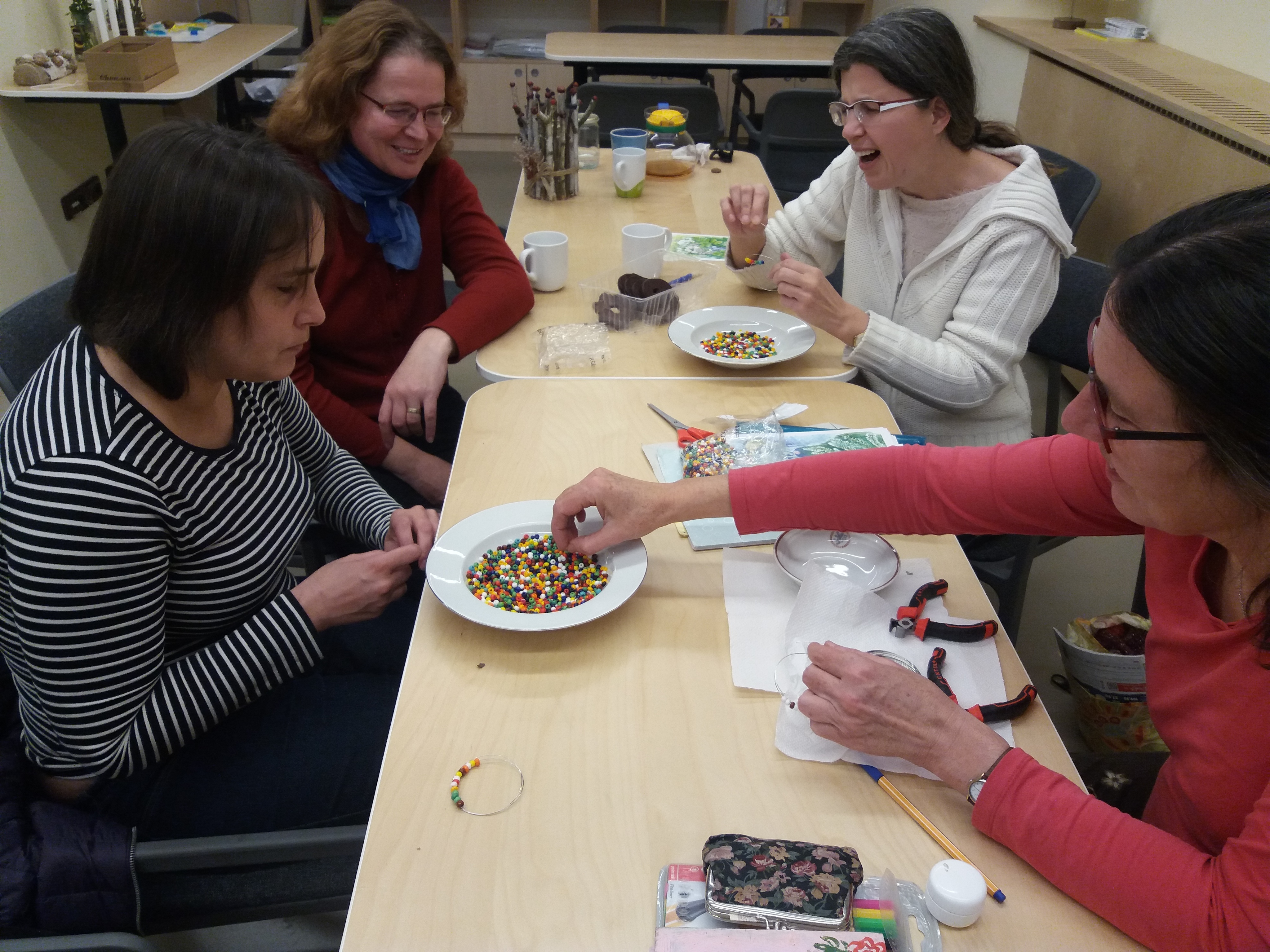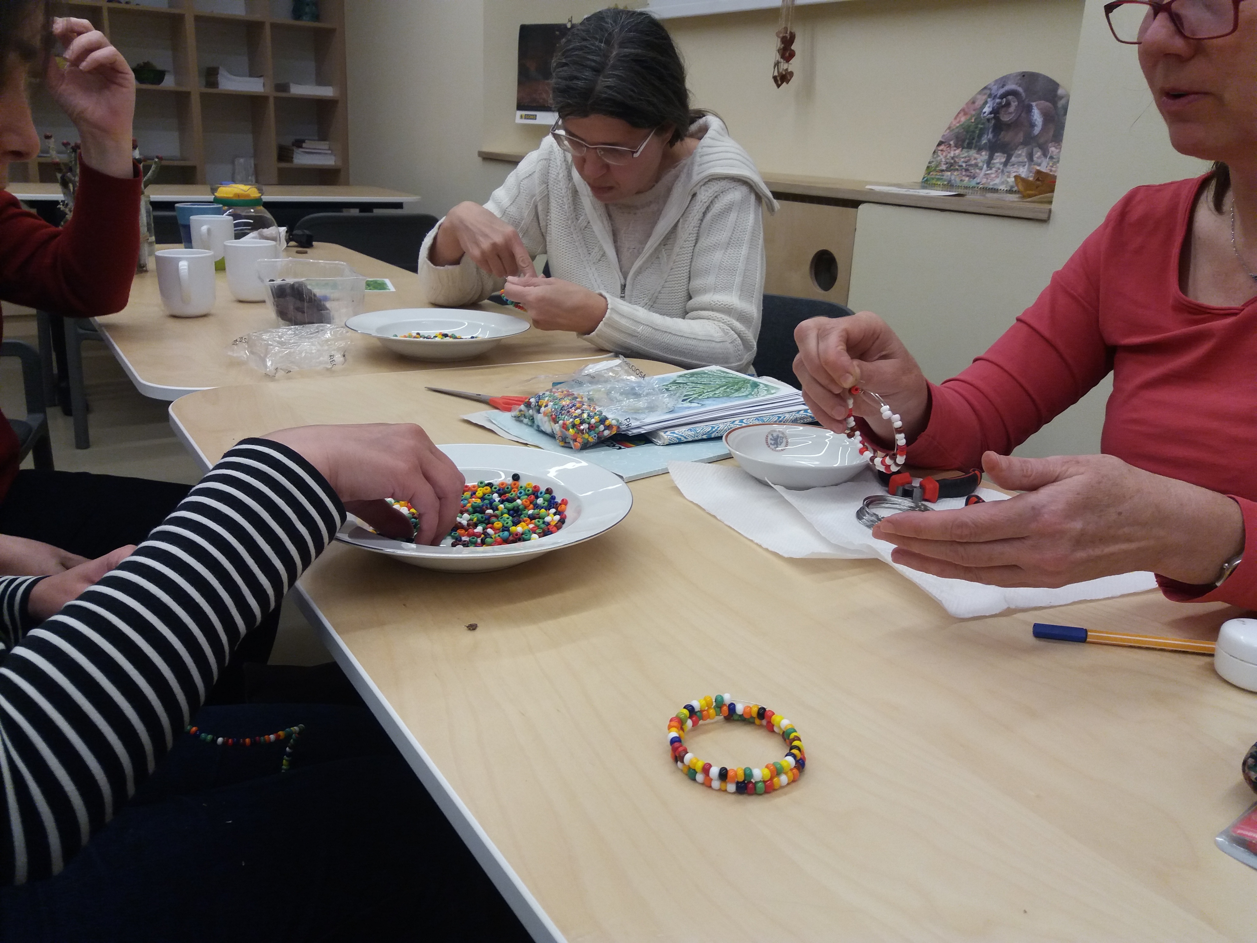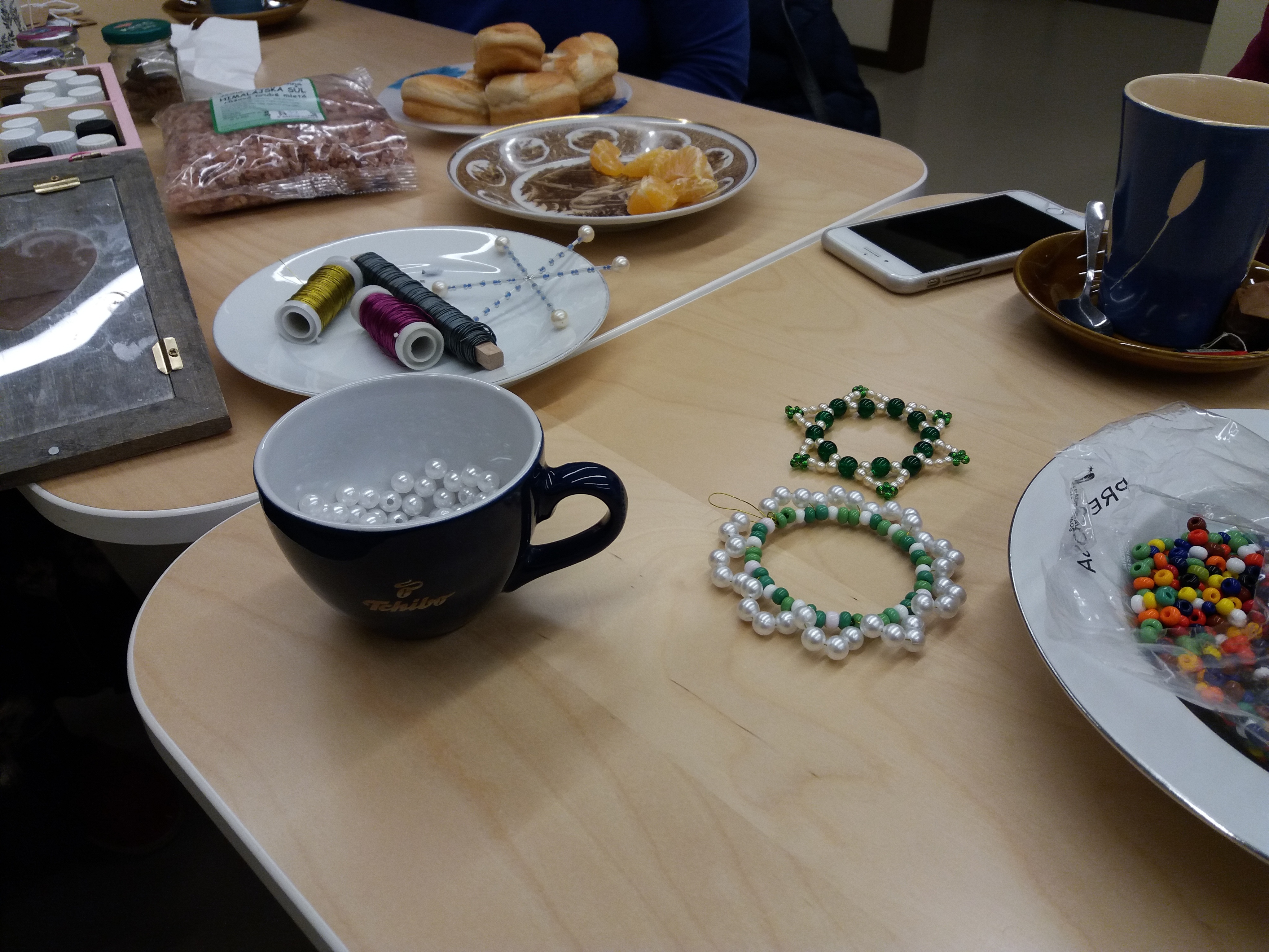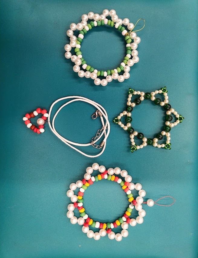 Z perliček různých velikostí a barvených variant jsme si vyrobili, pro nás překvapivě celkem snadno, bižuterní doplněk, který může být zároveň skvělou vánoční ozdobou, interiérovou dekorací, nebo přízdobou k vánočním balíčkům. Použili jsme paměťový drátek a navlékali a navlékali, podle našich představ. Vznikly nám z toho barevné ozdobičky na vánoční stromečky. Děkujeme Praze 5 za podporu nákupu potřebného materiálu ke tvoření.