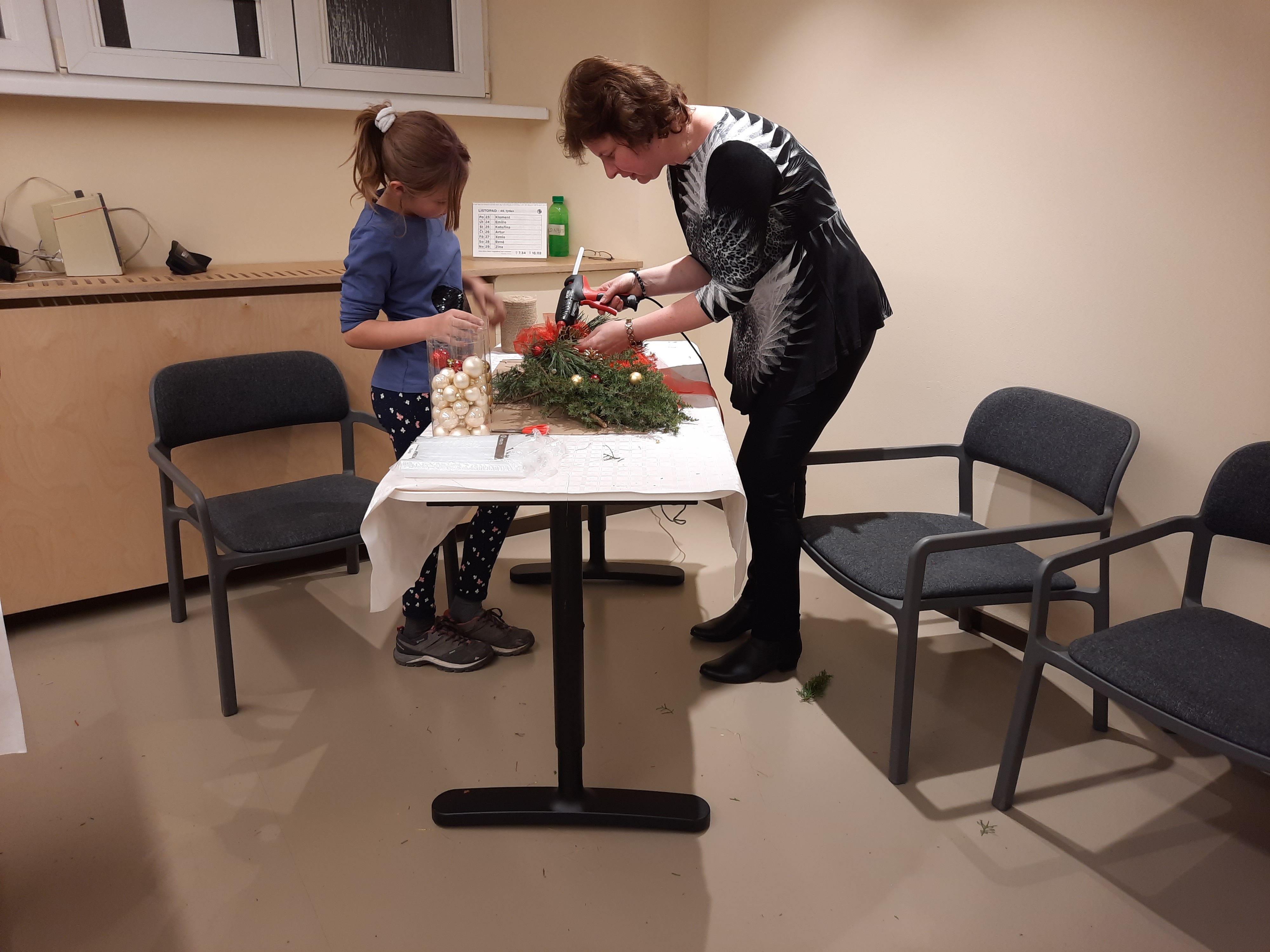 Do Vánoc sice zbývá ještě celý měsíc, ale my jsme se sešli, abychom si sami vytvořili vánoční výzdobu našich obydlí. Tvořivé dílny s Bárou je v našich kruzích pojem, takže se se zájemkyněmi roztrhl pytel. Každá si vytvořila ten nejkrásnější vánoční věnec, nejkrásnější ozdobu na stůl, na zeď, na dveře. Musely být nejkrásnější, protože si je vytvořily sami.