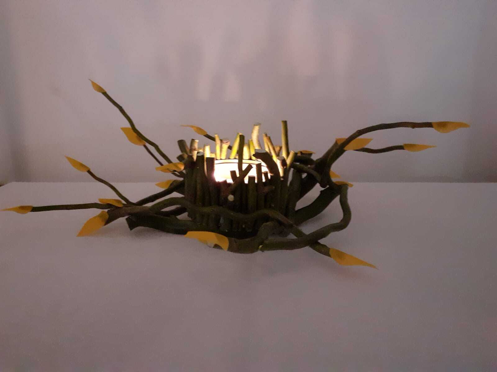 Dny se začínají zkracovat a z polí začíná studeně foukat. Rádi se schoulíme u kamen či krbu. Ale co člověk panelákový a činžákový? Možná si rád zapálí svíčky na vlastnoručně vyrobeném svícnu a teplo ohně alespoň pomyslně načerpá z jejich plamínků. Vyrobíme si fortelné svícny z kusů dřev a přírodnin. Musíme však plameny svíček zabezpečit tak, aby Vaše domácnost nelehla popelem, proto si zavčasu nasbírejte různé malé plechovky, skleničky, či jiné podložky z nehořlavých materiálů, které šikovně umístíme do dekorací. Počet přítomných: 3 – 4