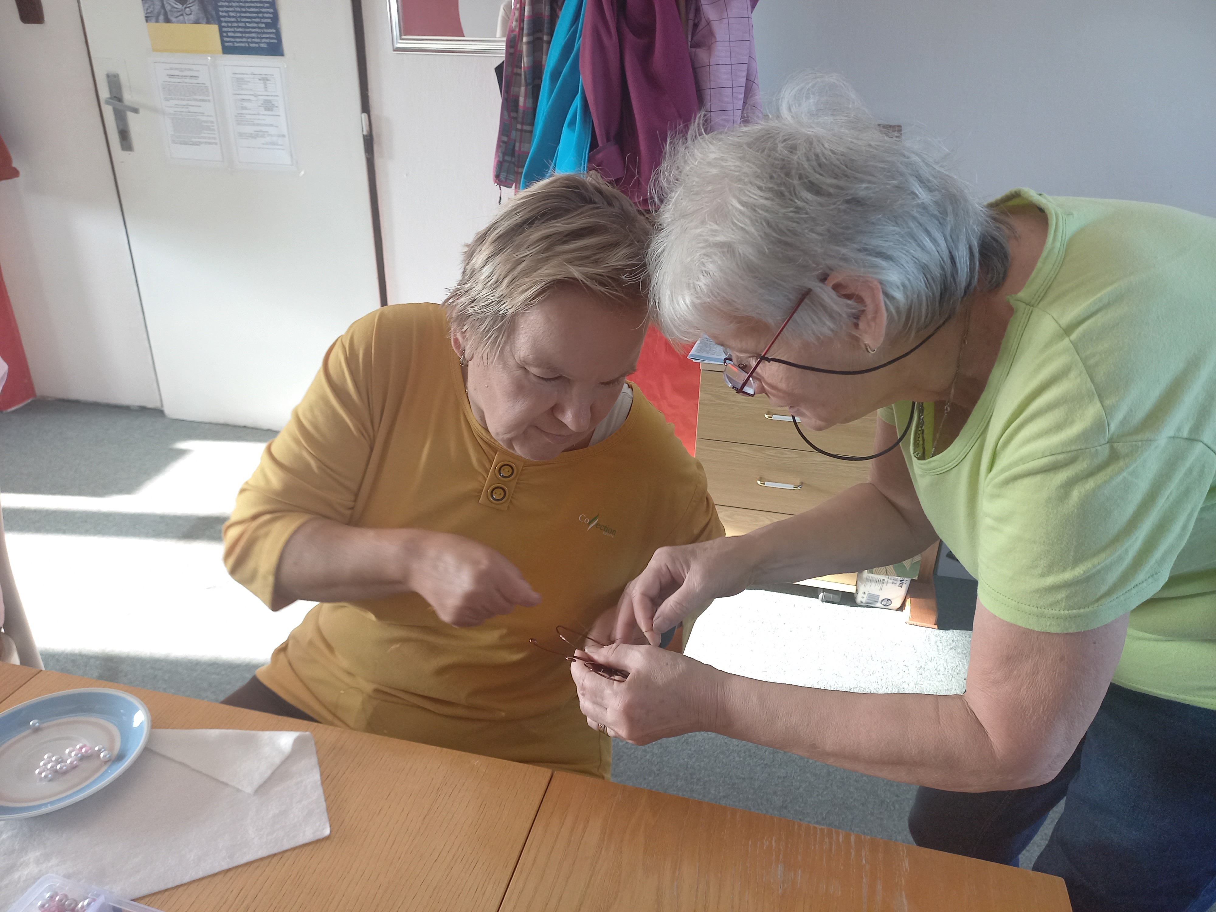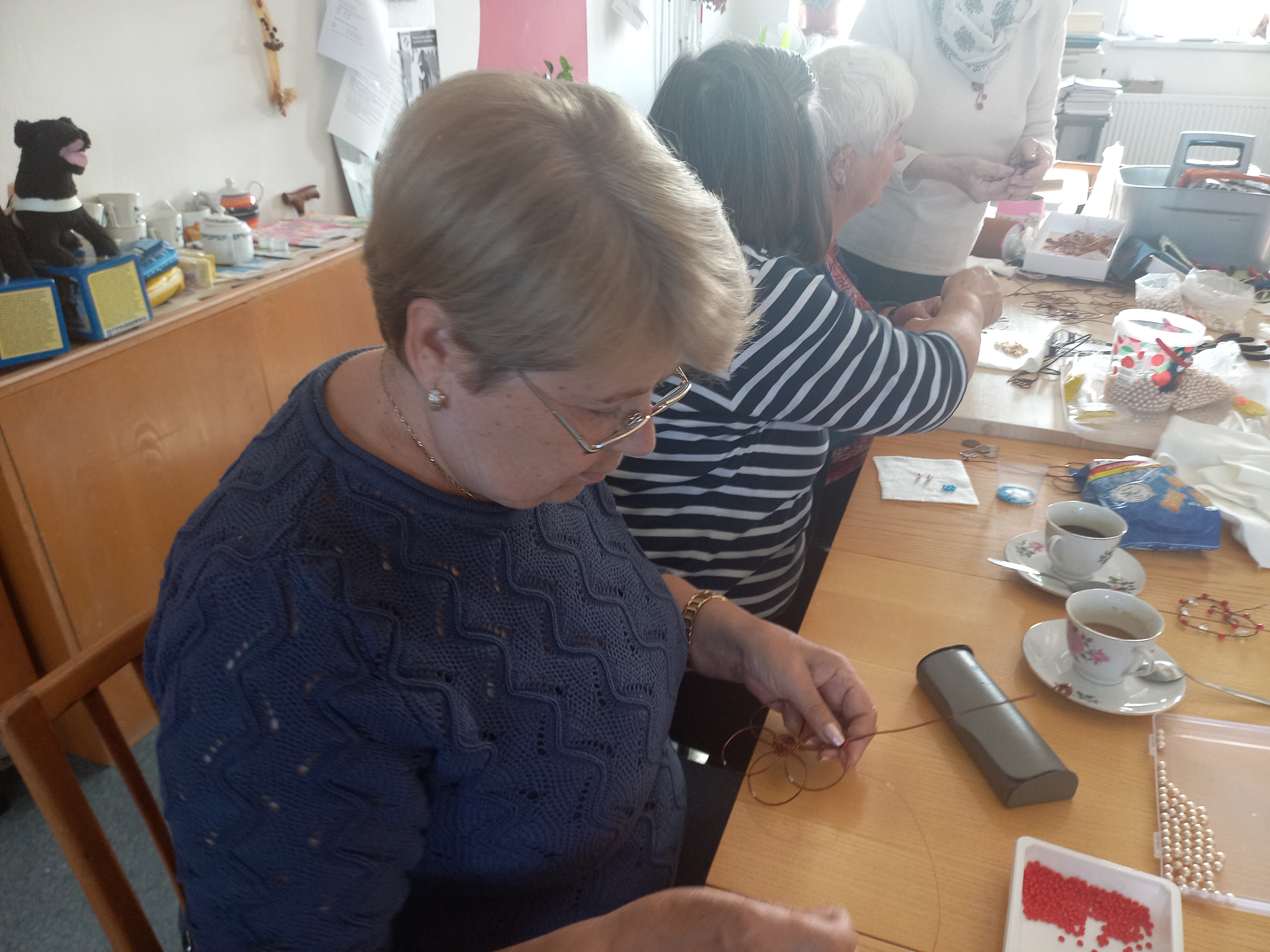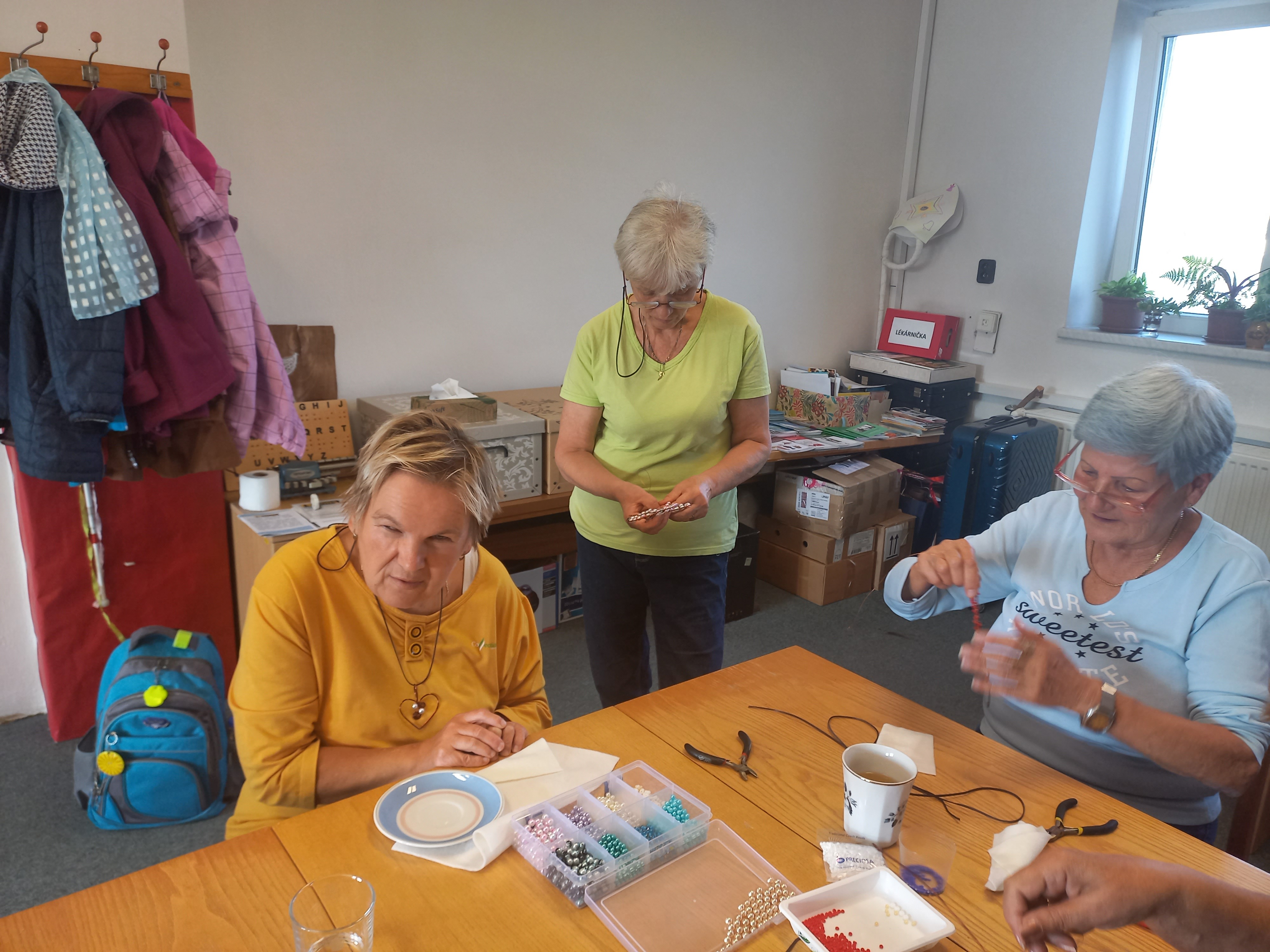 Tentokrát šla většina z nás na dílničky nejen s radostí a se zvědavostí, co si vyrobíme, ale také trochu se strachem, jestli to zvládneme. Přece jen drátkování a práce s korálky je pro našinec trochu náročnější. Ale strach, jak jsme se poté přesvědčili, nebyl vůbec na místě. Díky našim lektorkám (které měly vše opět dokonale připravené) nám pod rukama vznikaly krásné věci. Byla to zkouška nejen naší manuální zručnosti ale především trpělivosti. Ale soustředění, delší čas na práci, často vysypané korálky – to vše nám přineslo radost z hotových krásných dekorací.
