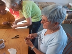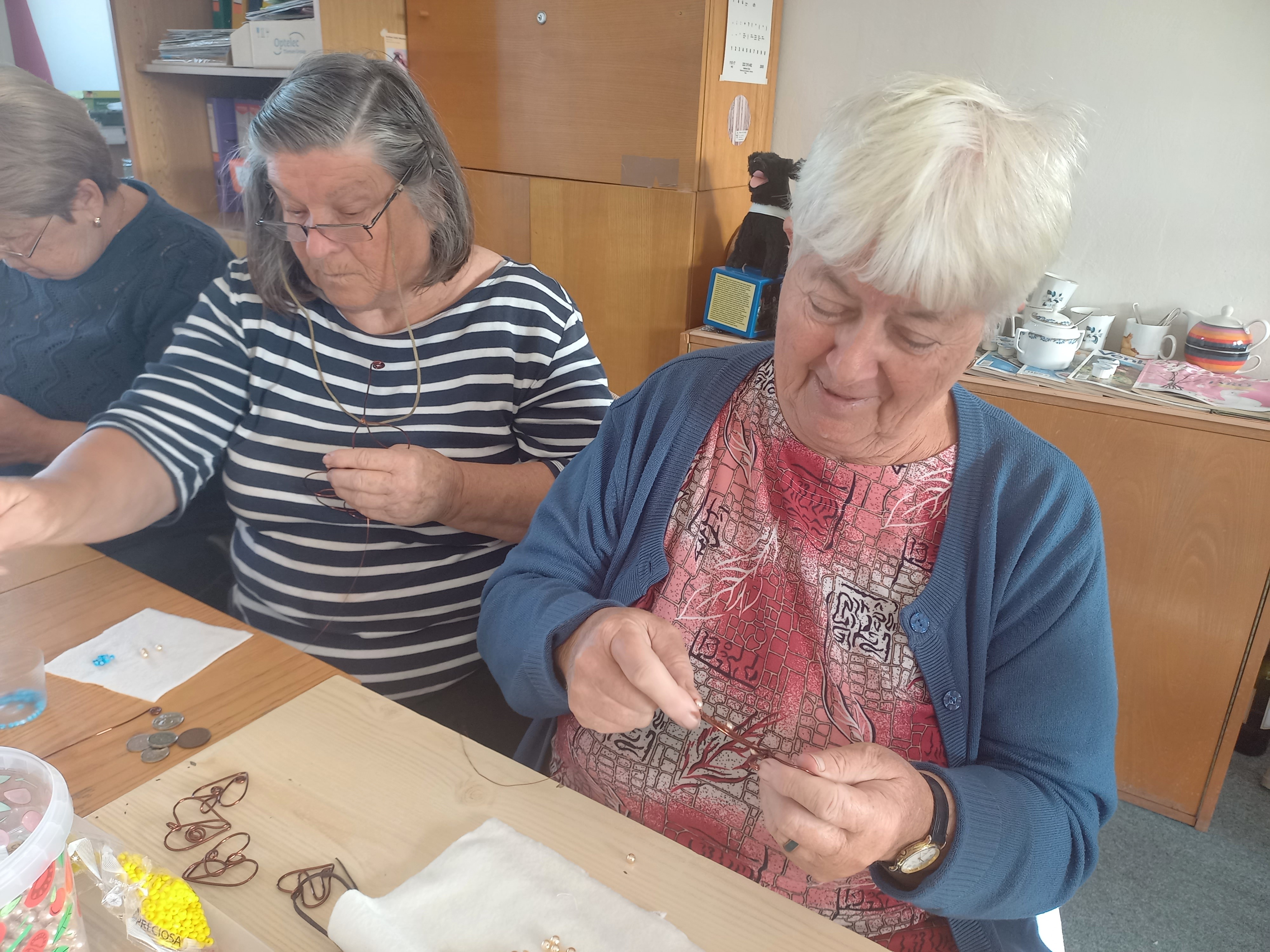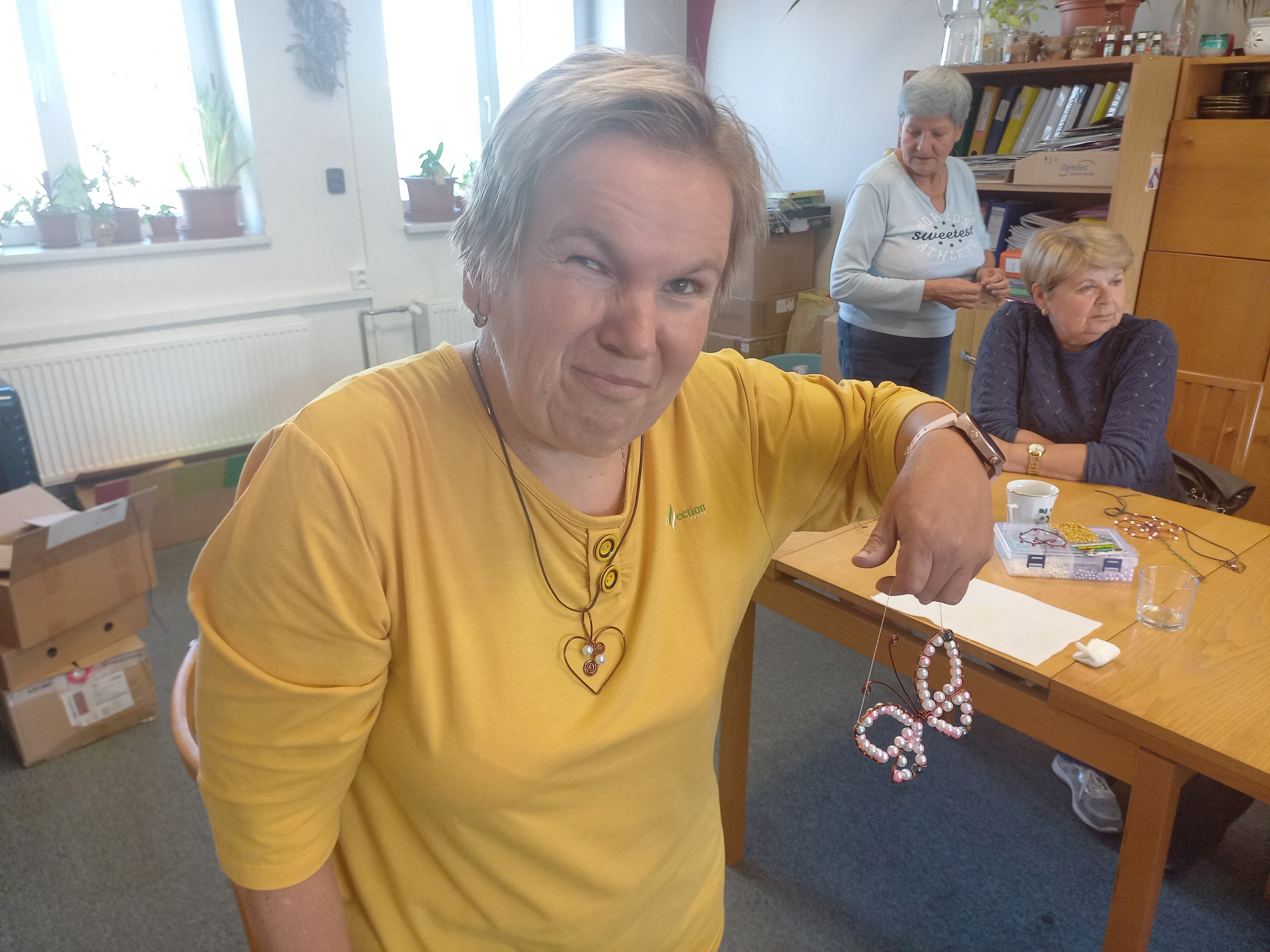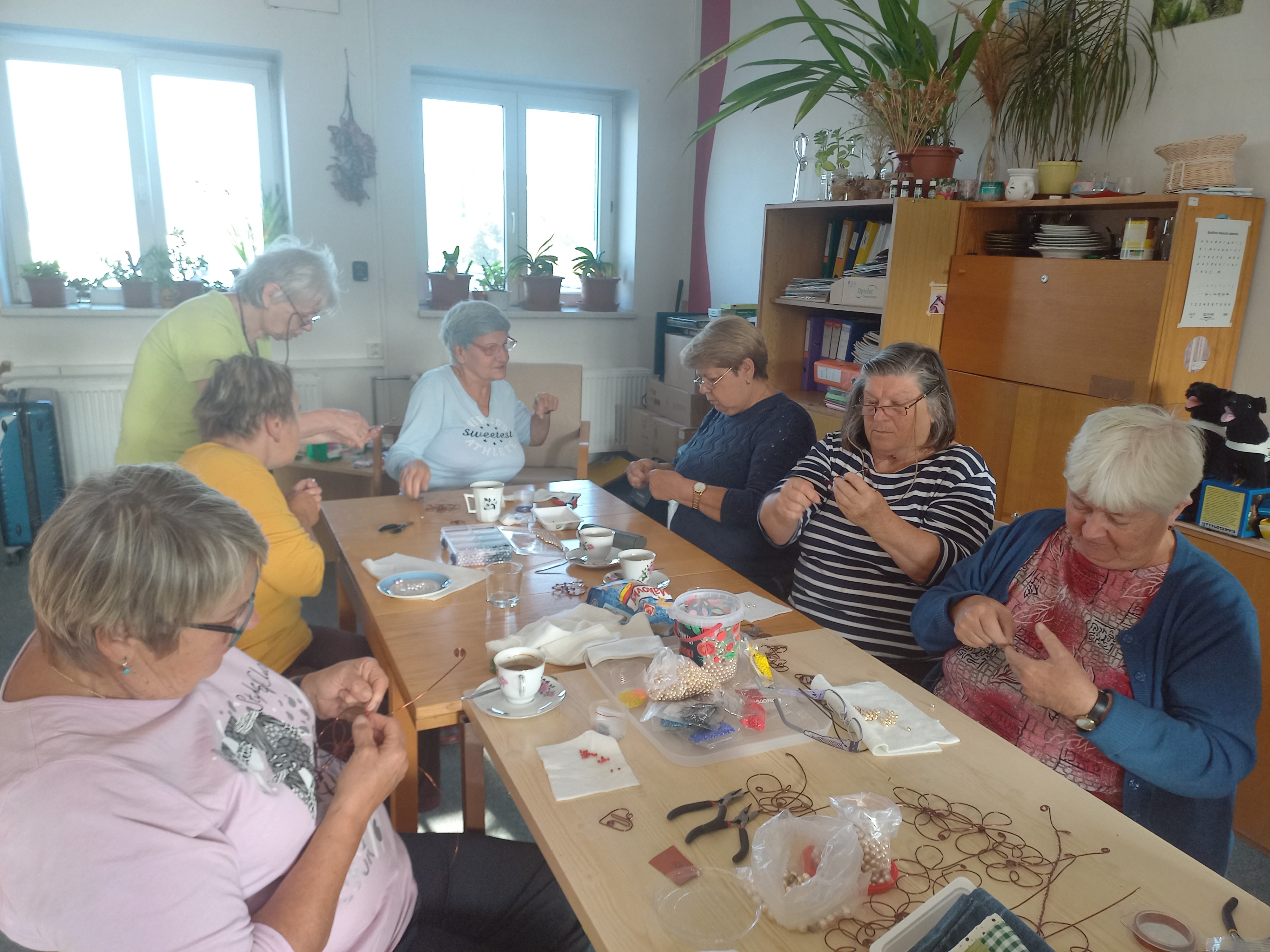Tentokrát šla většina z nás na dílničky nejen s radostí a se zvědavostí, co si vyrobíme, ale také trochu se strachem, jestli to zvládneme. Přece jen drátkování a práce s korálky je pro našinec trochu náročnější. Ale strach, jak jsme se poté přesvědčili, nebyl vůbec na místě. Díky našim lektorkám (které měly vše opět dokonale připravené) nám pod rukama vznikaly krásné věci. Byla to zkouška nejen naší manuální zručnosti ale především trpělivosti. Ale soustředění, delší čas na práci, často vysypané korálky – to vše nám přineslo radost z hotových krásných dekorací.