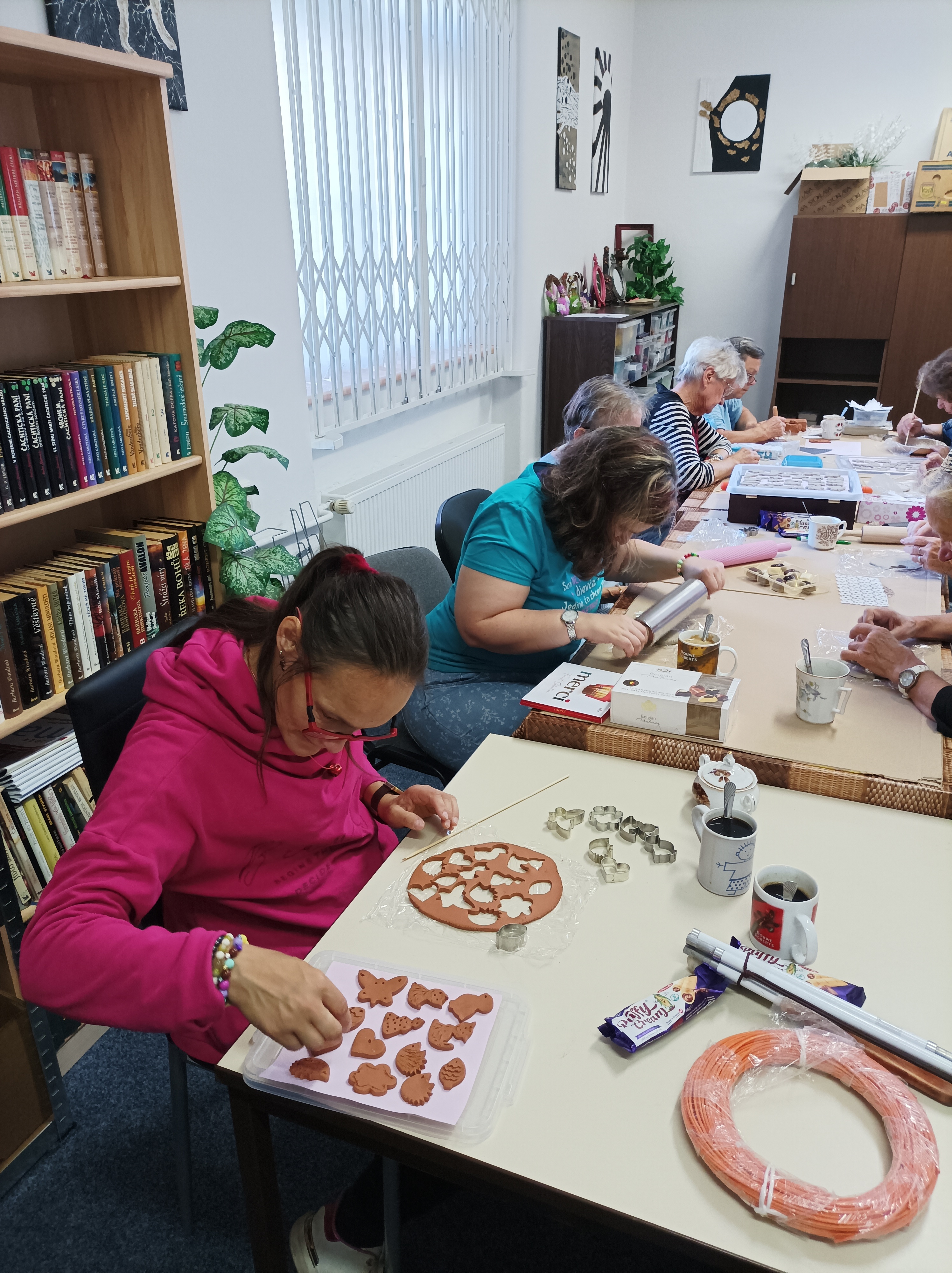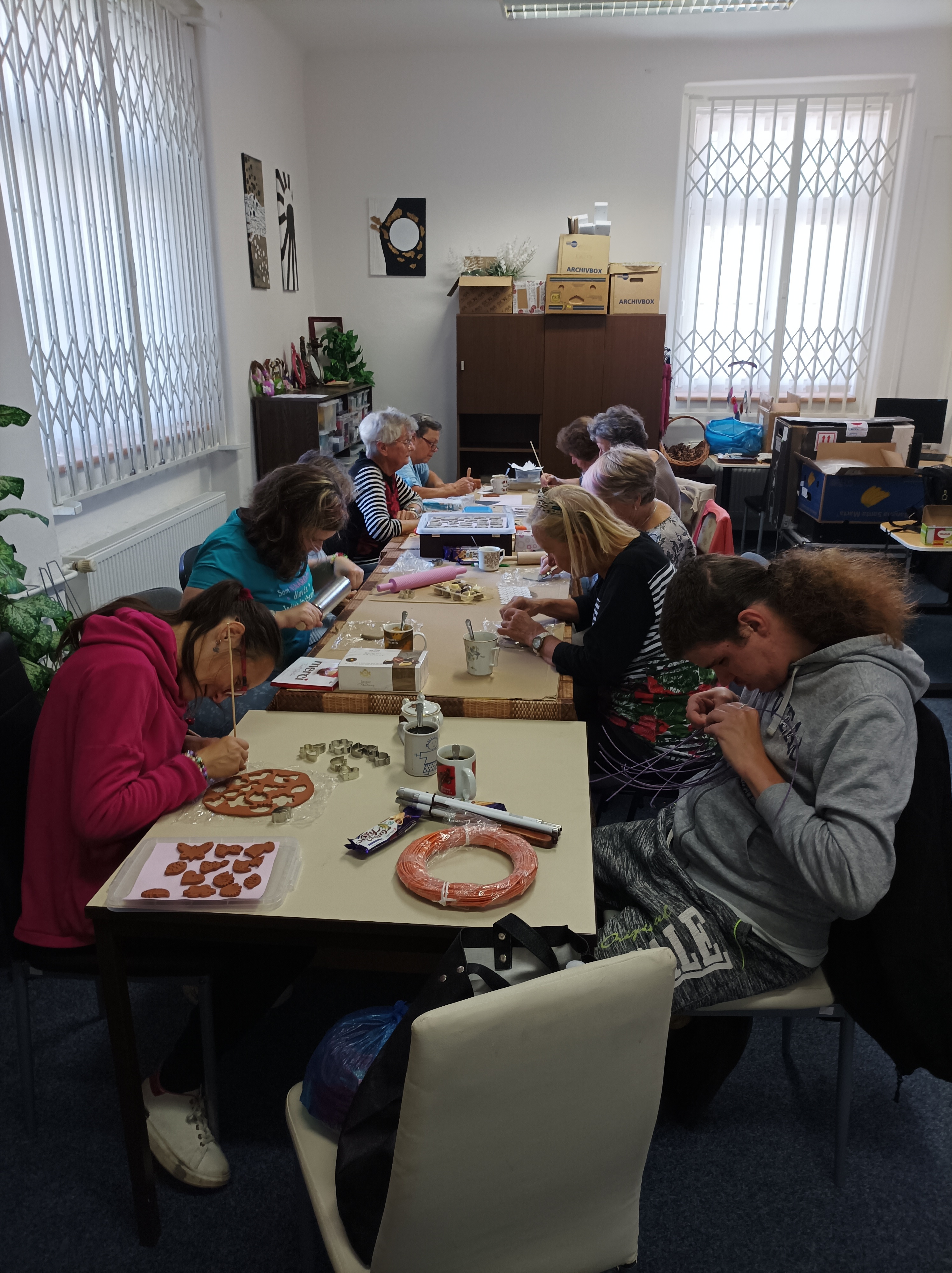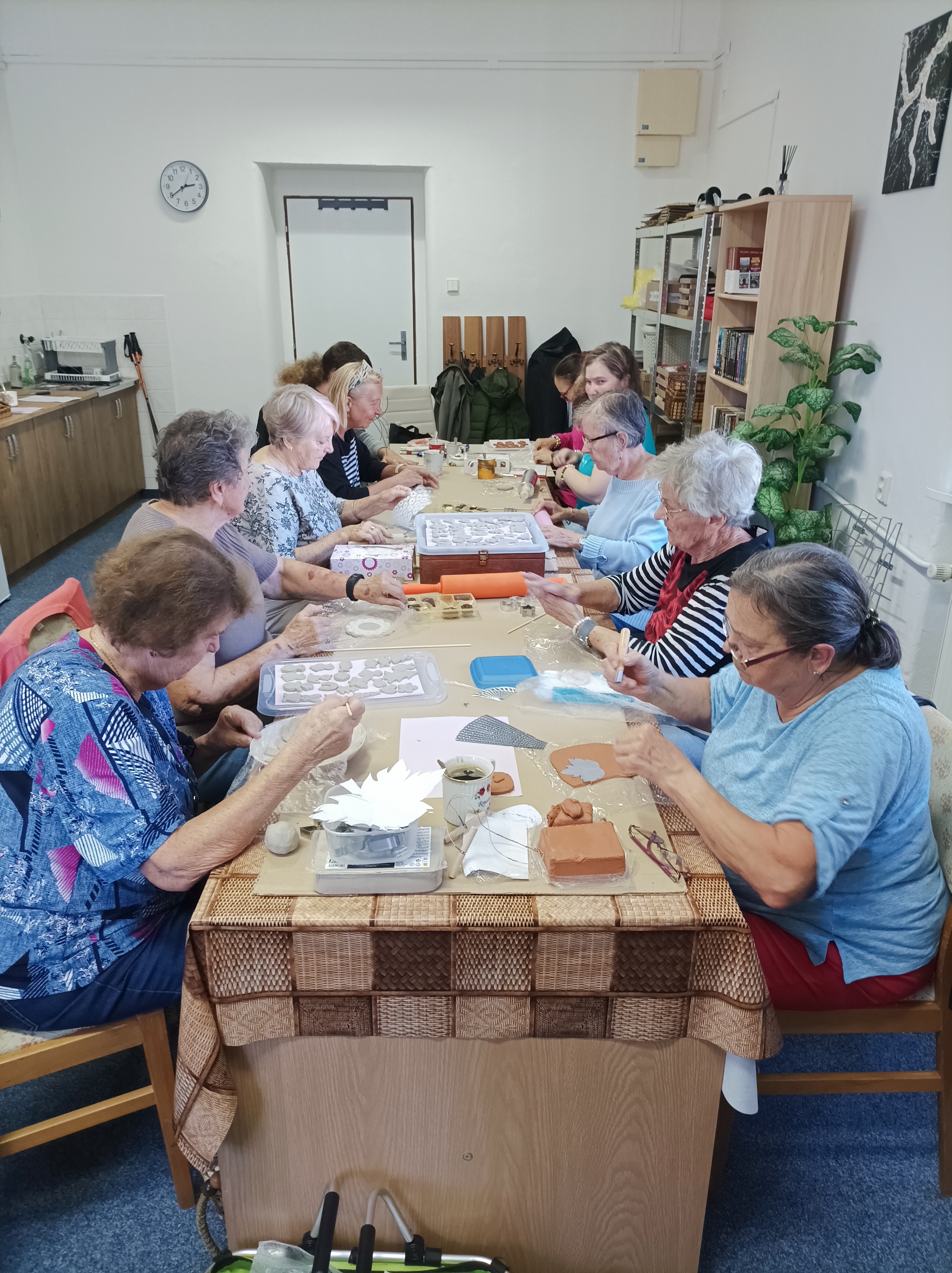 Atmosféra byla od samého začátku velmi přátelská a tvůrčí. Účastníci společně tvořili keramické ozdoby, přívěsky a drobné dekorace, které si sami vykrajovali, zdobili a tvarovali. Vznikly rozmanité motivy – květiny, zvířátka, listy či symboly pro štěstí. Díky fantazii a pečlivosti každého z nich se na stolech brzy objevila celá řada originálních výrobků.