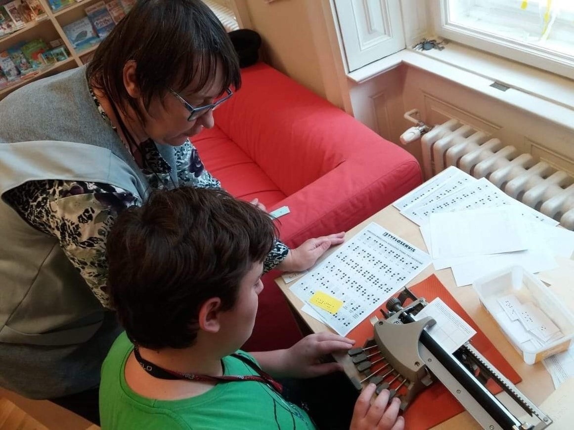 Uměli byste rozluštit název knížky, napsaný bodovým písmem, určit autora a pak ještě správně knížku vyhledat v regále? Dali byste dohromady slavné literární dvojice a dokázali byste jejich jména napsat na slepeckém stroji? A co rozluštit název předmětu a ten pak po hmatu vyhledat v "kouzelném pytlíčku"?