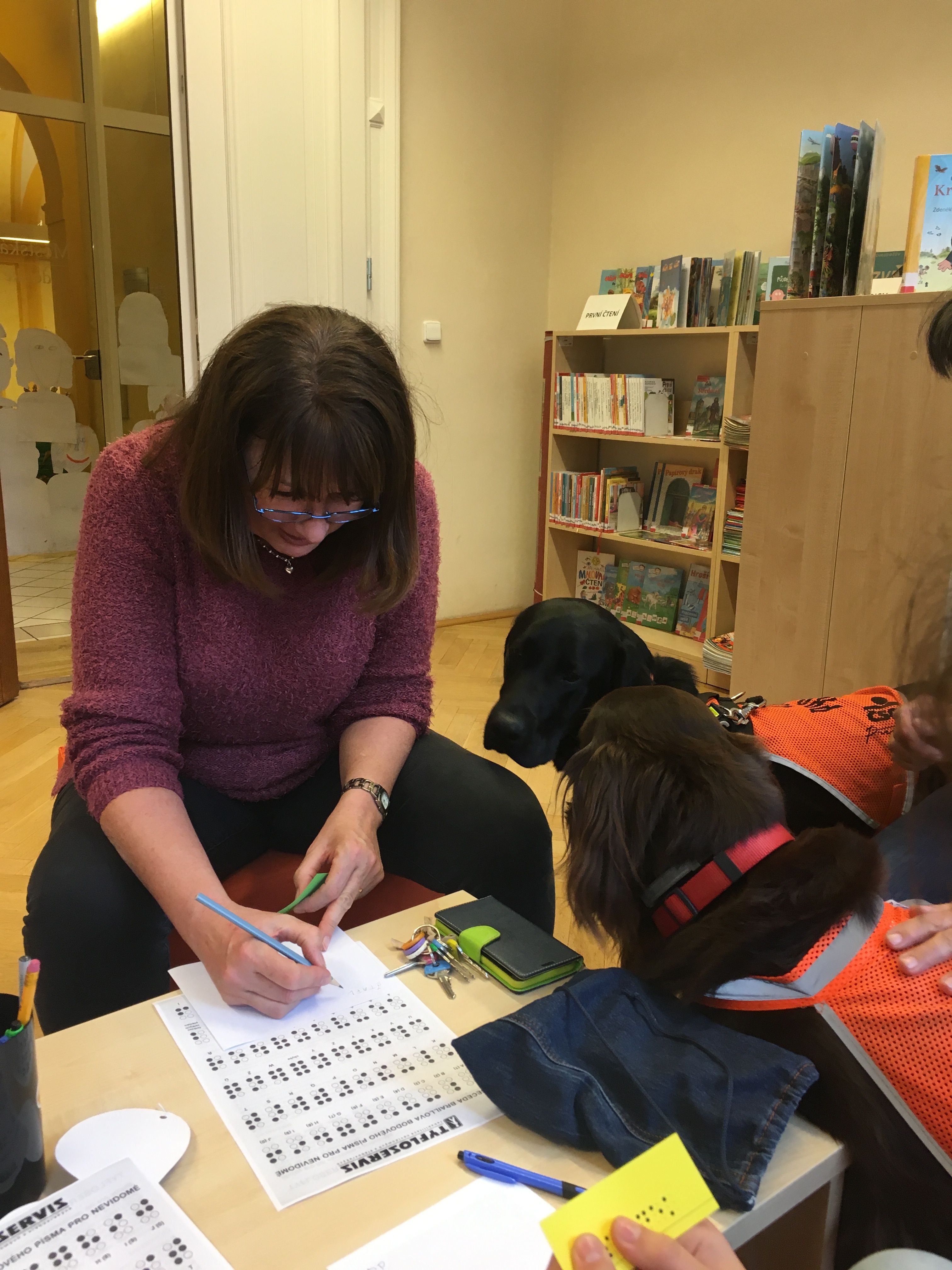 Ve vedlejší místnosti už čekaly úkoly, týkající se jak života nevidomých, tak čtenářských dovedností.