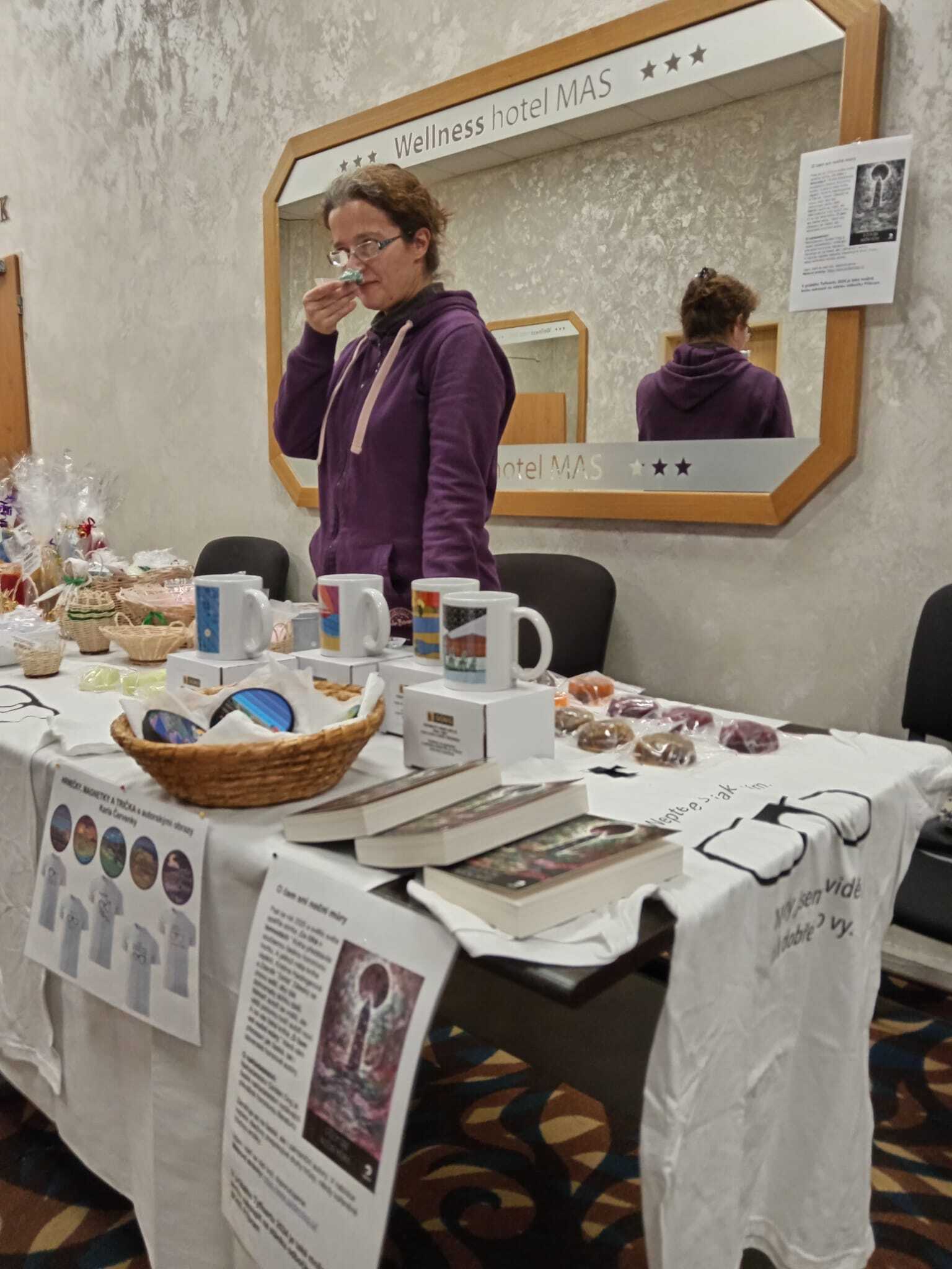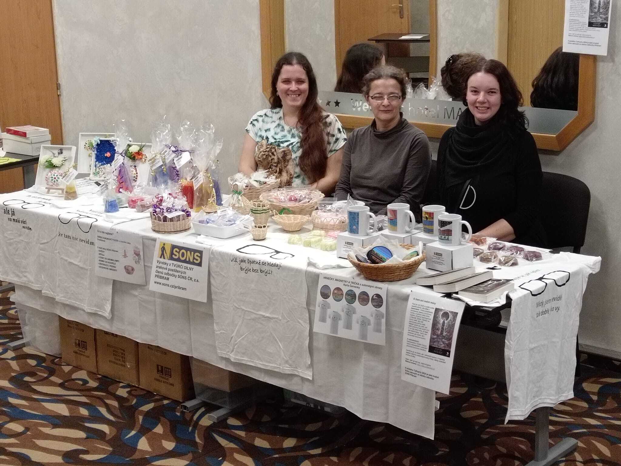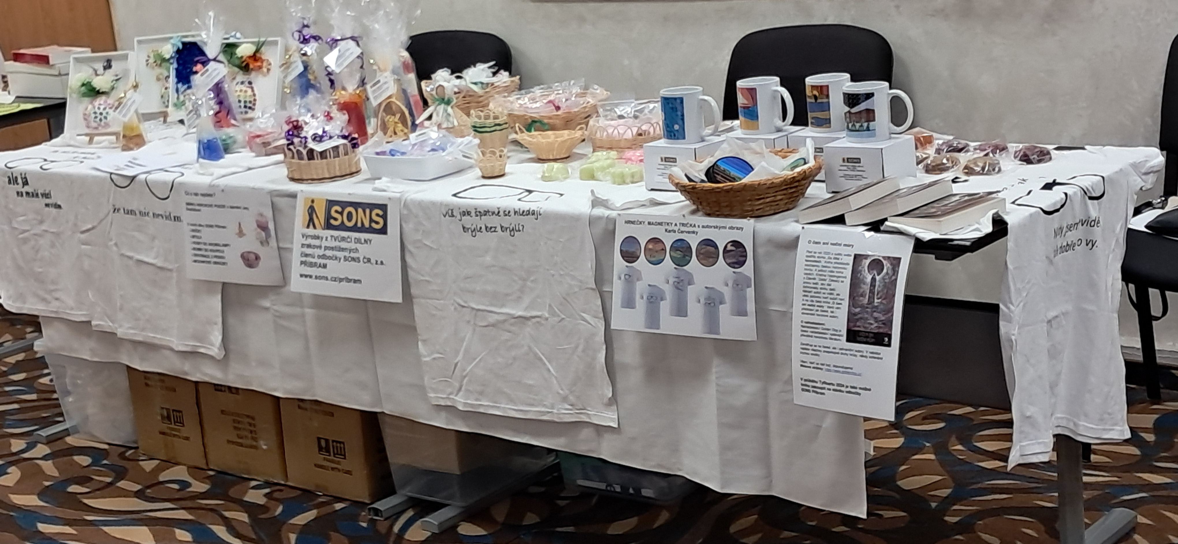 My jsme dorazily s doslova několika sty výrobky, které jsme předváděly hned od pátečního odpoledne až do sobotních večerních hodin. Naše široká nabídka zahrnovala magnetky, hrnečky, trička, sbírku básní, do které přispěla jedna z našich zaměstnankyň. Nechyběly svíčky, vonné vosky do aroma lamp, koupelové soli, bomby do koupele, výrobky z mýdlové hmoty, nebo hmatové obrázky a košíčky a ptačí budky z pedigu.