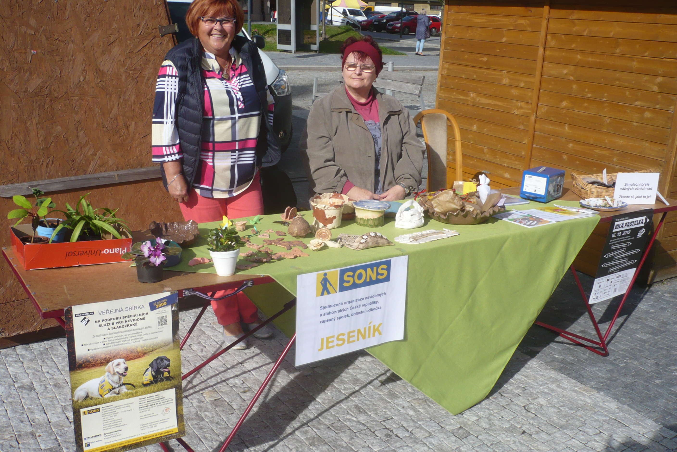 Září jsme zahájili klubem vaření, ve kterém jsme si připravili letní lečo. S krájením, dušením i jezením pomohli téměř všichni, a moc nám chutnalo. V klubu křeslo pro hosta jsme měli možnost shlédnout fotografie z výpravy do překrásných italských Dolomit. V klubu tvoření jsme měli původně v úmyslu přesazovat květiny, ale přednost jsme dali utkání ve zvukové střelbě, společné hře Qardo a povídání o národním Qardo turnaji v Praze s naší stříbrnou medailistkou. Je vidět, že pravidelné hraní této hry na klubech přineslo své ovoce. Na klubu trénování paměti jsme vyzkoušeli novinky od trenéra paměti pana Václava Posoldy. Úkolem bylo zapamatovat si 50 obrázků a poznat, když se v nové sérii objevil jeden nový. A skutečně ho většina lidí poznala. I další test dvojic obrázků se změnou jsme hravě zvládli. Objevili jsme, že paměť se dá trénovat opravdu nezvyklými způsoby. Ve čtvrtek 12. 9. v podvečer se někteří členové vypravili do kina na českou komedii Teroristka, kdy měli možnost využít slevu na Seniorpasy. V pátek jsme prezentovali odbočkové služby na farmářských trzích v Jeseníku. Na konci září jsme se vypravili do solné jeskyně a užili si pohodový relax, i když venku zrovna hezky nebylo.