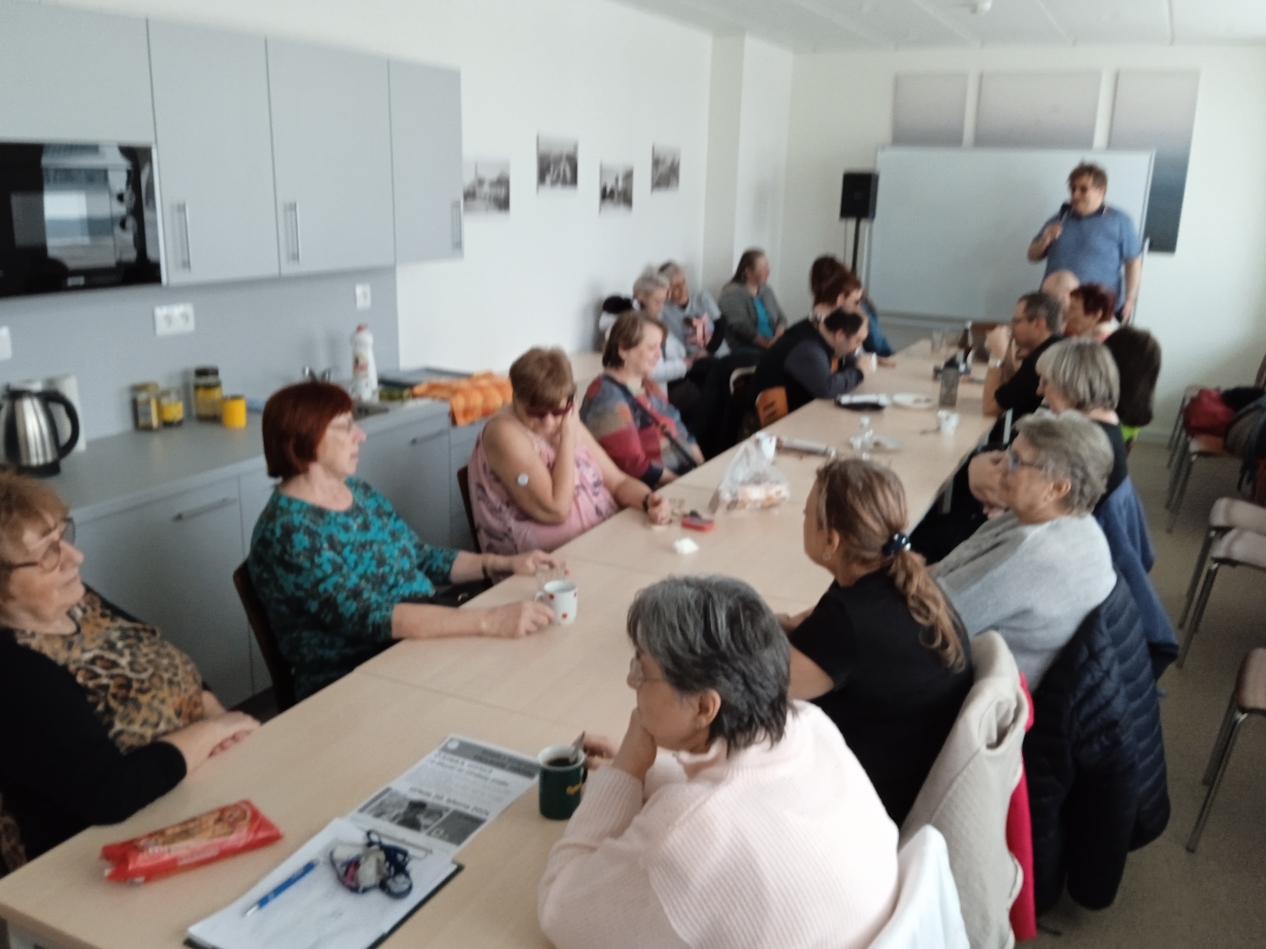 Na některé věci se prý vyplatí počkat. V tomto případě se to naplnilo vrchovatě. Po několika měsíčním domlouvání k nám zavítal zpěvák a IT specialista Radek Žalud se svým kolegou Janem Posetem. Zpočátku nám představovali svoji činnost na poli kompenzačních pomůcek. Dozvěděli jsme se, že jsou prodejci telefonních přístrojů na bázi IOS, Android anebo náš známý Blind Shell. Dále, že se zabývají hlasovými syntézami a vyvíjí nový hlas do našich přístrojů, který se bude velmi podobat tomu Radkovu, anebo také hlasu Jirky Holzingera z Českých Budějovic. Dále se rozvíjí nový odečítač pro mobilní telefony a bude se jmenovat Corvus. Tento odečítač umožňuje jednodušší ovládání chytrých telefonů. Pro ty, kteří si nepotrpí na různé vychytávky od Blind Shellu, tak i pro ně existuje řešení – většina funkcí se vymaže a telefon slouží pouze tak, jak si uživatel přeje. A jaký je rozdíl mezi jejich firmou a ostatními? Dle sdělení Radka, jim jde především o individuální přístup a hlavně nenechat uživatele, po prodeji pomůcky, na holičkách. Každý potřebuje po koupi pomůcky zaučit, ale zdaleka ne každá firma Vám s tím pomůže. Na závěr byl představen telefon od firmy Motorola, kde poměr cena/výkon/obslužnost se zdá být na velmi dobré úrovni.