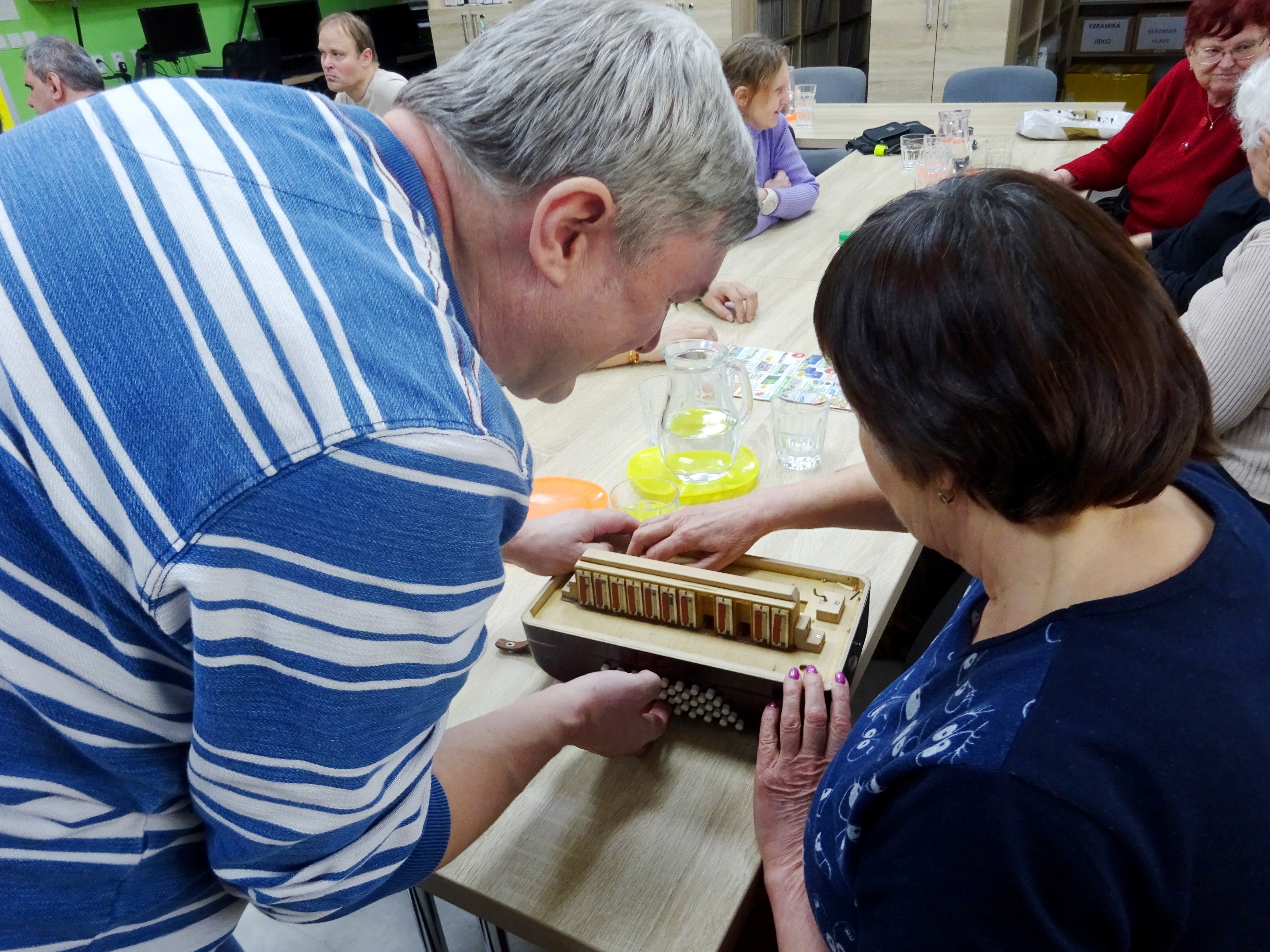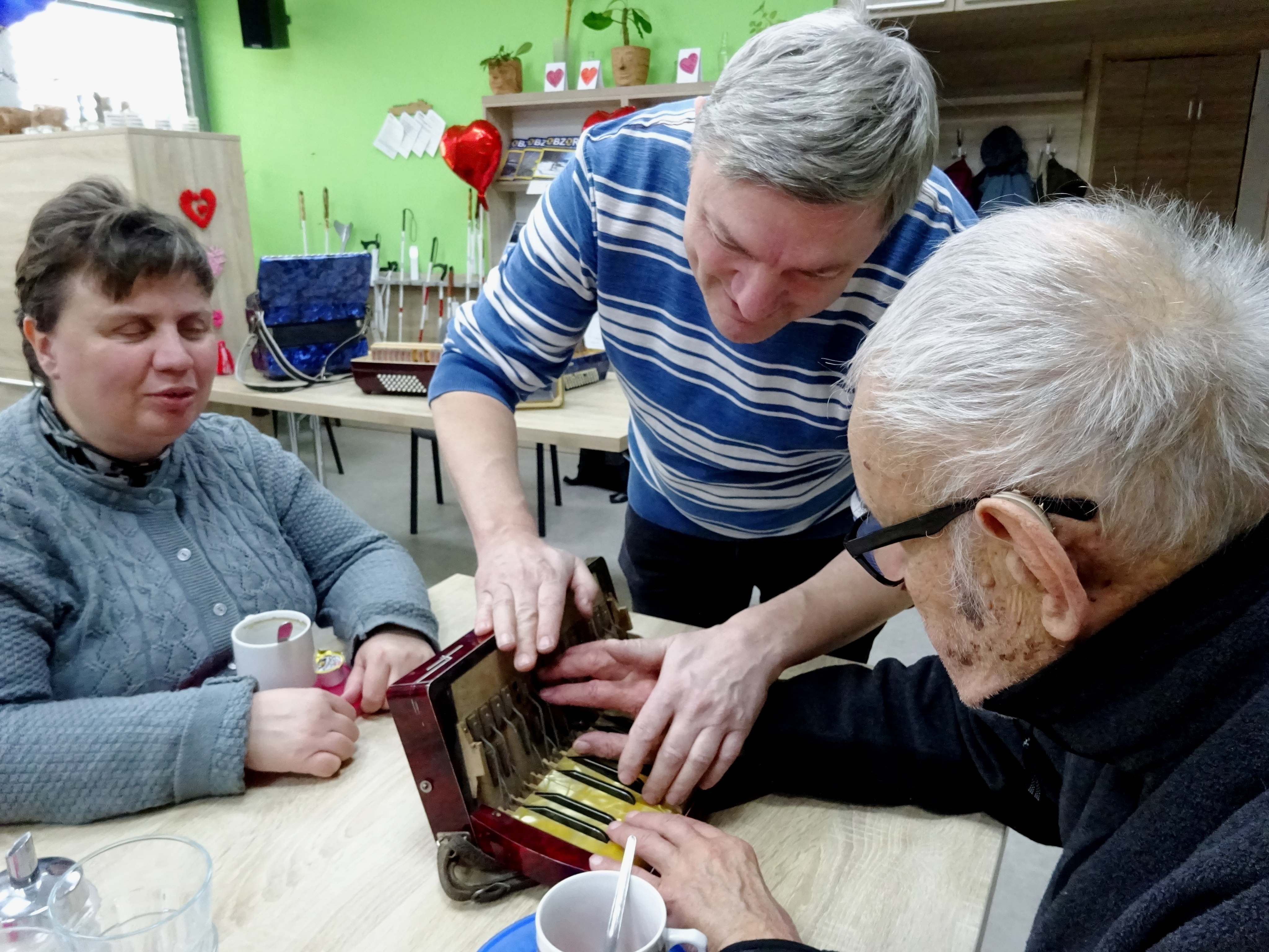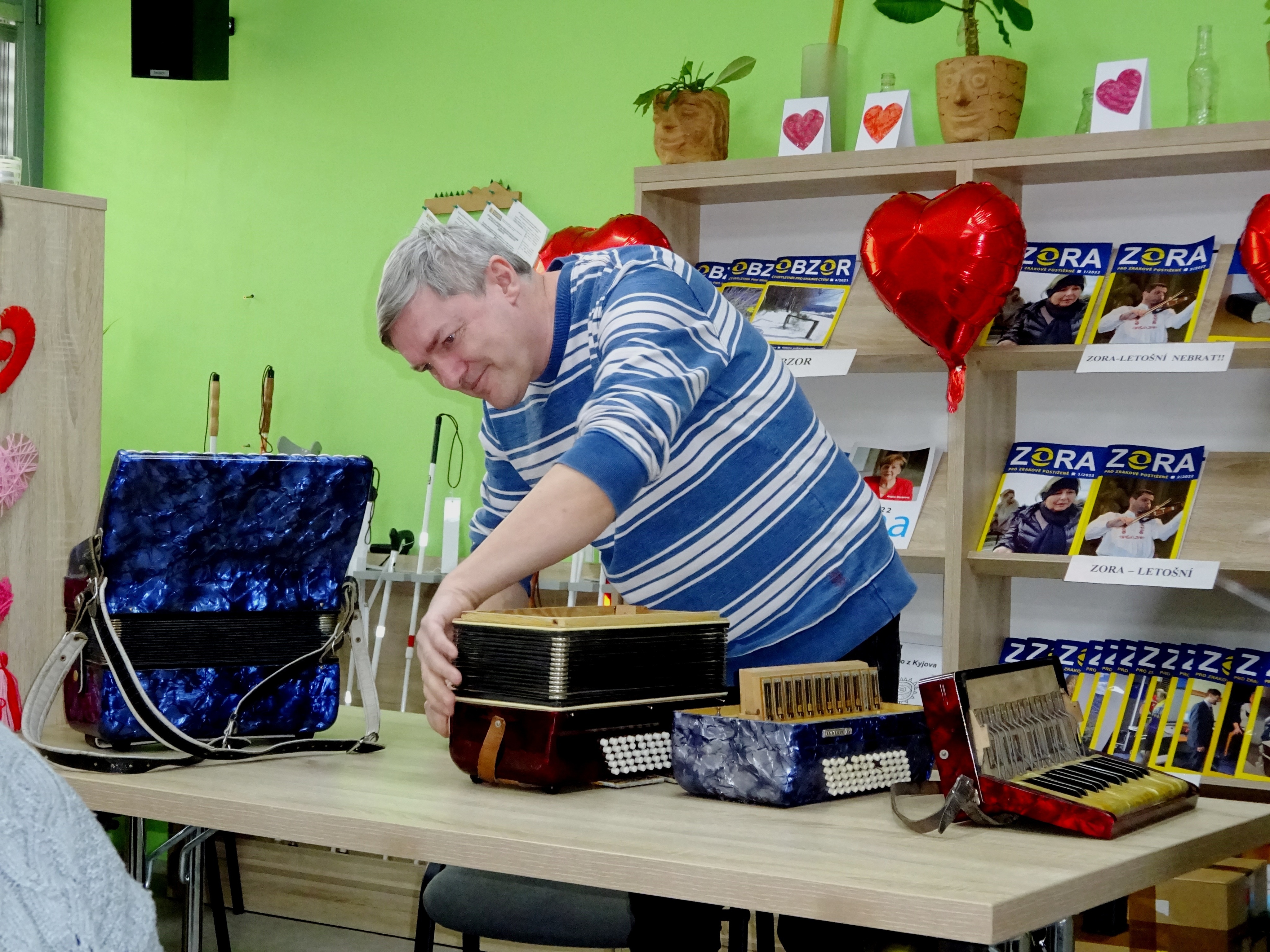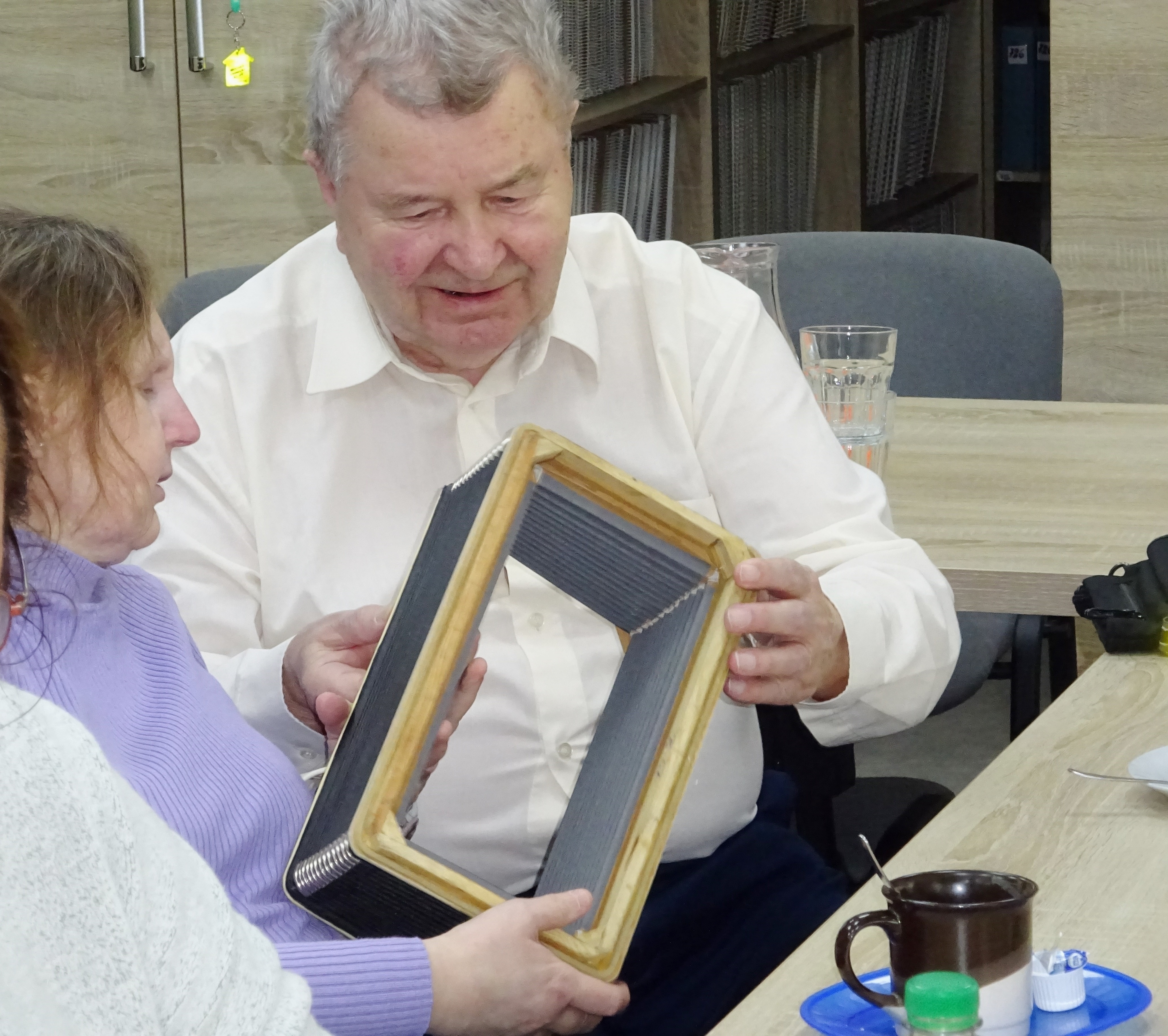 Do naši klubovny přivezl nejen tu harmoniku, se kterou doprovází pěvecký sbor Pastelky, ale také jednotlivě rozebrané díly dalších nástrojů. Nebyl by to ten správný muzikant, aby v úvodu nespustil jednu „kyjovskou“ písničku a nerozezpíval všechny přítomné.