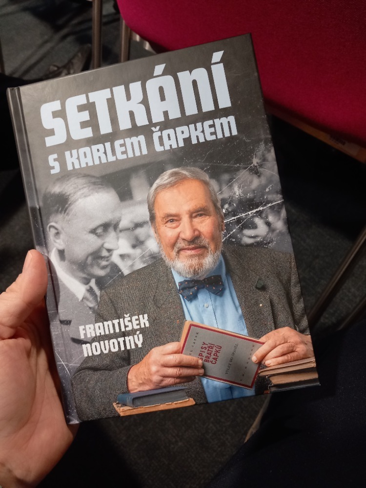 Díky Markétě Gögeové, která dlouho očekávané odpolední setkání zorganizovala, mohlo sedmnáct členů naší odbočky zaujmout místa v prvních řadách. Na stolečku před pódiem byly vyrovnány knížky, ladila se technika a František se srdečně a s úsměvem vítal s přicházejícími. Vždyť má v Havlíčkově Brodě mnoho přátel, čtenářů a posluchačů, které jeho laskavá slova vždy potěší. František je skvělý vypravěč a se slovíčky si velmi dobře ví rady. Humornými vzpomínkami na své přátele Luďka Munzara, Miroslava Horníčka, Karla Zicha, Františka Nepila, Adolfa Borna a další osobnosti našeho uměleckého života každou chvíli vyvolal spontánní a upřímný smích publika. Zároveň bylo zřejmé, jak si těchto přátel vážil a měl je rád, protože všichni to byli úžasní a velmi moudří lidé. Hovořil o spolupráci s Luďkem Munzarem na mnoha rozhlasových pořadech i o knize fiktivních rozhovorů s Karlem Čapkem. Citace z Čapkových esejů, úvah, komentářů a fejetonů jsou odpověďmi na otázky, které trápily lidstvo kdysi a mají svou platnost i v dnešní době. S dojetím se František vrátil k osobě svého dobrého kamaráda Karla Zicha a jeho tragickému odchodu. Vzpomínal na dlouholeté působení coby textař písní Spirituál kvintetu, při jehož koncertech měl občas nelehkou úlohu. Lidé v publiku zadali několik slov - většinou v poezii ne zcela běžných - a František jakožto pohotový básník během dvou písniček napsal báseň, do které uložená slova zakomponoval. A že lze napsat smysluplné a krásné verše i na slova, jako například podvlékačky, strž, jitrnice a další takové lahůdky, to nám sám autor na místě doložil přečtením některých z těchto památných básniček, jejich sbírka vyšla nedávno knižně. Během programu jsme si vyslechli tři písničky, které otextoval. Mezi hosty v sále seděla i Jana Vejsadová, kterou často v našich článcích zmiňujeme, a která patří mezi naše věrné přátele a podporovatele. Její spolupráce s Františkem Novotným započala při jednom z jeho prvních vystoupení v našem městě a trvala mnoho let. Poezie a trénování paměti na první pohled spolu možná moc společného nemají, ale tihle dva lidé vytvořili báječnou dvojku, která přivážela radost, hladila duše a bystřila rozum v nespočtu měst a městeček v celé naší vlasti. Děkujeme, Jano a Františku ...