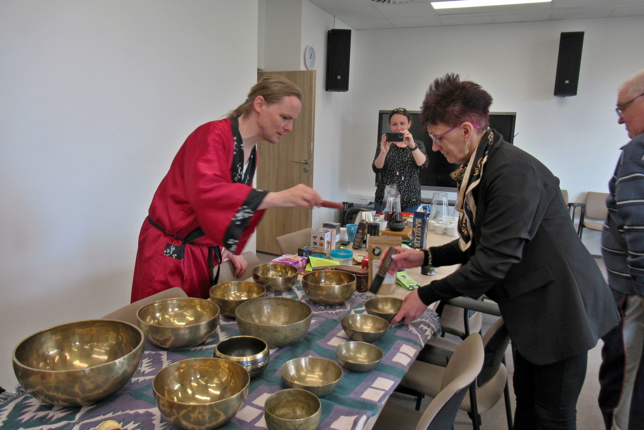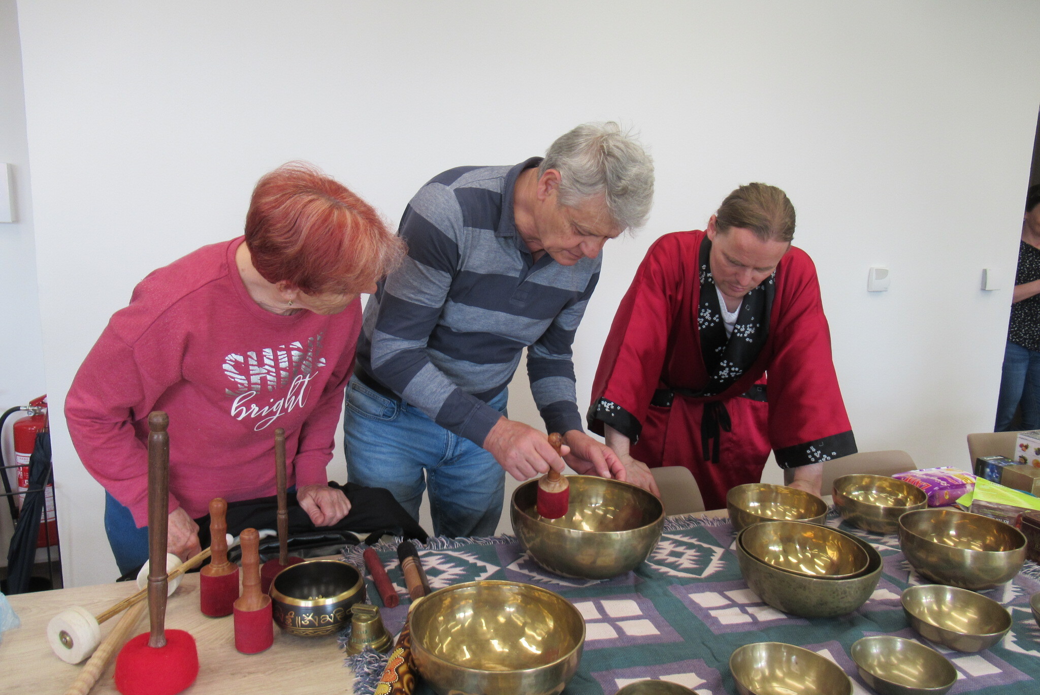 Dne 19.5.2023 se osoby se zrakovým postižením spolu se svými průvodci a veřejností sešli v Městské knihovně ve Valašském Meziříčí na ojedinělé aktivitě předvedení, vyzkoušení a hře na tibetské mísy. Akce byla ojedinělá, výjimečná a proto velmi zajímavá, neboť ji předváděl člověk, který je velmi empatický, má smysl pro duchovno a velmi dobře popsal váhu, velikost, výšku a druh kovu. Tyto mísy předvedeny Petrem Bazalou, učitelem hudby, vyluzovaly různé zvuky za pomocí 9 druhů různých paliček, které časem přecházely až do melodické hudby. Účastníci zpočátku velmi pozorně naslouchali Petrovi, který po názorném předvedení a popisu vyzval přítomné k osahání a postupně k vyzkoušení a poslechu vydávaných zvuků.