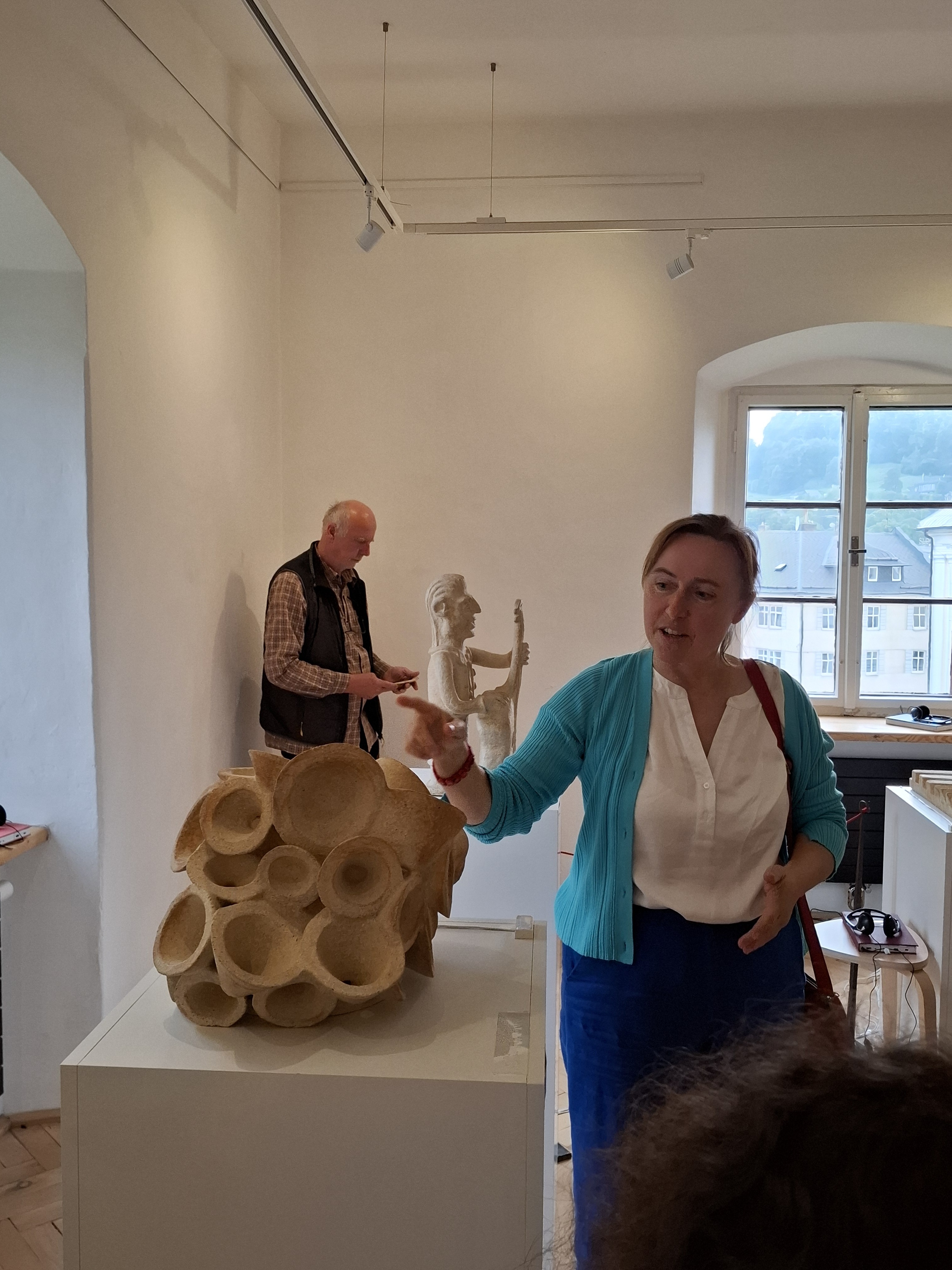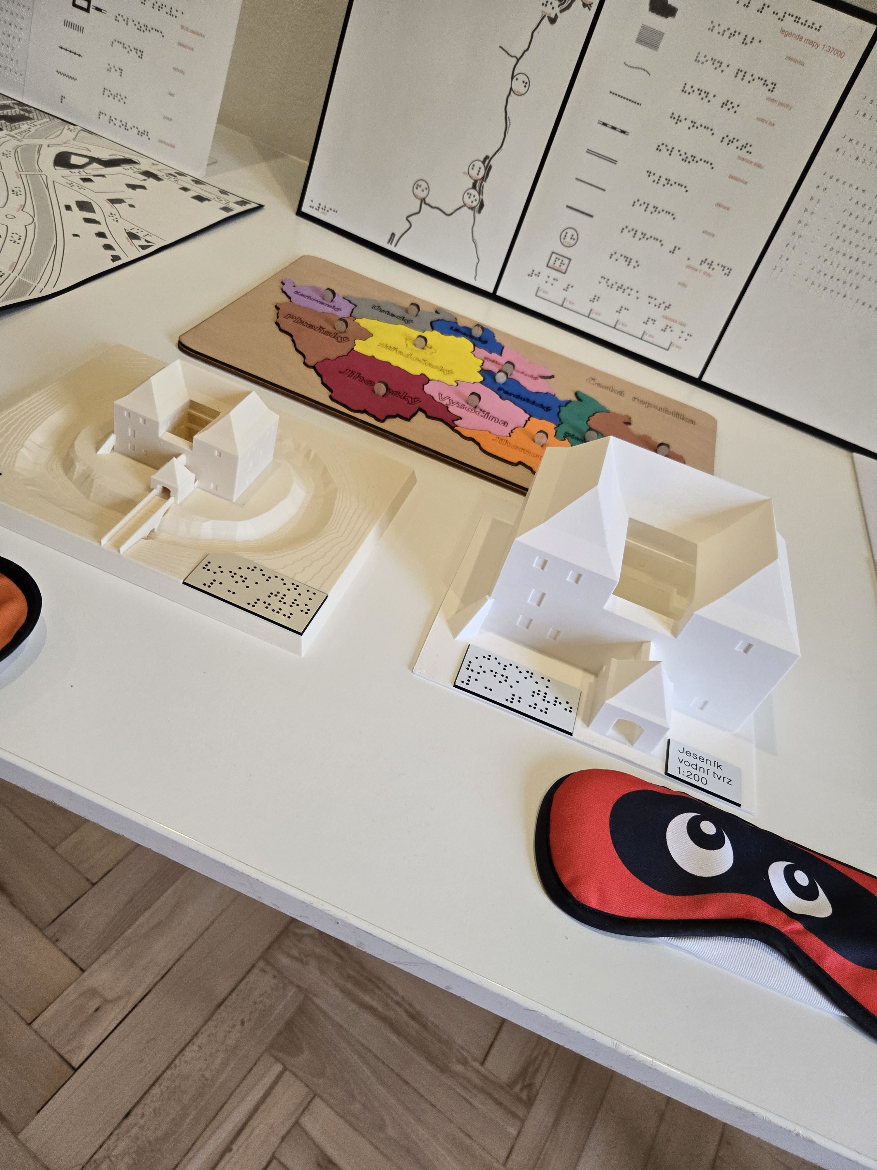 V úterý 10. června v 18 h. byla zahájena vernisáž výstavy „Tak trochu jiný svět“ ve Vlastivědném muzeu Jesenicka. Úvodního slova se ujal ředitel muzea pan Pavel Rušar, hudebními vstupy zaujala mladičká zpěvačka paní Barbora Brodníčková ze Zlatých Hor. O výstavě hmatových soch na téma hudby poutavě povídala paní Tereza Axmanová. Účastníky vernisáže seznámila s originální metodou práce s hlínou – Axmanovou technikou modelování. K některým sochám povyprávěla příběhy jejich vzniku a přiblížila životní příběhy nevidomých autorů. U každé sochy je možné si poslechnout hudbu, která byla inspirací jejímu vzniku. Nevidomí umělci vytvořili pro výstavu originální keramické kuličkové dráhy a vkládačky, které potěší zejména děti. Paní Petra Trunečková ze Sjednocené organizace nevidomých a slabozrakých (dále jen SONS) v Jeseníku pozvala návštěvníky do vedlejší místnosti plné her a aktivit, které je možné vyzkoušet bez kontroly zraku. Za zmínku určitě stojí 3D model Vodní tvrze, hmatové mapy, hmatová bludiště, knihy a časopisy pro nevidomé, simulační brýle očních vad, zvuková/hmatová a čichová pexesa, vzdělávací videa o tom, jak správně pomáhat nevidomým, či informační tabule o mnoha tématech ze světa nevidomých – např. jak sportují nevidomí, o Braillově bodovém písmu, o vodicích psech, apod. Organizace SONS připravila pro návštěvníky na nádvoří Vodní tvrze „Byt ve tmě“. Jaké to je „být ve tmě“ bylo možné si vyzkoušet do neděle 15. června. Cílem výstavy, herny i bytu ve tmě je přiblížení světa zrakově postižených veřejnosti. Výstava potrvá do 14. září 2025 a je pořádána v rámci festivalu Dny umění nevidomých. Realizátory výstavy jsou Vlastivědné muzeum Jesenicka, SONS a Aliterra, za finanční podpory Ministerstva kultury ČR, Olomouckého kraje a města Jeseník.