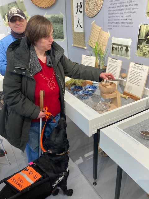 Výstava pro všechny smysly byla opravdu zajímavá a každý si tu přišel na své. Někoho nejvíc zaujaly výrobky z bambusu a jiný se pokoušel rozeznít netradiční hudební nástroje. milovníci příběhů o Soudci Ti už vědí, jak vypadal třecí kámen , na kterém si písař musel nejdřív připravit tuž, hmatem se dal prohlédnout i čínský znak pro strom. Ohmatat se daly i napodobeniny tropického ovoce, zvětšený model bource morušového, očichat jsme mohli různé druhy koření a ochutnat kousek plodu chlebovníku nebo moruši.