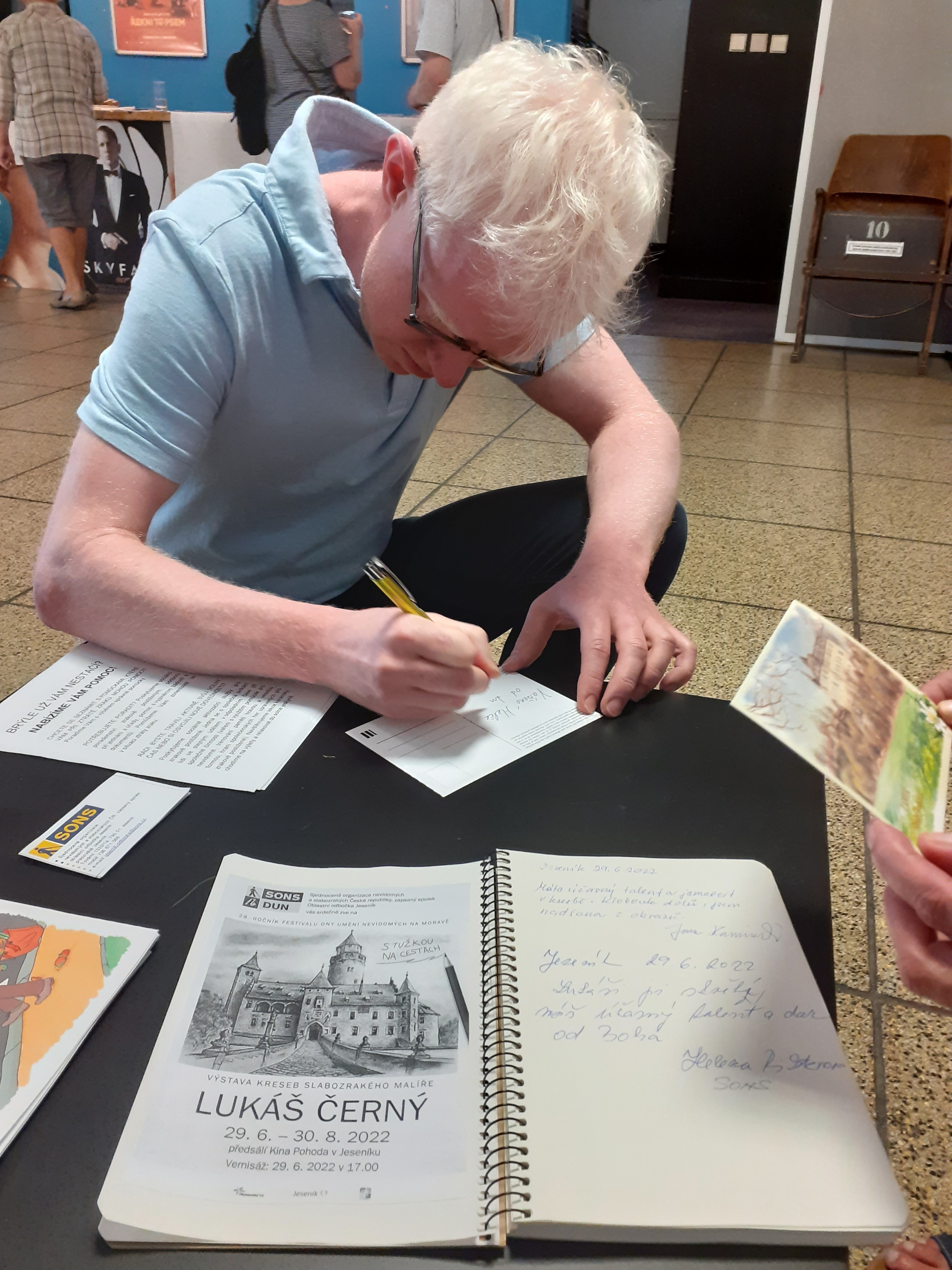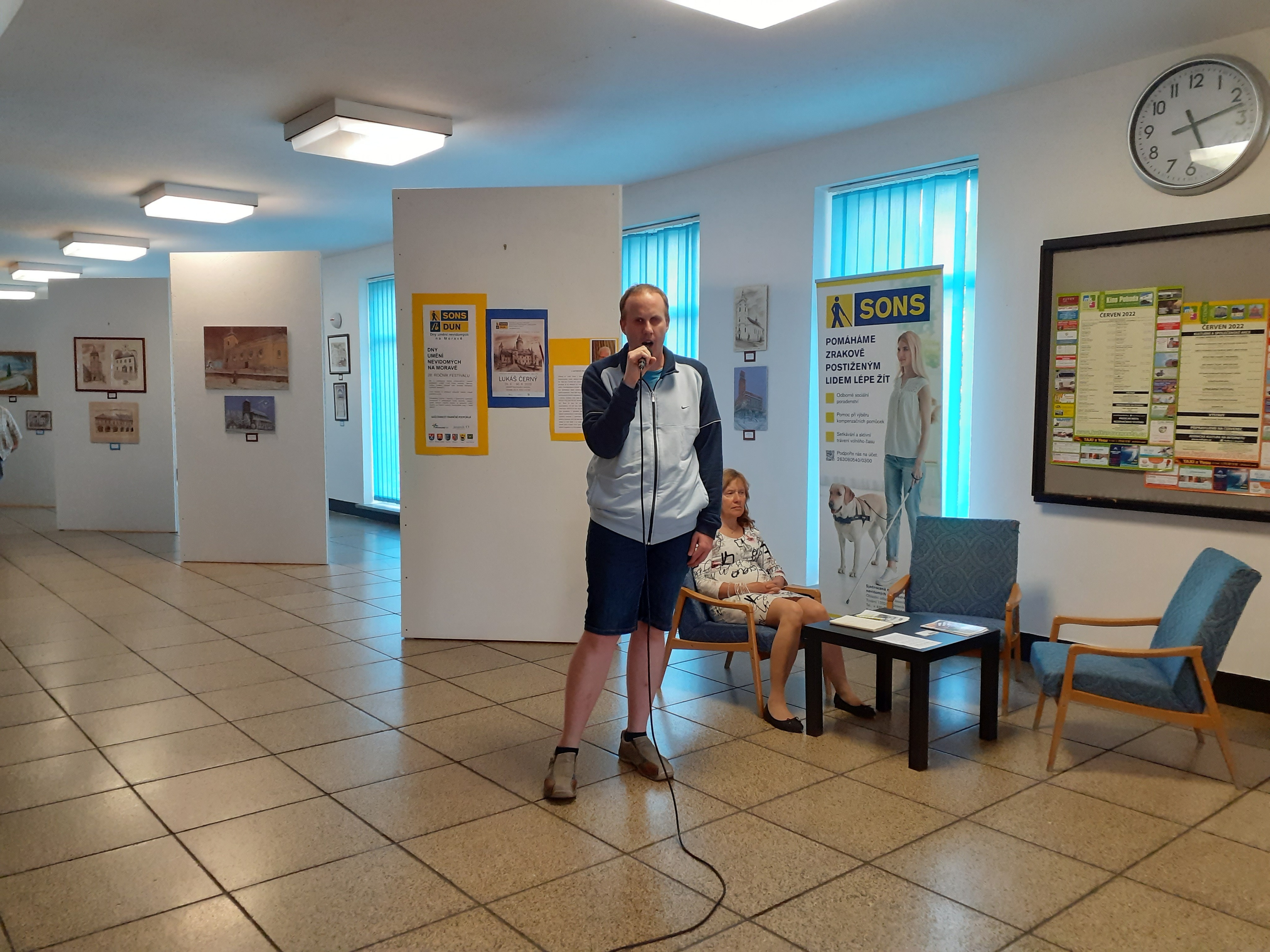 Ve středu 29. června byla slavnostně zahájena výstava s názvem „S tužkou na cestách“ za osobní účasti slabozrakého malíře Lukáše Černého z Jičína. Hudebně vernisáž obohatil náš člen, pan Zdeněk Janeček se svou učitelkou zpěvu, paní Annou Beťákovou. Výstava je pořádána v rámci 28. ročníku festivalu Dny umění nevidomých na Moravě, jehož cílem je představit veřejnosti nadané zrakově postižené umělce. Výstavu pořádá Sjednocená organizace nevidomých a slabozrakých, oblastní odbočka Jeseník, ve spolupráci s Kinem Pohoda Jeseník, s finanční spoluúčastí města Jeseník a Olomouckého kraje. Výstavu je možné navštívit do 30. srpna v předsálí Kina Pohoda v Jeseníku vždy hodinu před plánovaným filmovým představením nebo po osobní domluvě s paní Adlovou na telefonu 702 296 960.