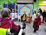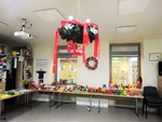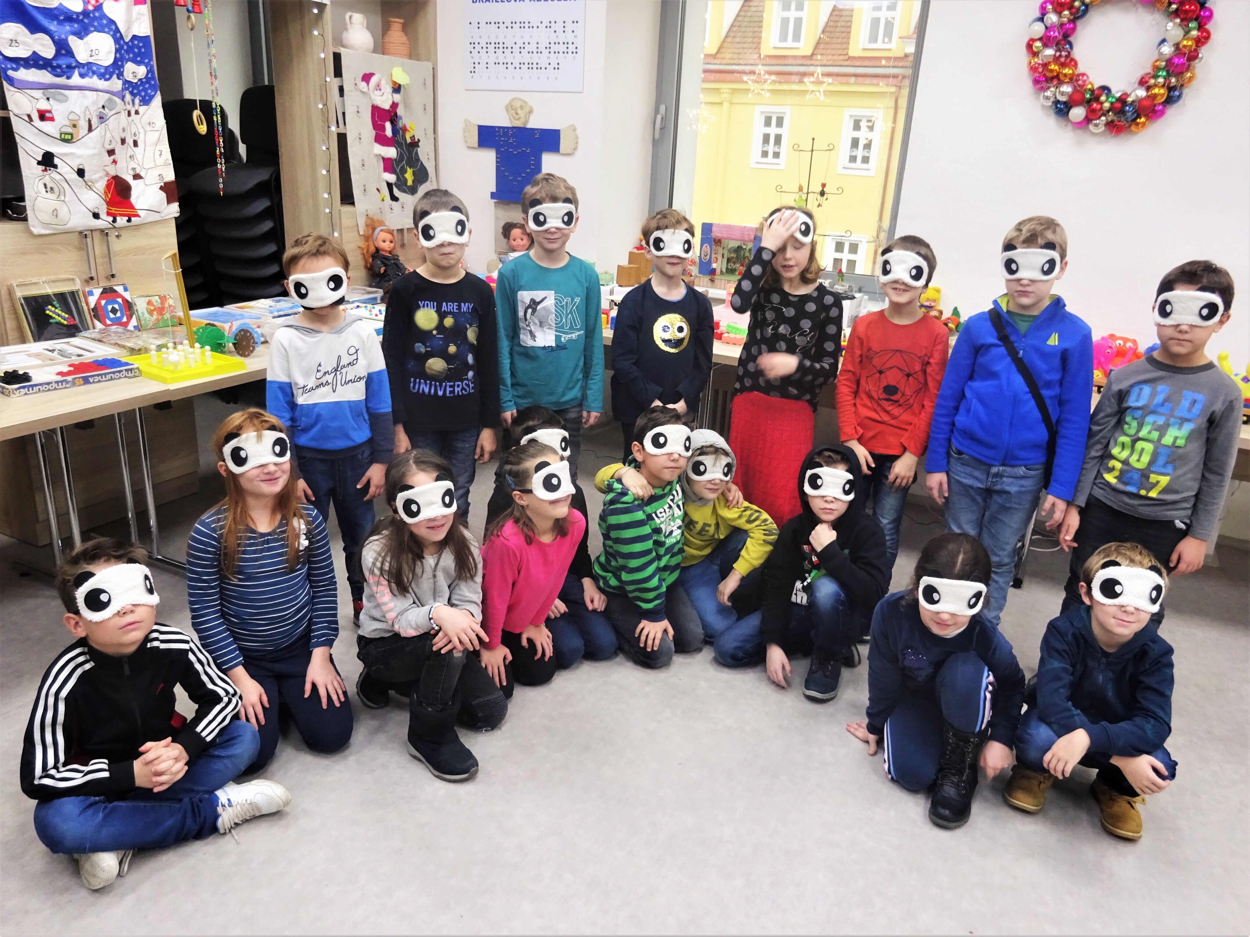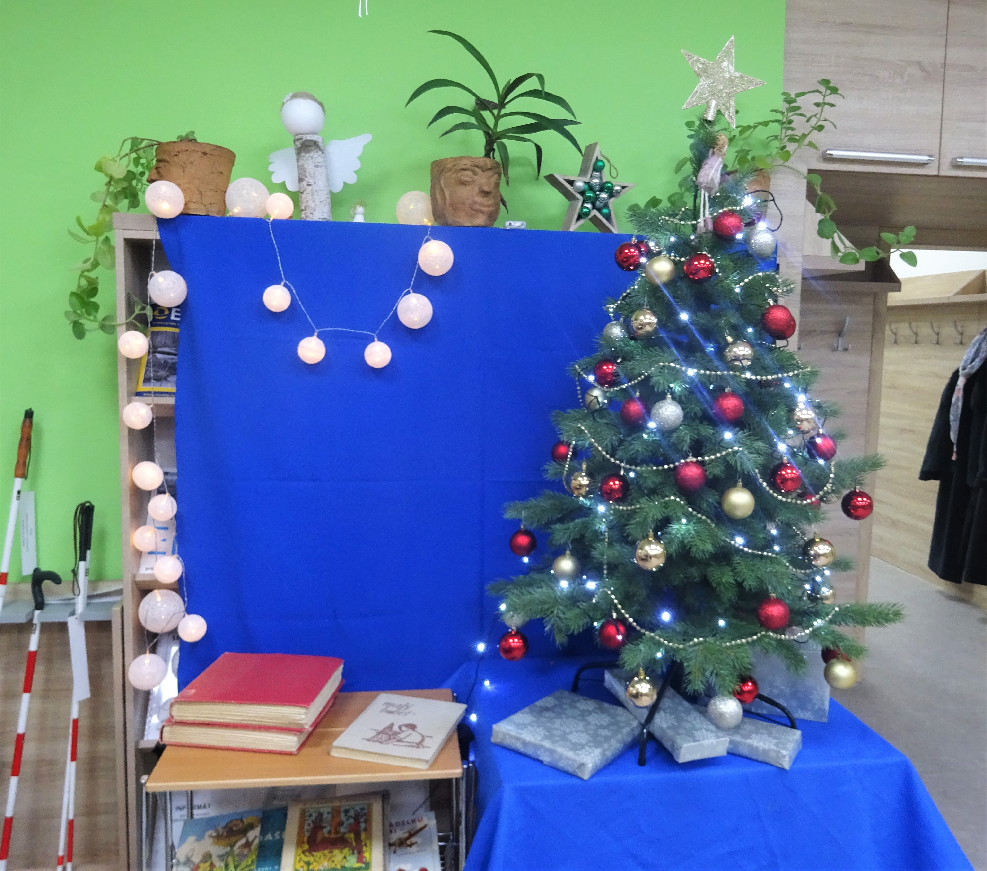 Dopilovali jsme i samotnou vernisáž - na zahájení vystoupily děti z Mateřské školky s krásným adventním pásmem, nevidomá členka představila novou deskovou hru Labyront a další přečetla v Braillově písmu úryvek z knihy Malý Bobeš, která byla vystavena na porovnání i v běžném tisku.