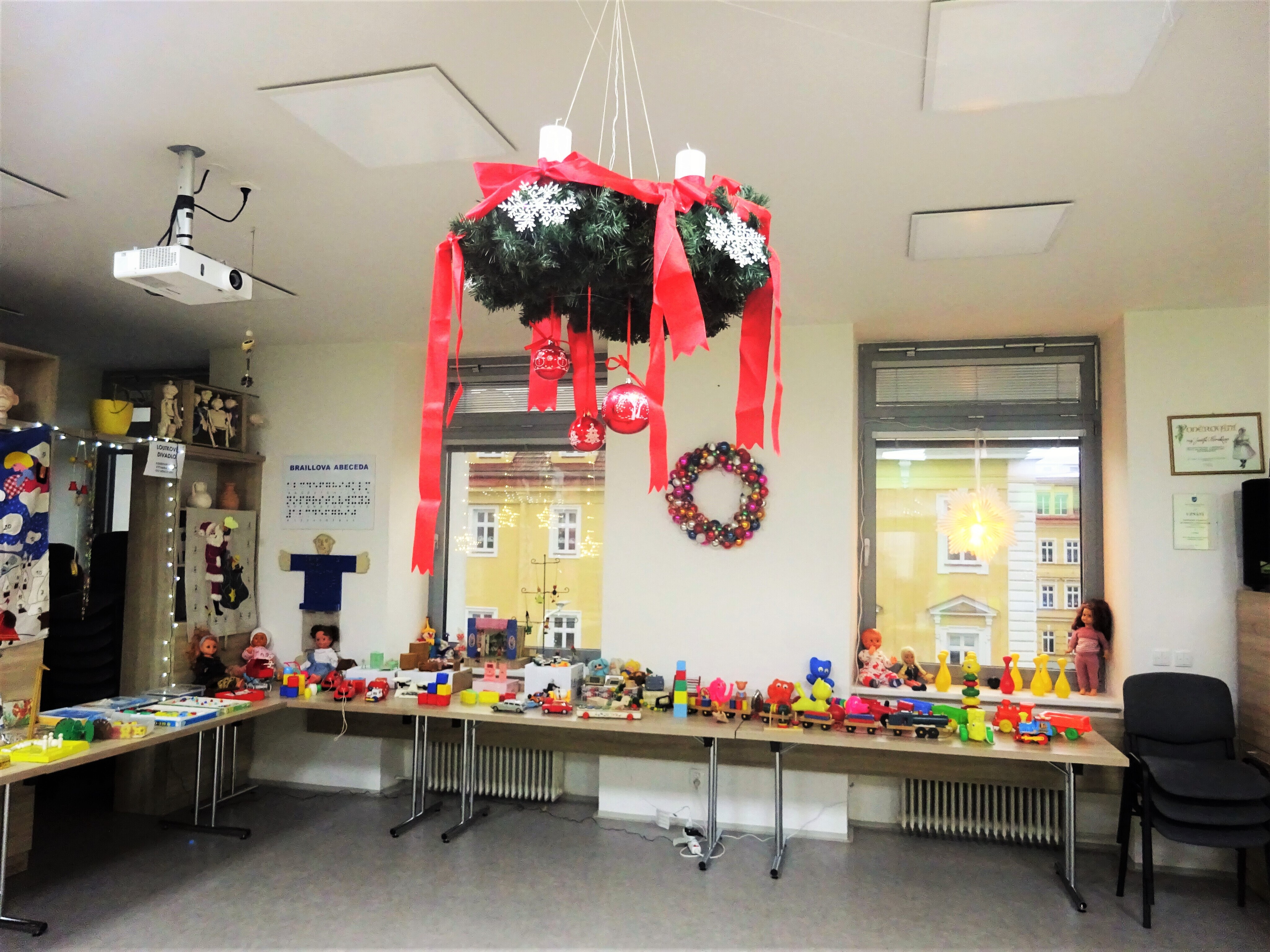 S nápadem přišla jedna naše členka, která miluje vše, co dýchá minulým časem a jejím snem bylo uspořádat výstavu ze vzpomínek na své dětství. My tuto její myšlenku zrealizovaly a během přípravy naskakovaly nové nápady. Ve finále nylo více jak 180 ks retro hraček doplněno dětskými knihami , ručně šitými adventními kalendáři a výstava byla pojata v rámci Týdne otevřených dveří i formou osvěty. Vystavovali jsme totiž také deskové hry pro nevidomé a pozvali jsme širokou veřejnost a hlavně děti prvního stupně okolních základních škol a děti Mateřských školek.
