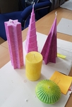 Můžete vyrábět z různých druhů vosků. Klasický parafin, nebo krystalický palmový vosk jsou známé a námi samouky používané asi nejvíc. Můžete použít vosk včelí. A dneska už i vosky sójové a jiné. Každý má své specifické vlastnosti, pro které jsou pak výrobky z nich originální. Svíčky můžete lít do forem a jen je vyklopit, případně je potom dozdobit, nebo domalovat, nebo v případě právě různých druhů vosků i speciálně seřezávat a vyrábět precizní moc hezká, skoro až sochařská díla. No, teď se nad tím trochu rozplývám. Na řezání vosku potřebujete speciální nástroje, trpělivost a nejspíš i nějaký počáteční kurs.