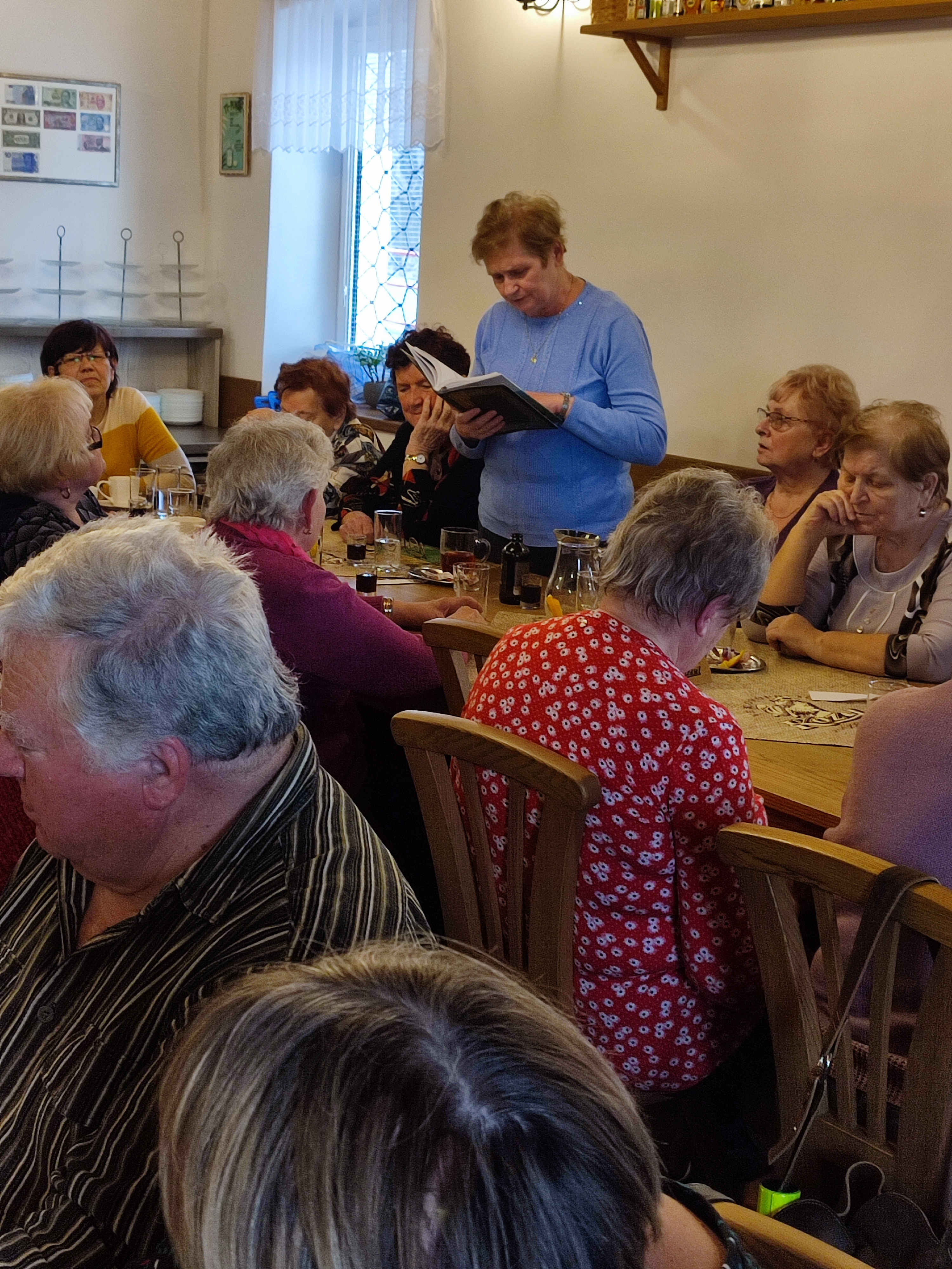 Lidé už s radostí přivítali rozvolnění všech opatření ke koronaviru. Po úvodu, který obstarala naše vedoucí, k nám přišla na pozvání paní Eva Szczerbová, . Pro nás je známa jako Jewka Trzynczanka, která psala fejetony a povídky do Třineckého hutníku. Nyní vychází knižně výběr jejich fejetonů a povídek v nářečí z oblasti kolem řeky Olše, t.zn. po našimu.. Dozvěděli jsme se, že všechny příběhy buď sama zažila, nebo se to dověděla z druhé ruky. Fikce se v jejich příbězích téměř nevyskytuje, všechny by se daly označit za literaturu faktu.