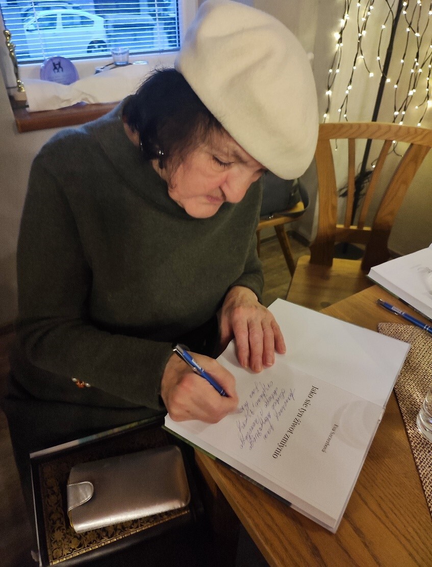 Dotazů bylo hodně i společné vzpomínání, které trvalo asi 2 hodiny. Některé naše členky samy vyprávěly seznámení s tímto nářečím a různými významy např. obchod-sklep, sklep- pivnice a další. Pro občana, který se zde přistěhoval bylo velmi divné, když se zeptal kde děláš - no přece ve verku a nebo kde bydlíš - no na Sosně. Jeden článek nám přečetla paní Vránová a bylo to velmi úsměvné. Pak následovalo podepisování knížky od autorky. Kniha šla rychle na odbyt, a tak se nyní připravuje její dotisk. Za vše, co bylo řečeno sklidila paní Ewka zasloužený dlouhotrvající potlesk.